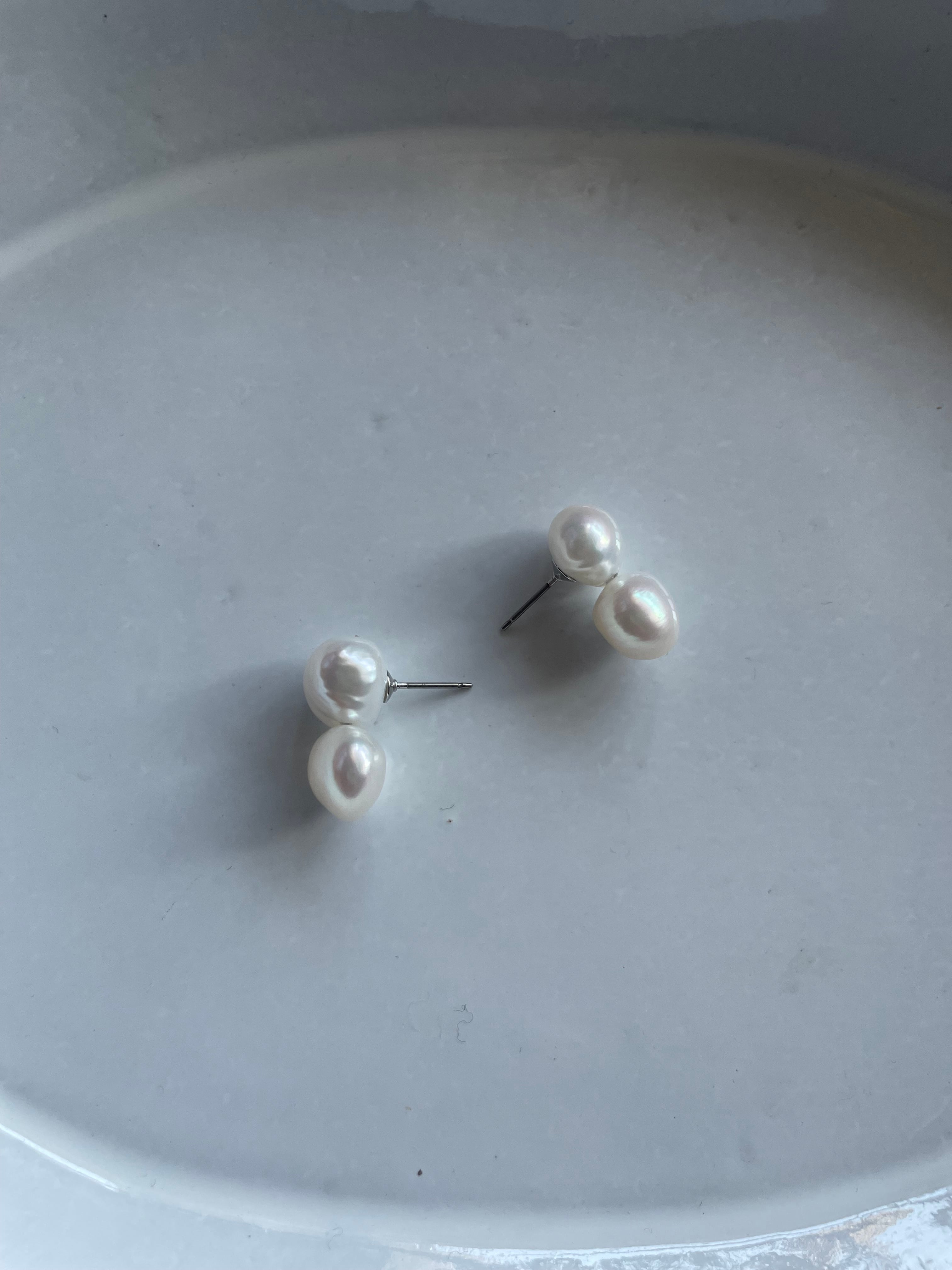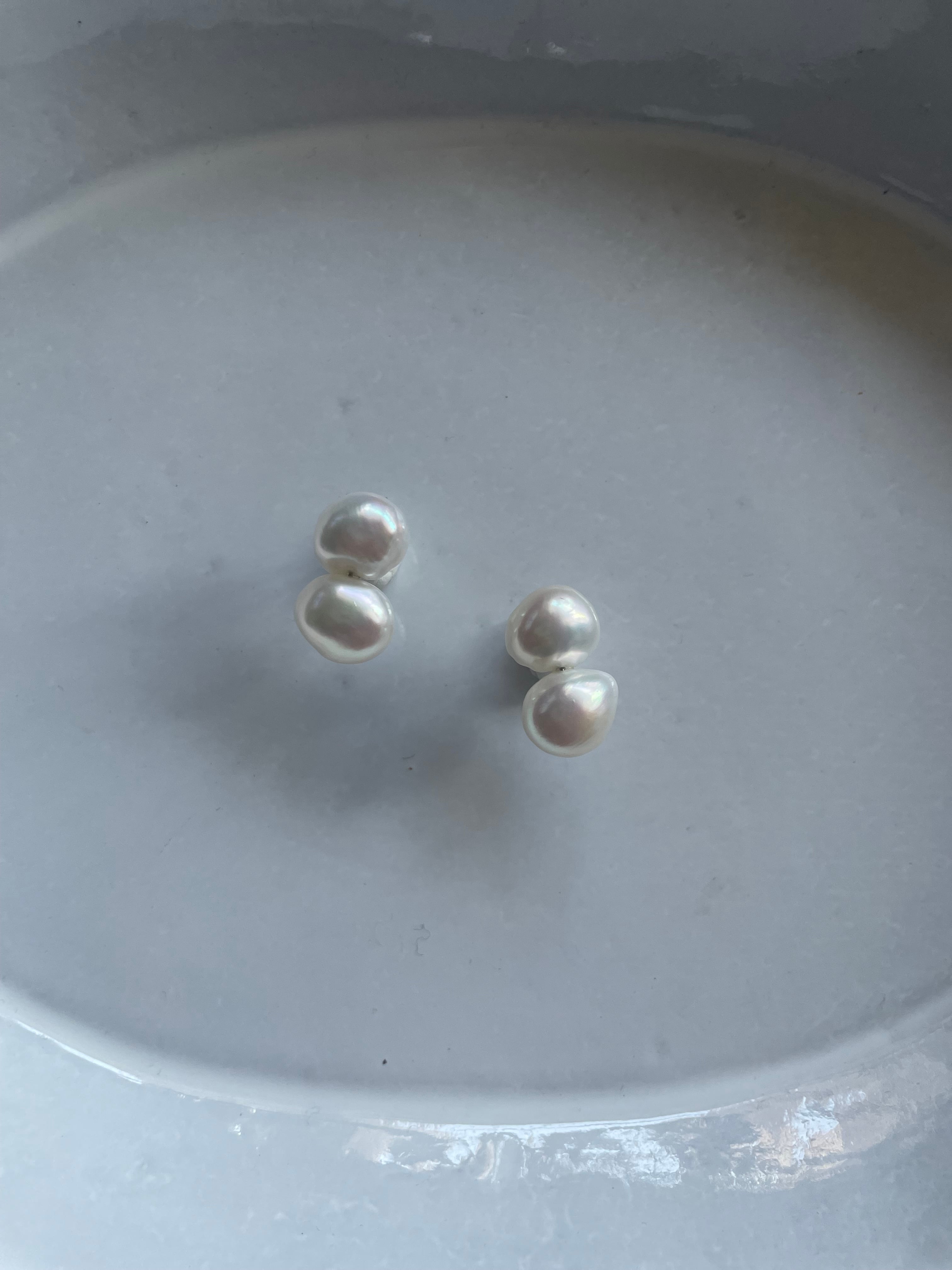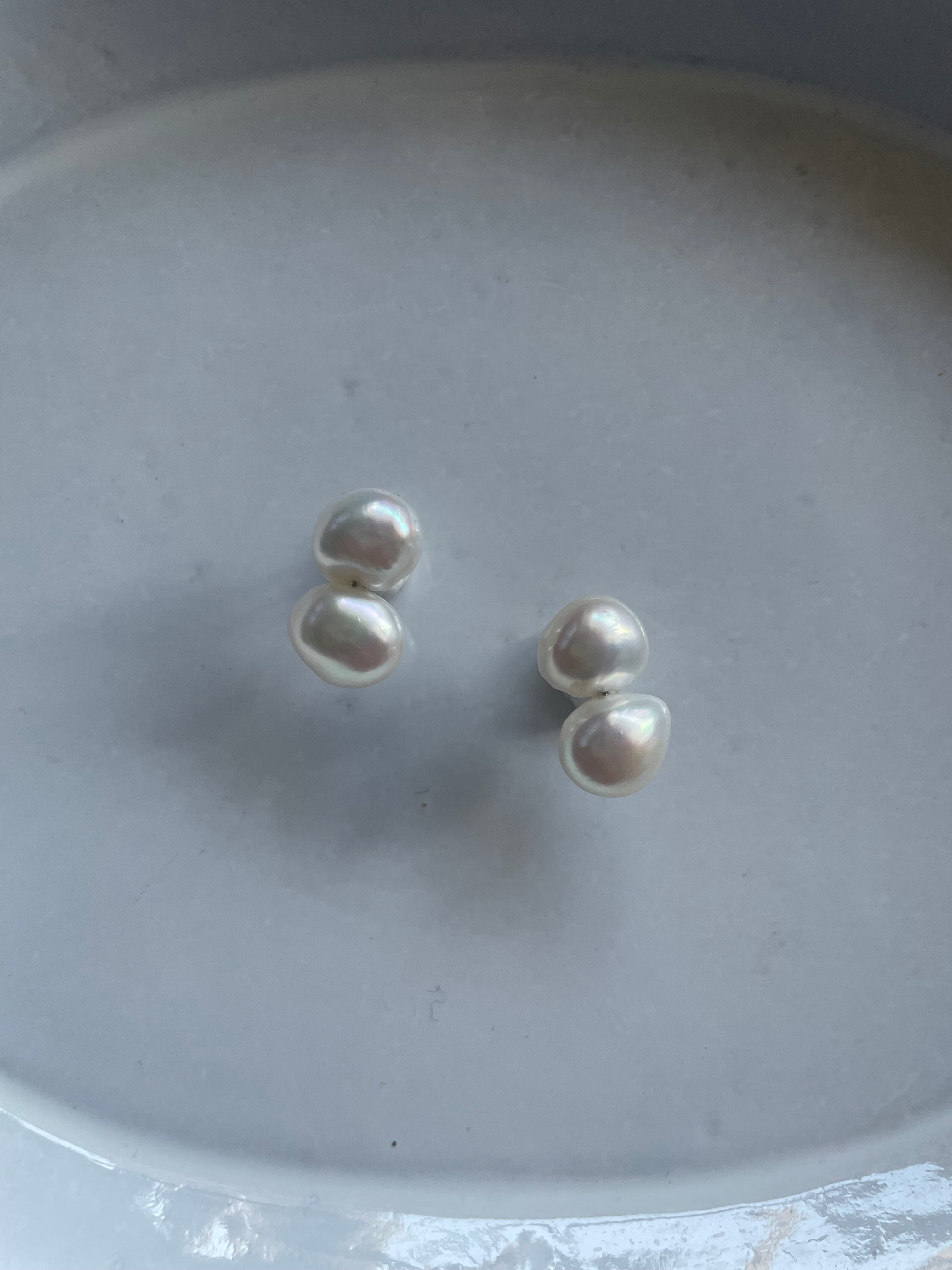ユニークな形の艶とテリの良いパールを二つ並べた