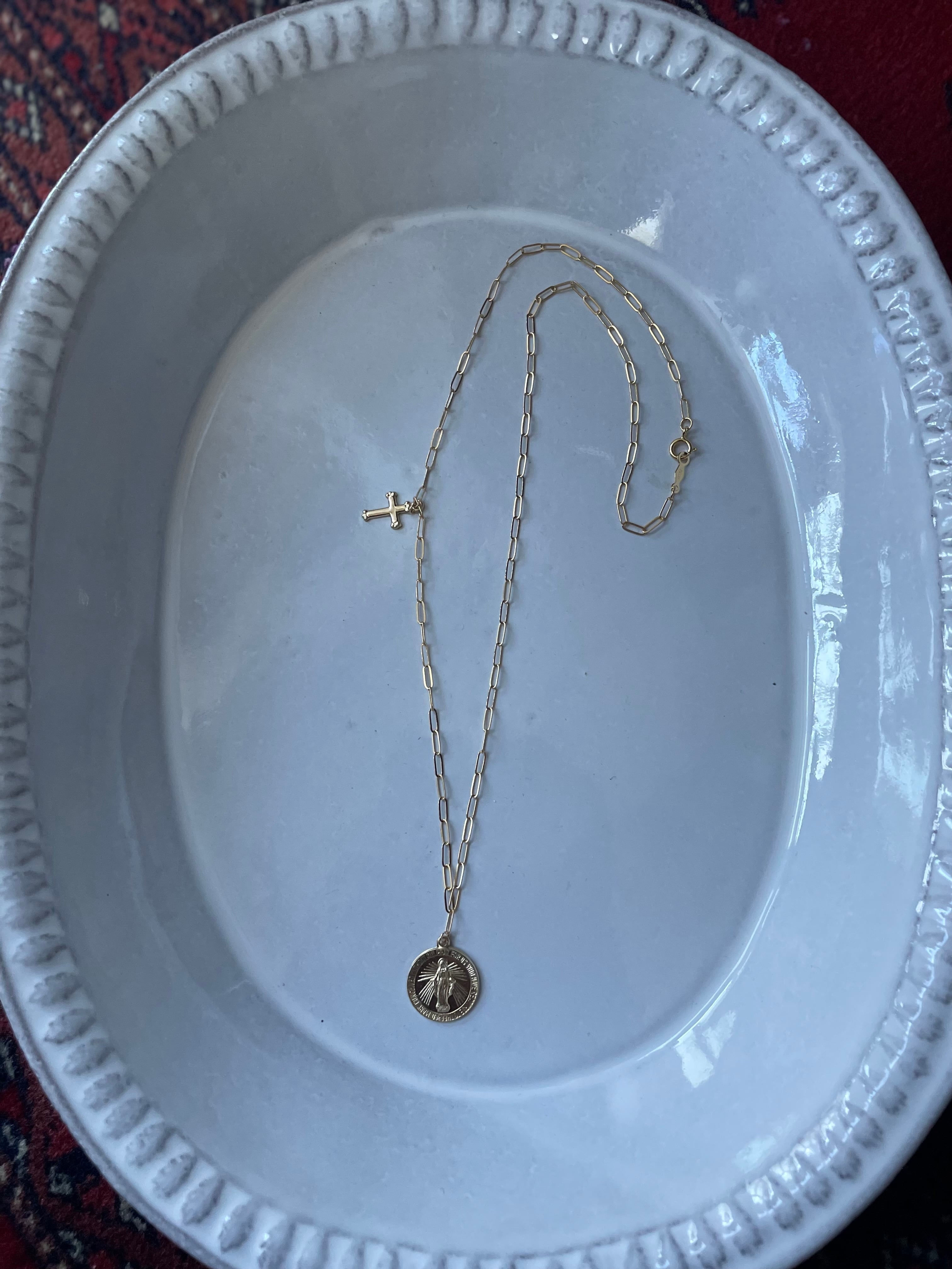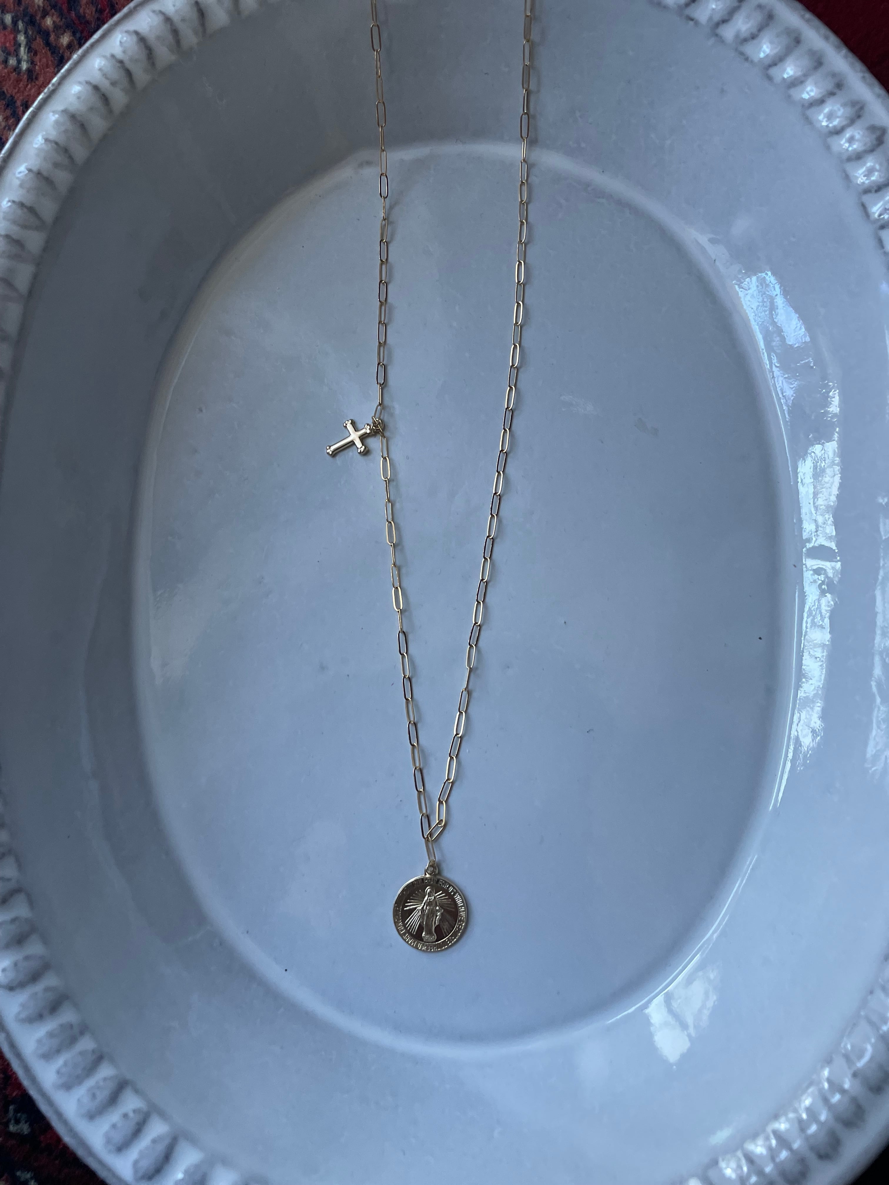 K14GFのシンプルな chain necklaceに同じくK14GFのコインをおつけしたネックレスです。