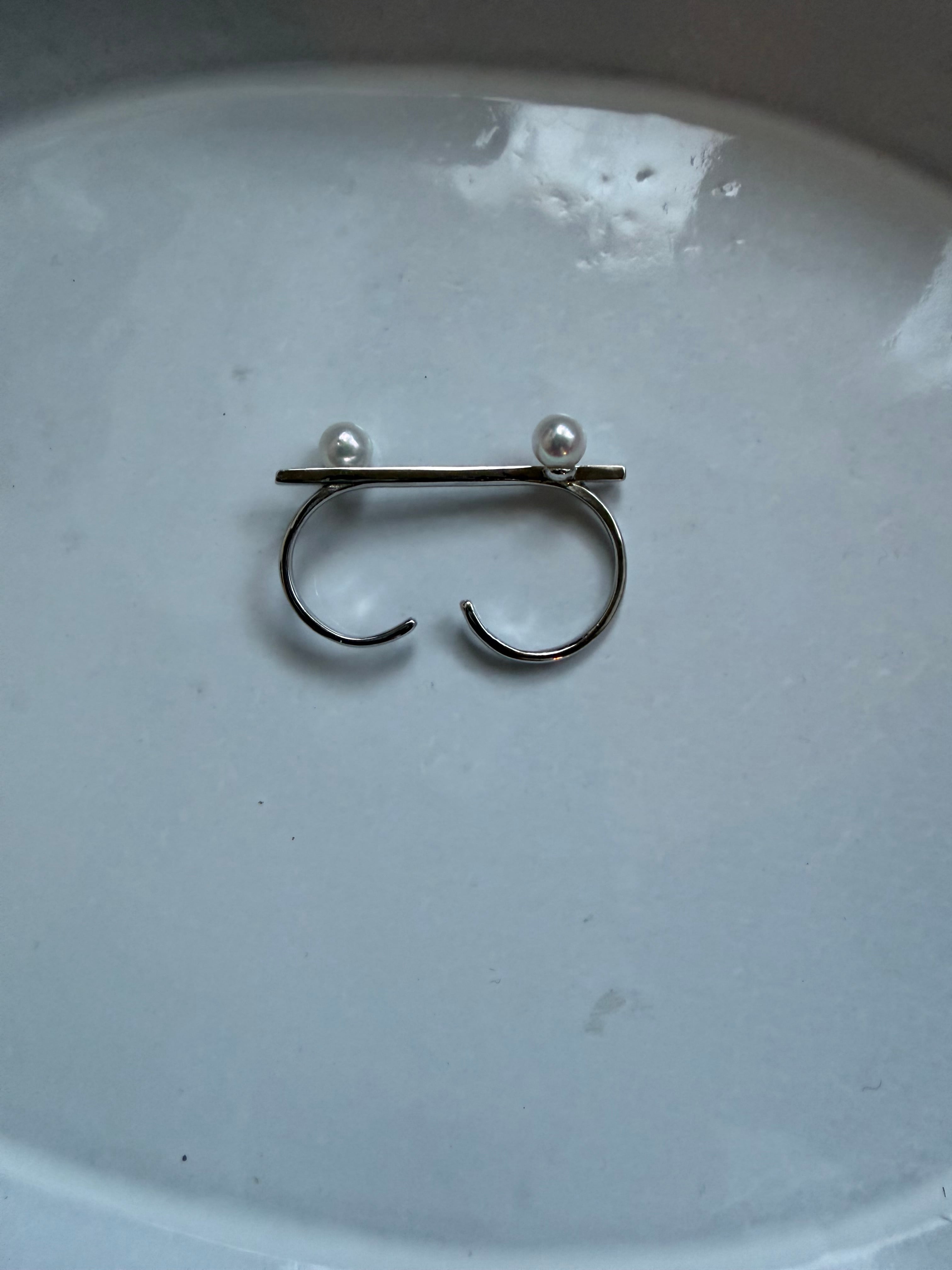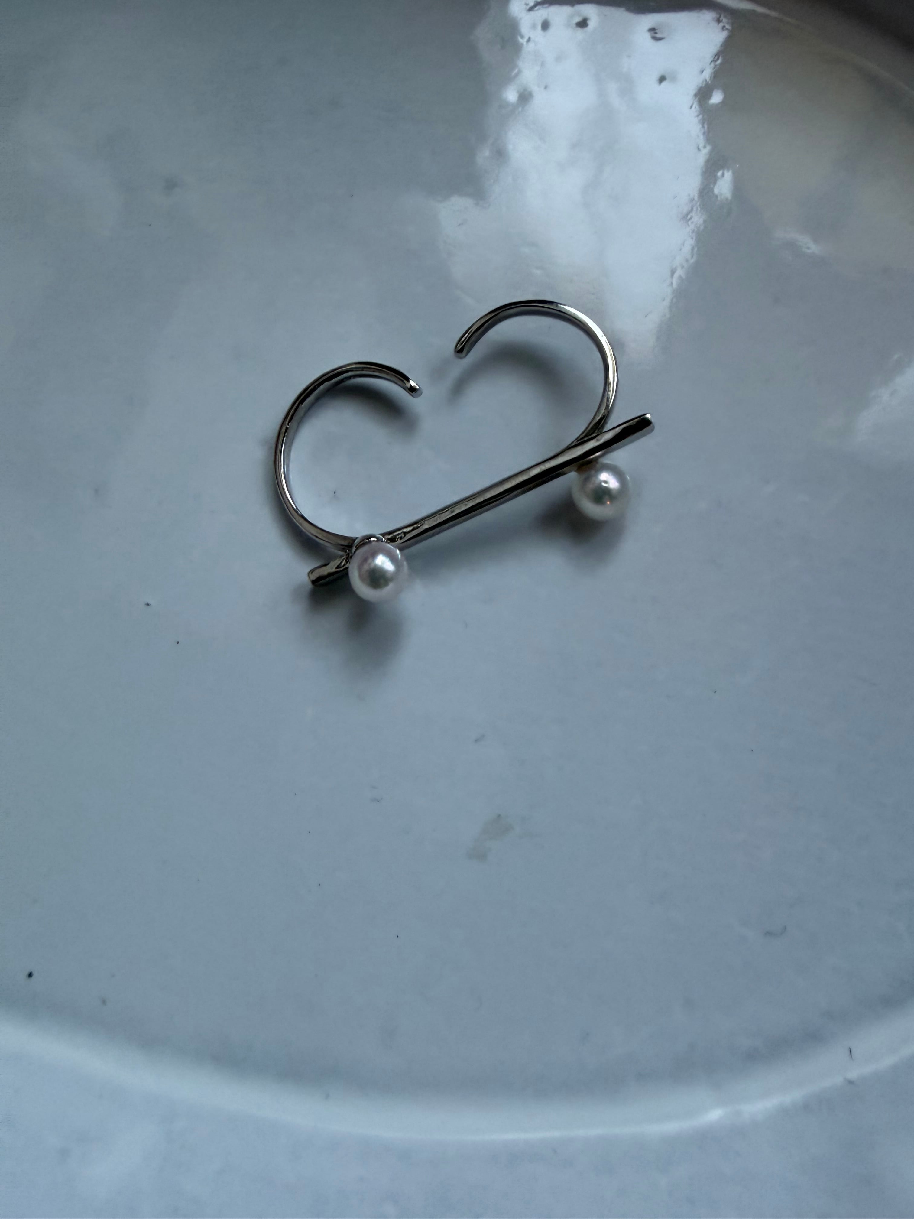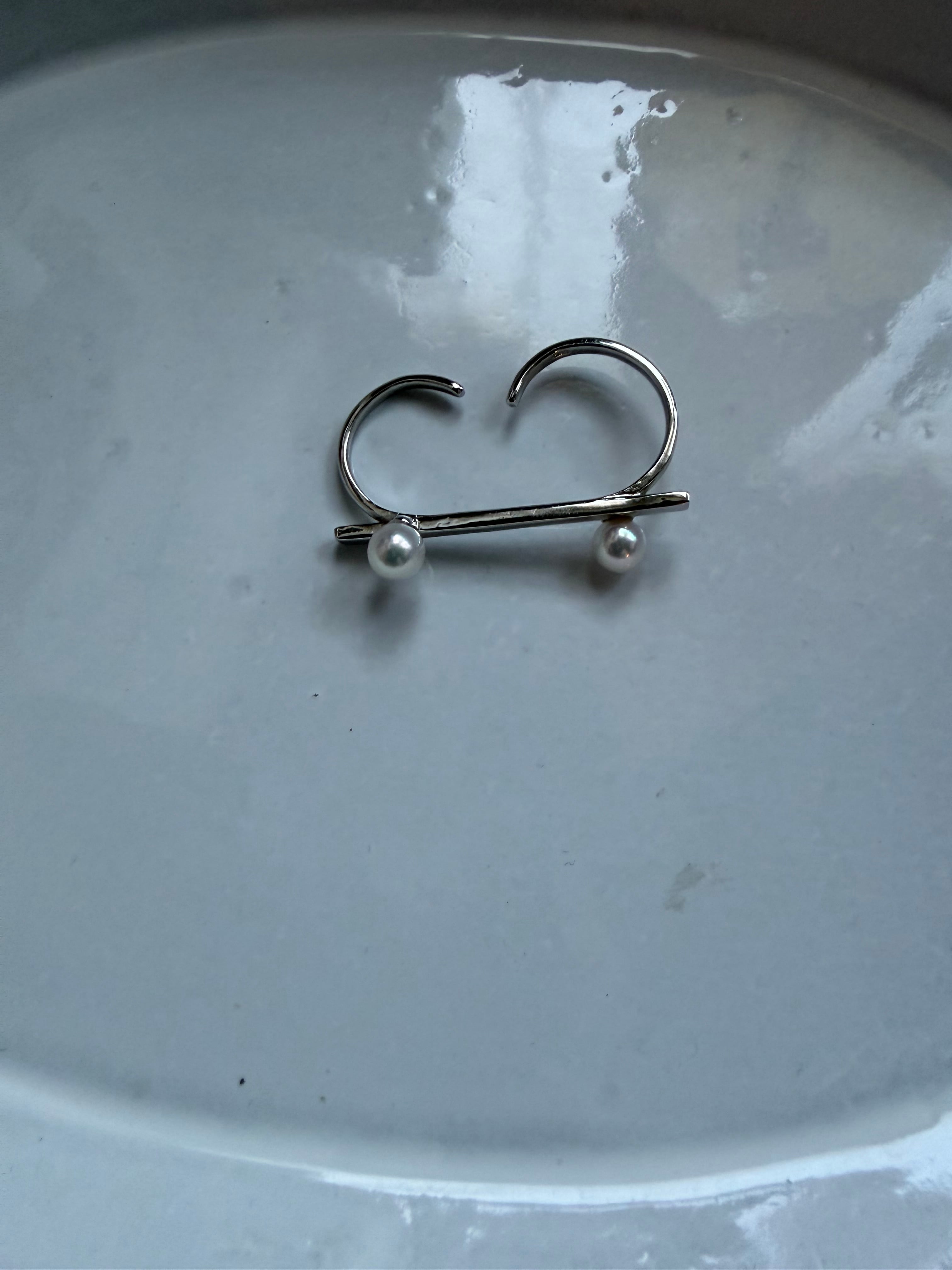 モードなシルエットに、美しいアコヤパールを贅沢に2粒あしらった、印象的なジュエリーです。