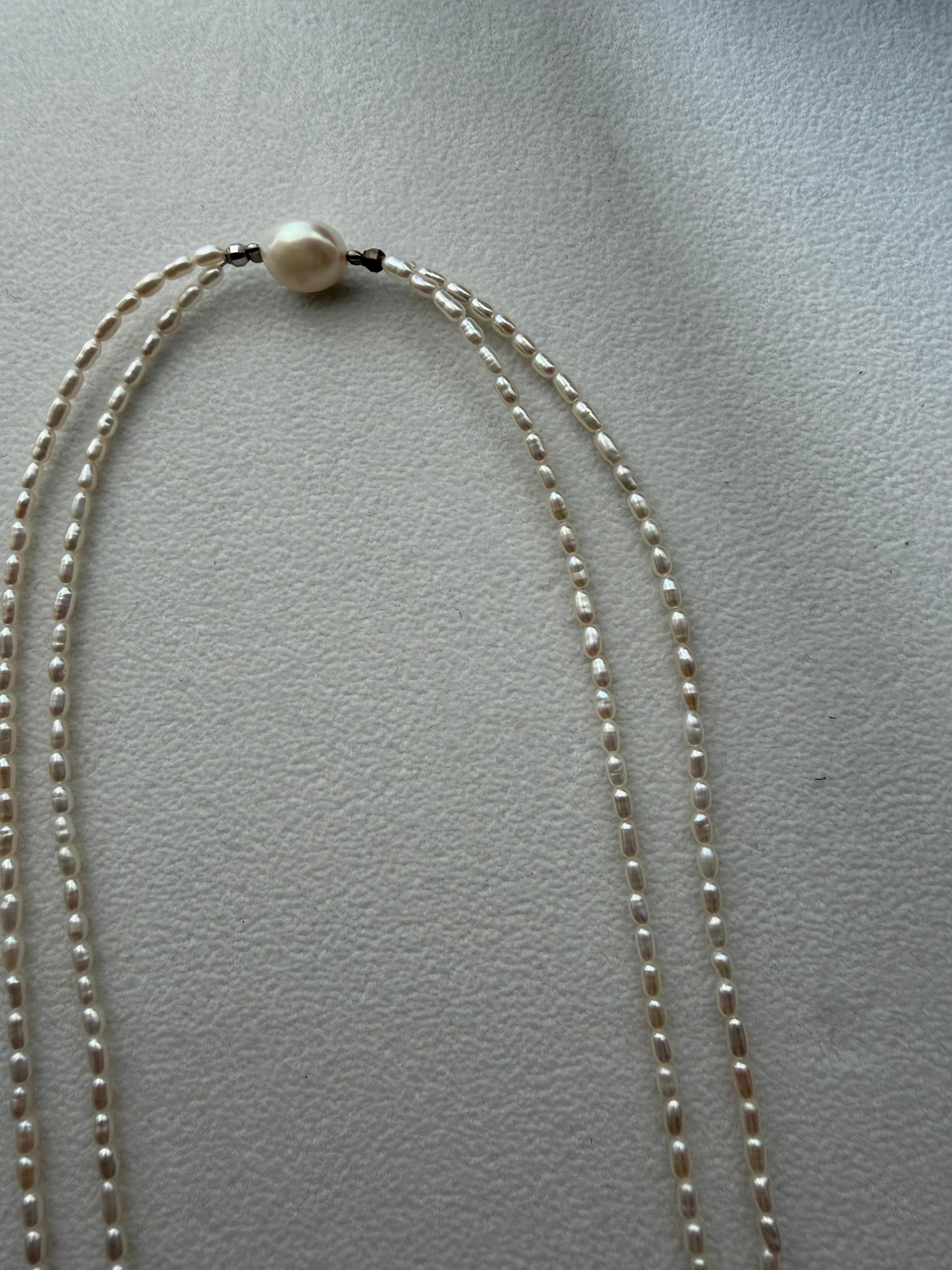 • Layered: お手持ちのゴールドネックレスや、silverネックレスなど短めのパールネックレスとの重ね着けも今っぽく決まります。