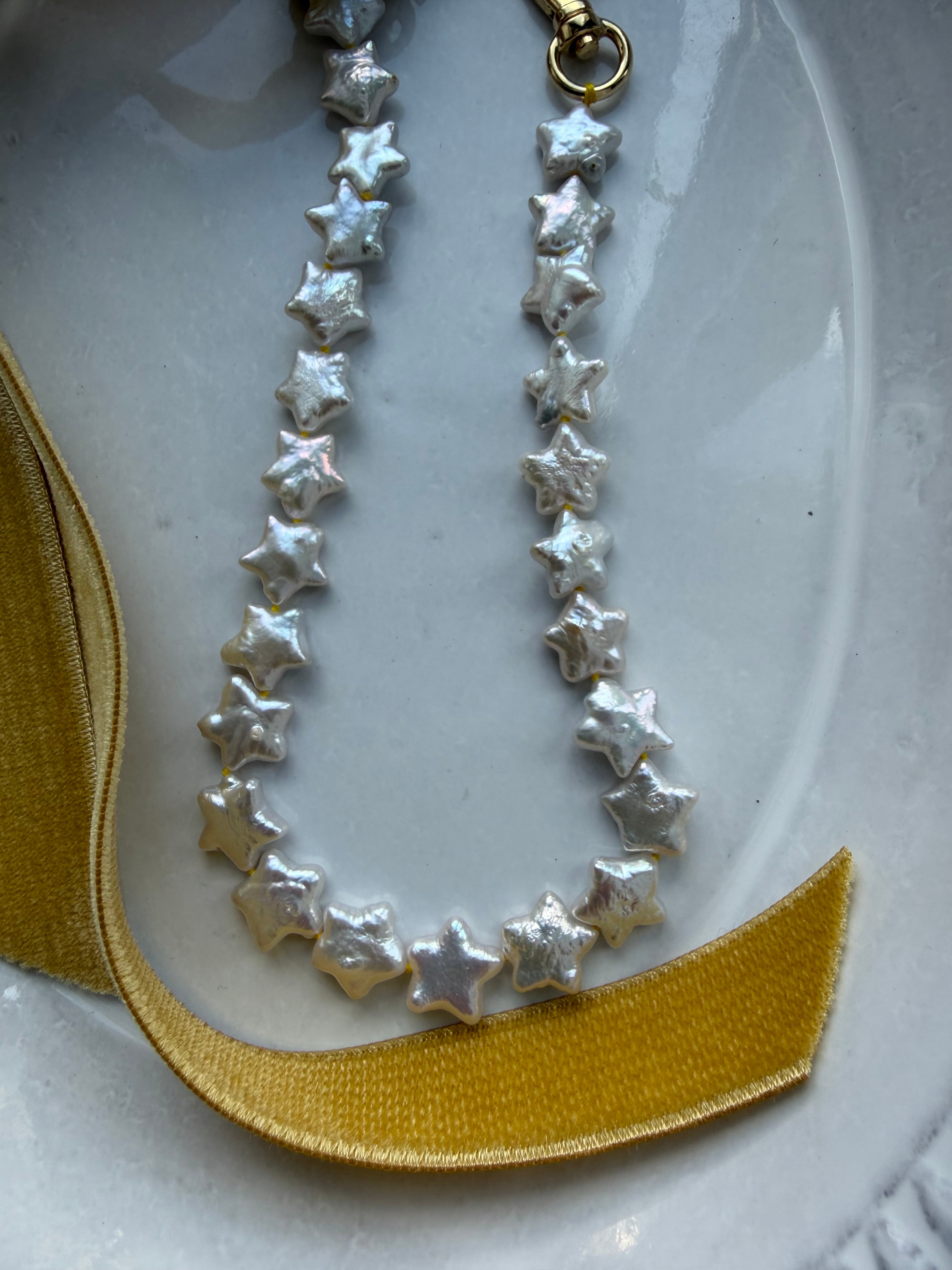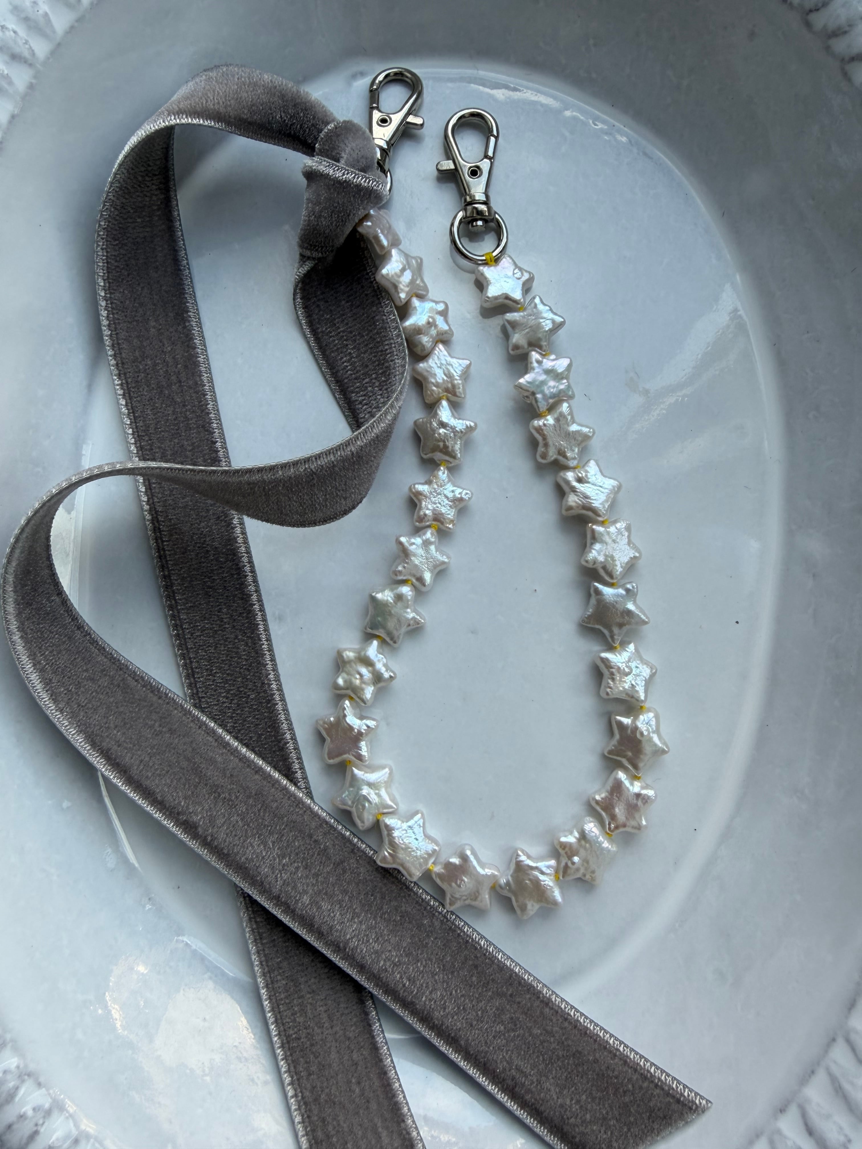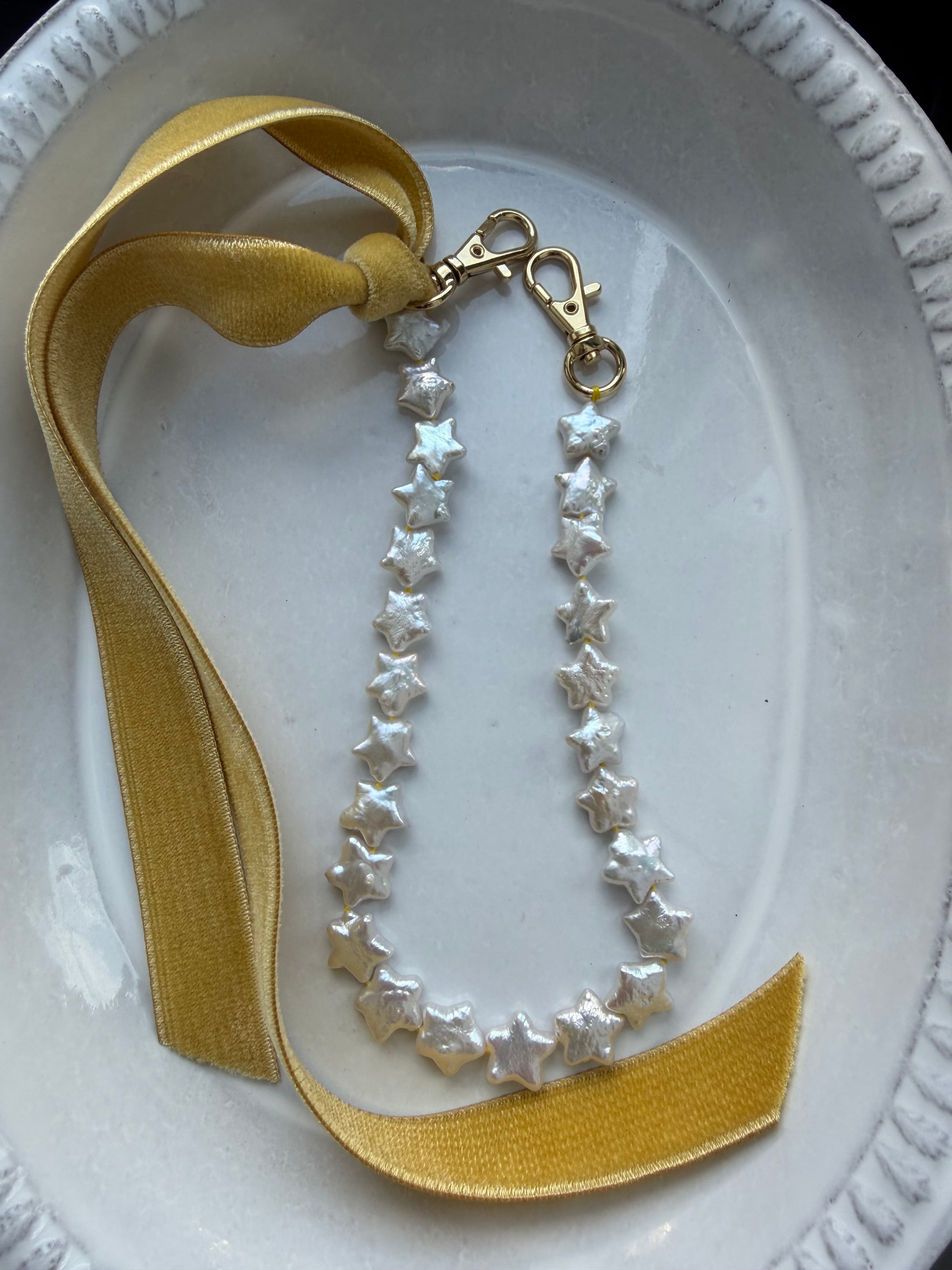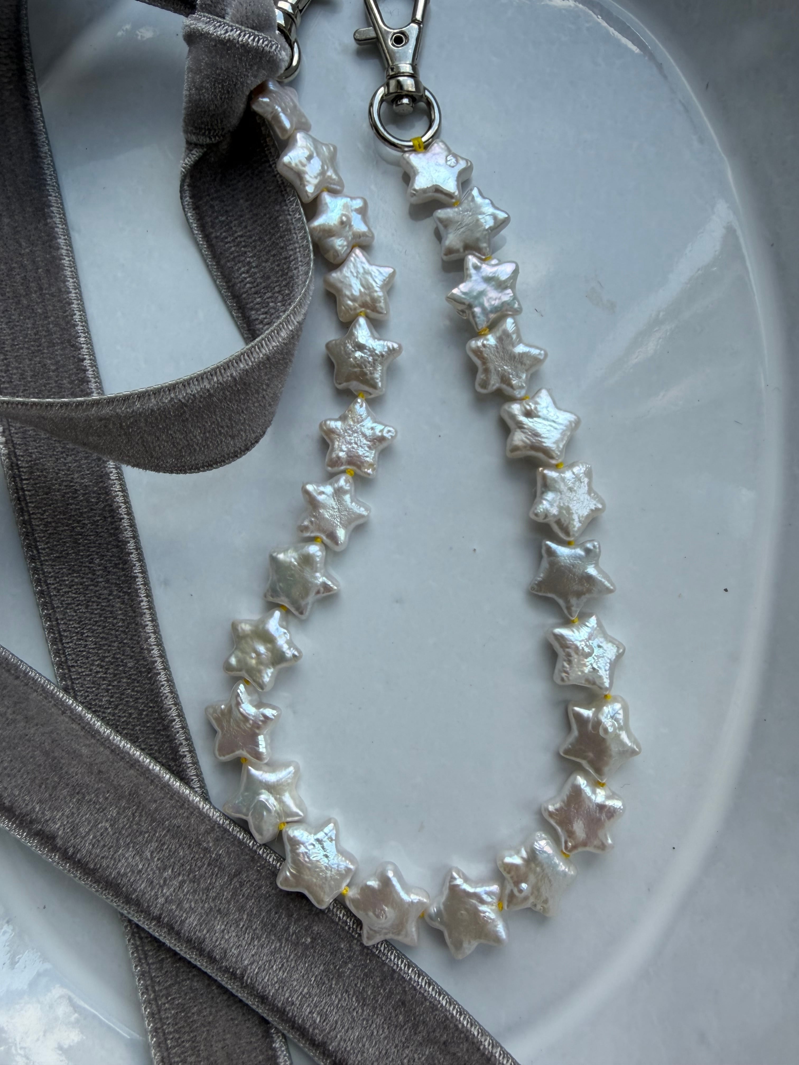 愛らしい「星の形」をした淡水パールを贅沢に使用した、クラス感溢れるスマホストラップです。