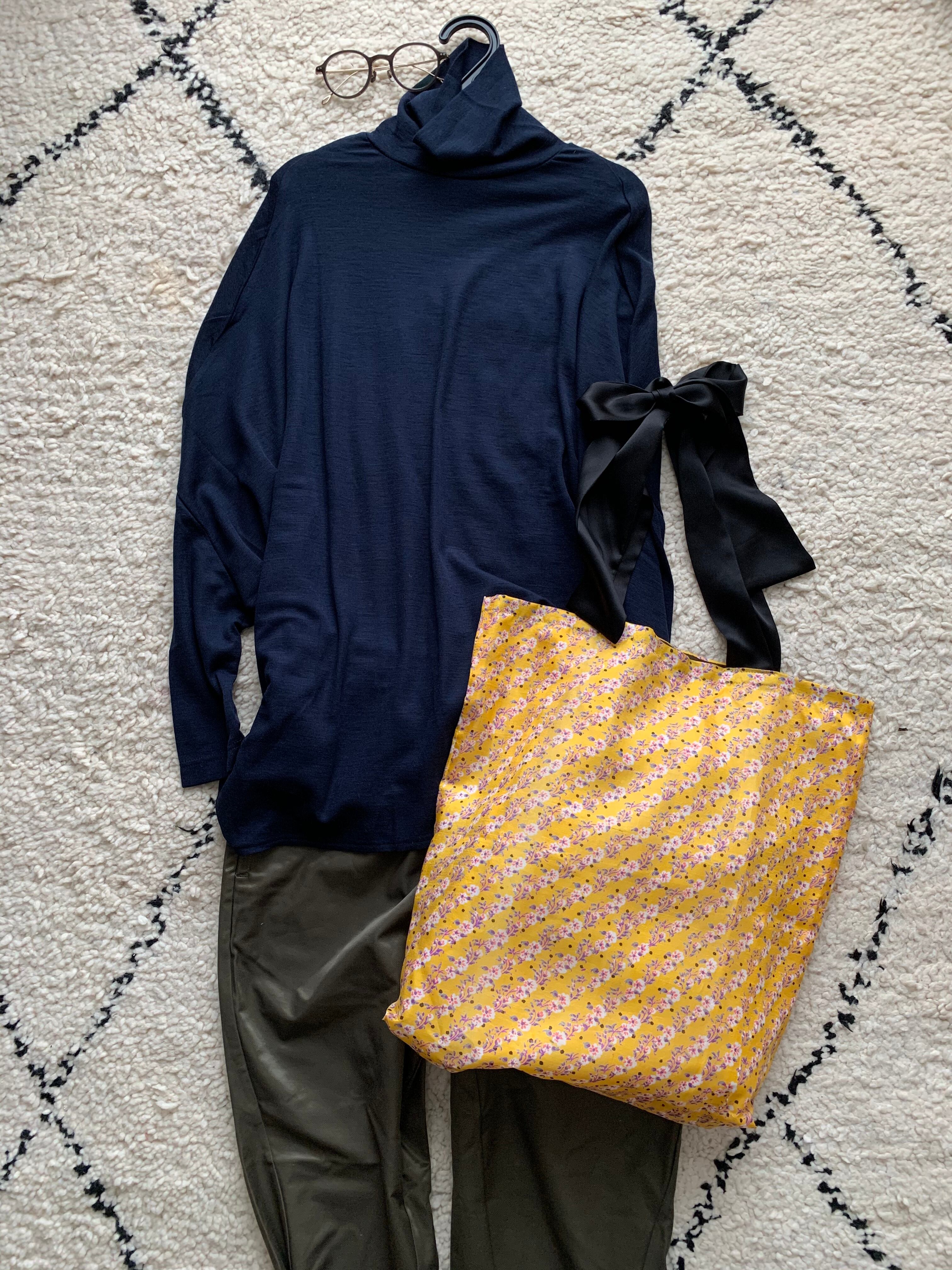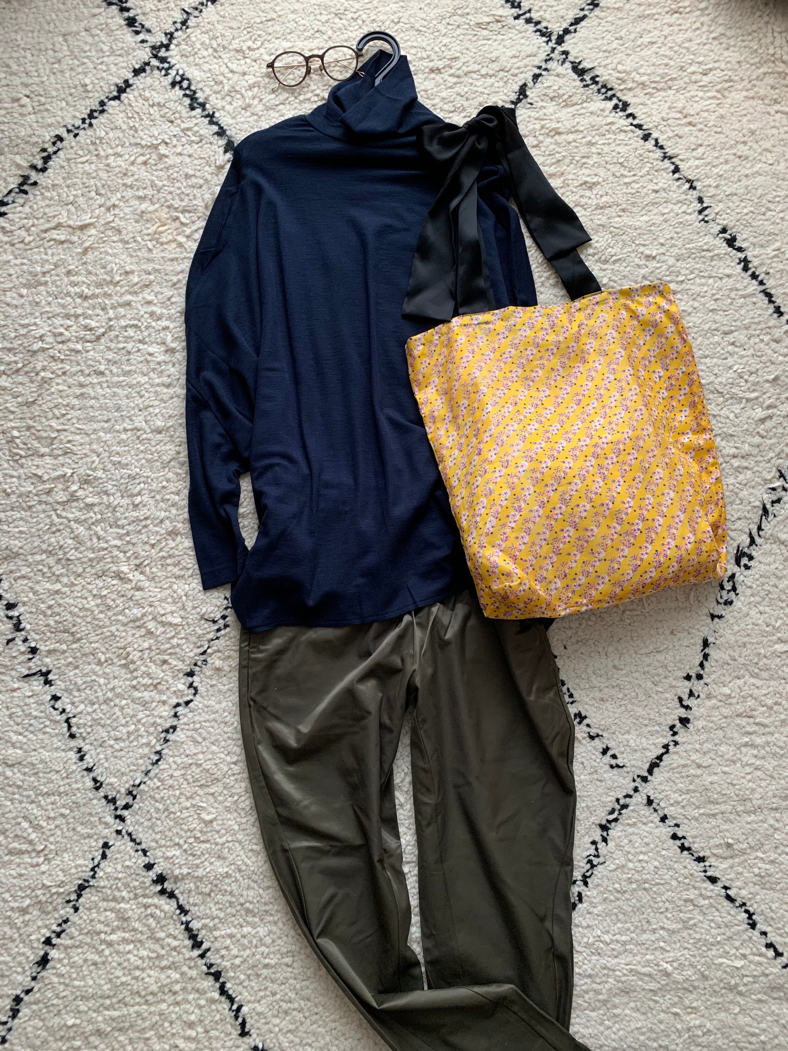 カジュアルだけど素材が良く、イエローをさし色に大人っぽくシンプルなスタイリングのアクセントになります。