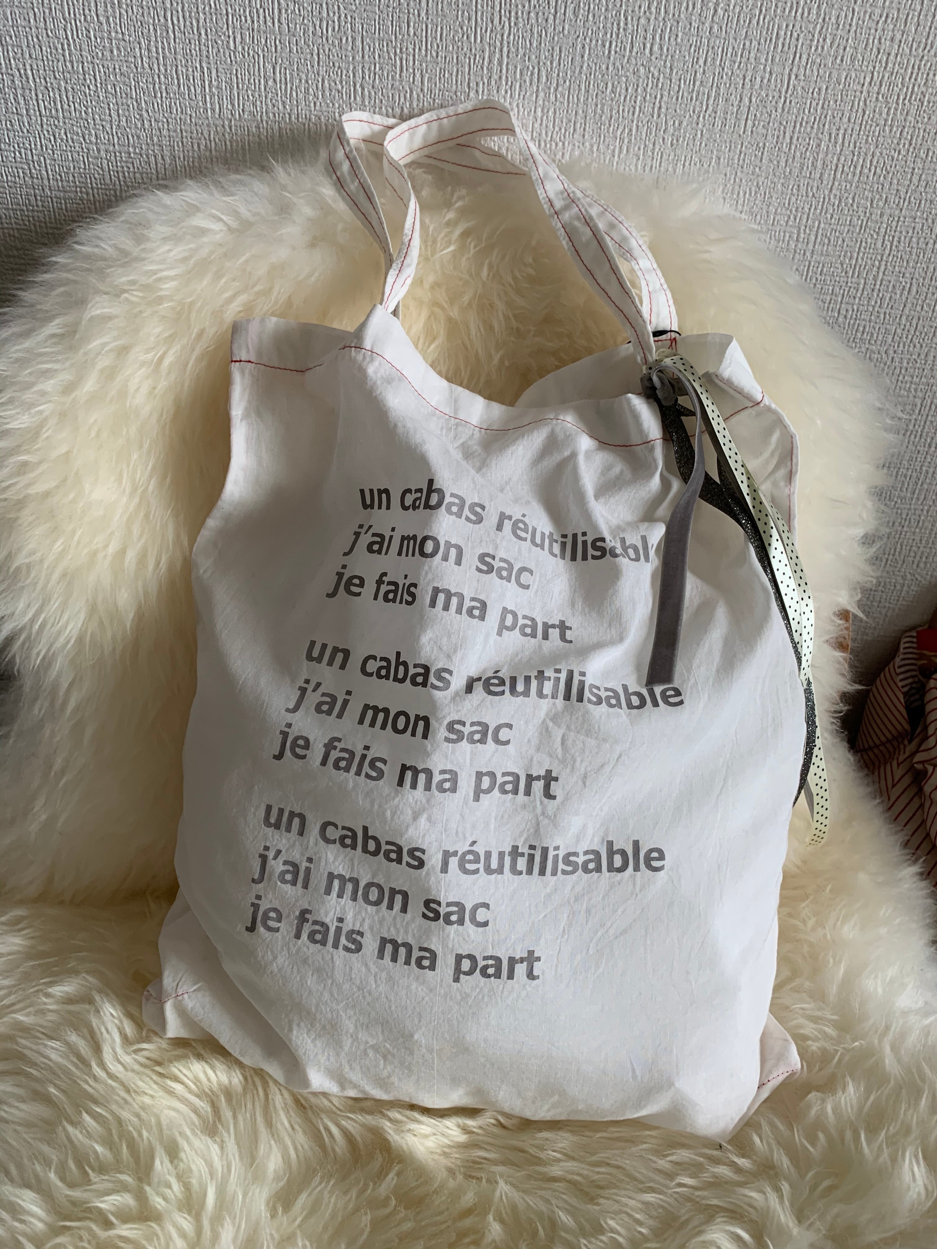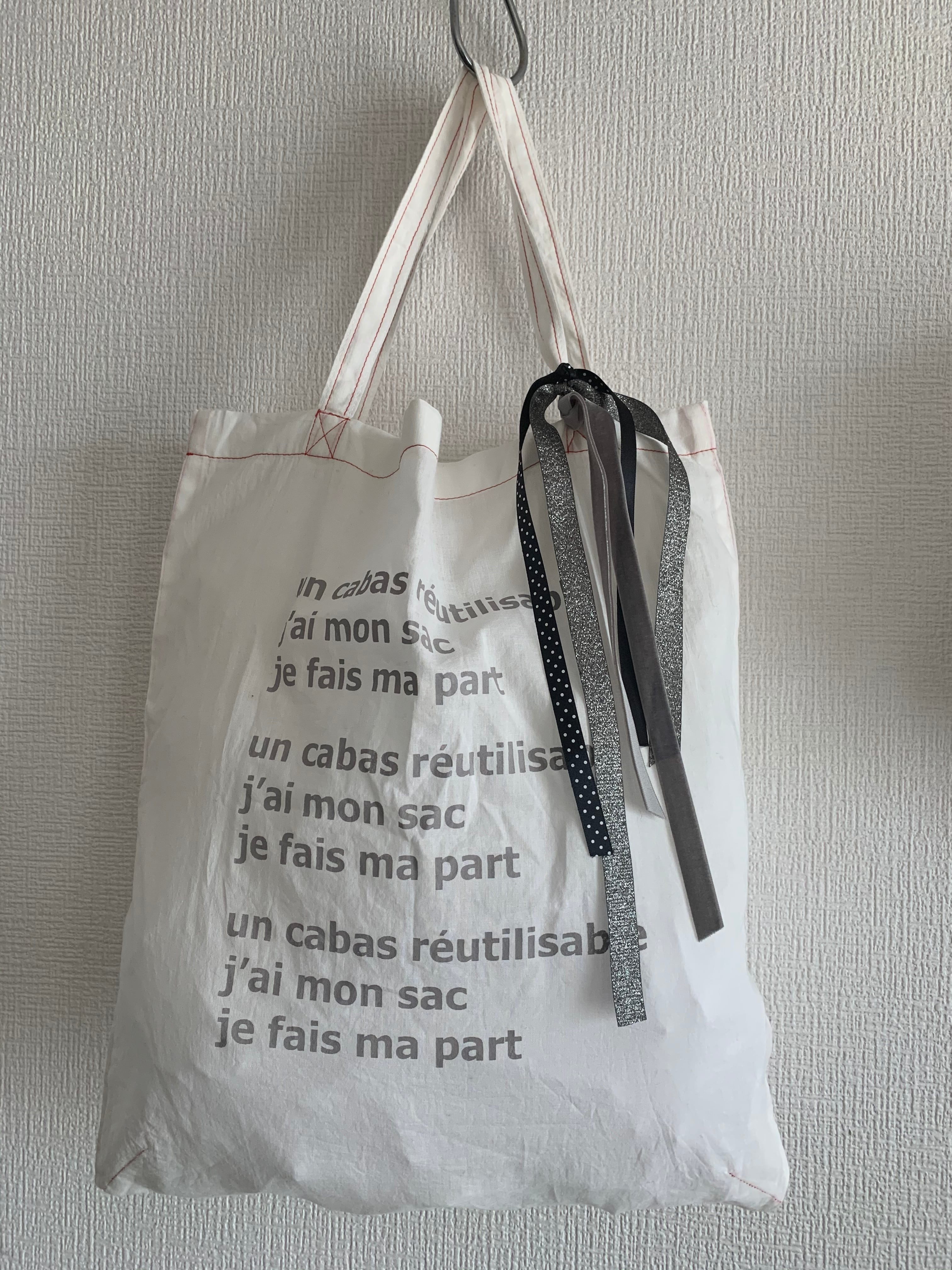 インドから取り寄せたインドボイルのコットン生地のオリジナルロゴバッグです。