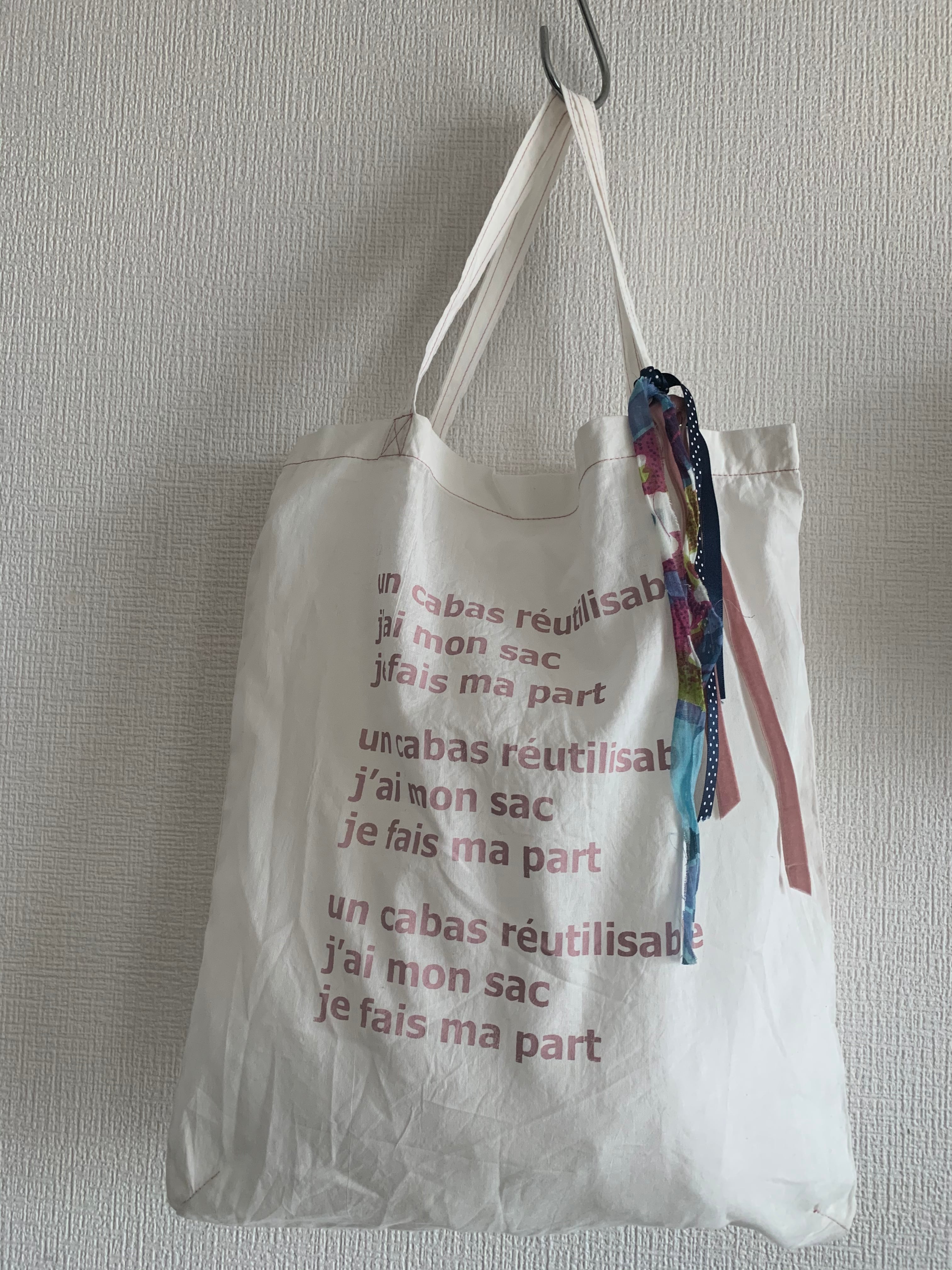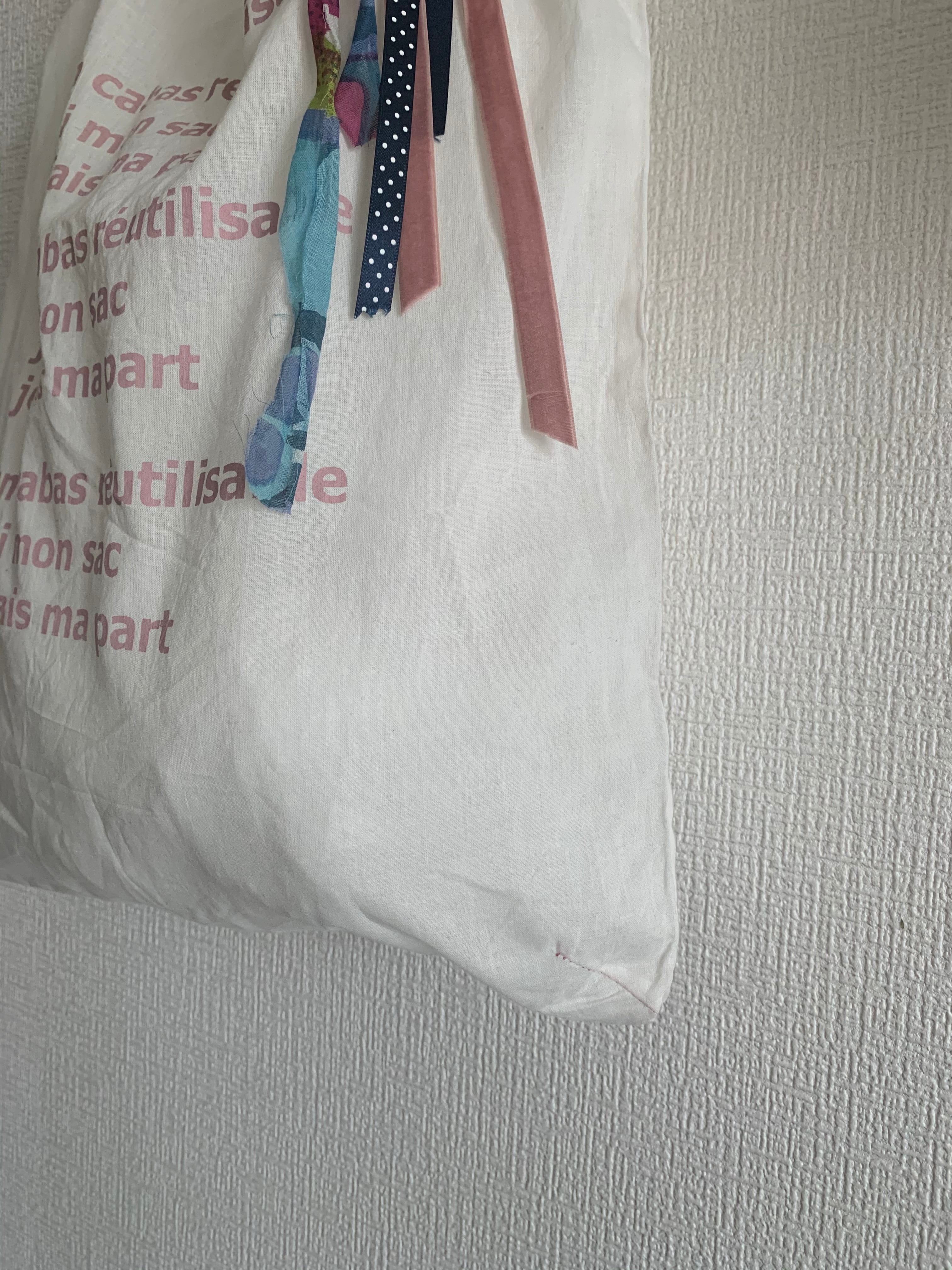 インドから取り寄せたインドボイルのコットンのロゴバッグです。