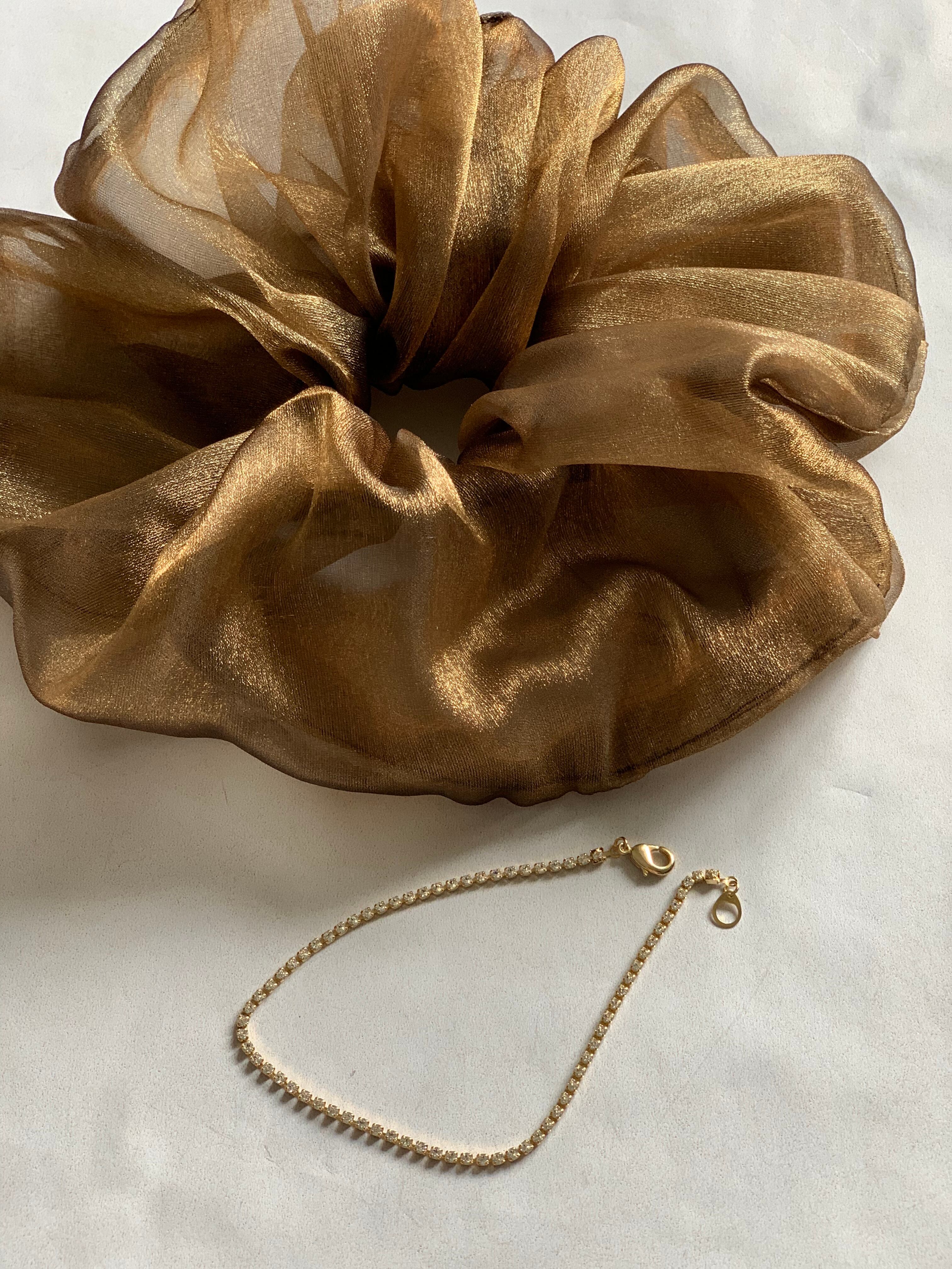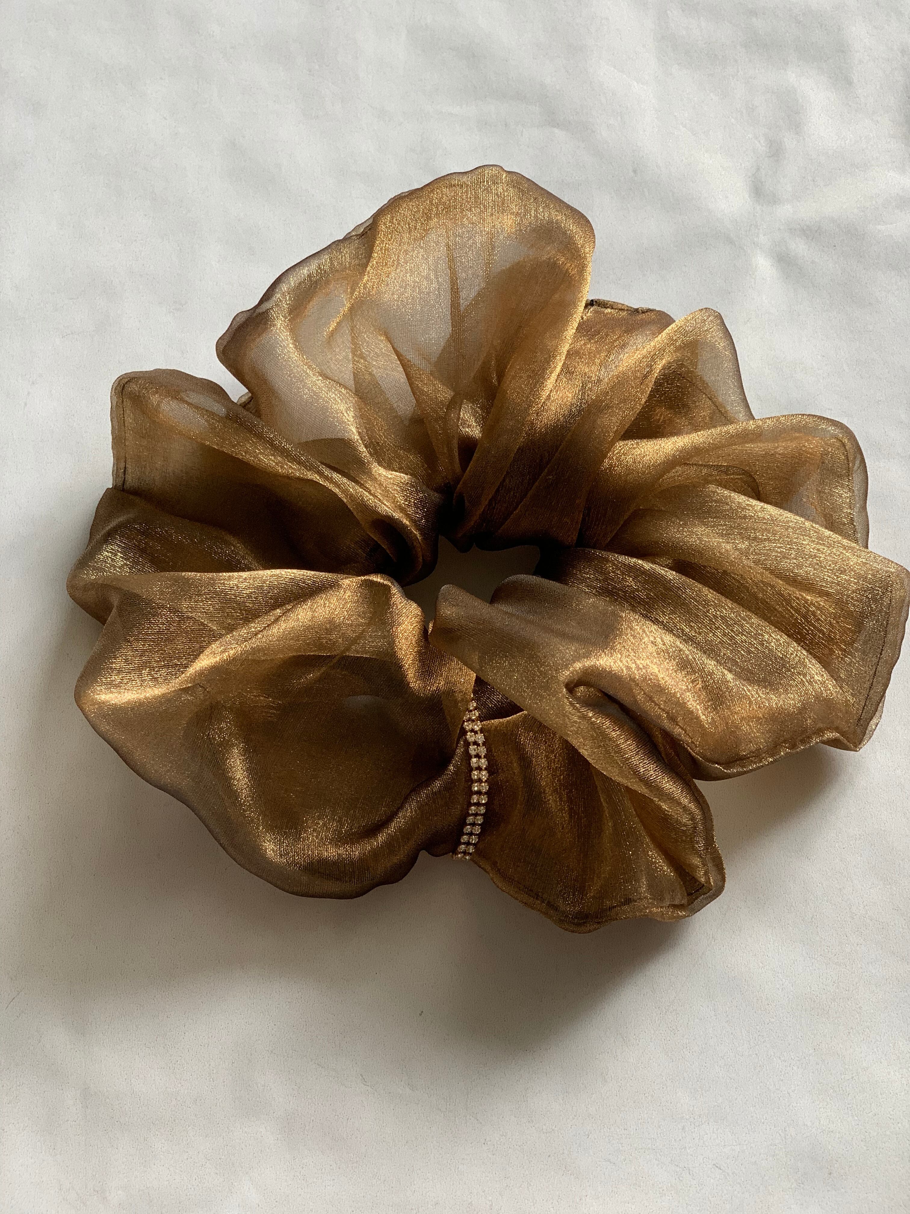 goldラメのオーガンジーをたっぷり使って作ったシュシュです。