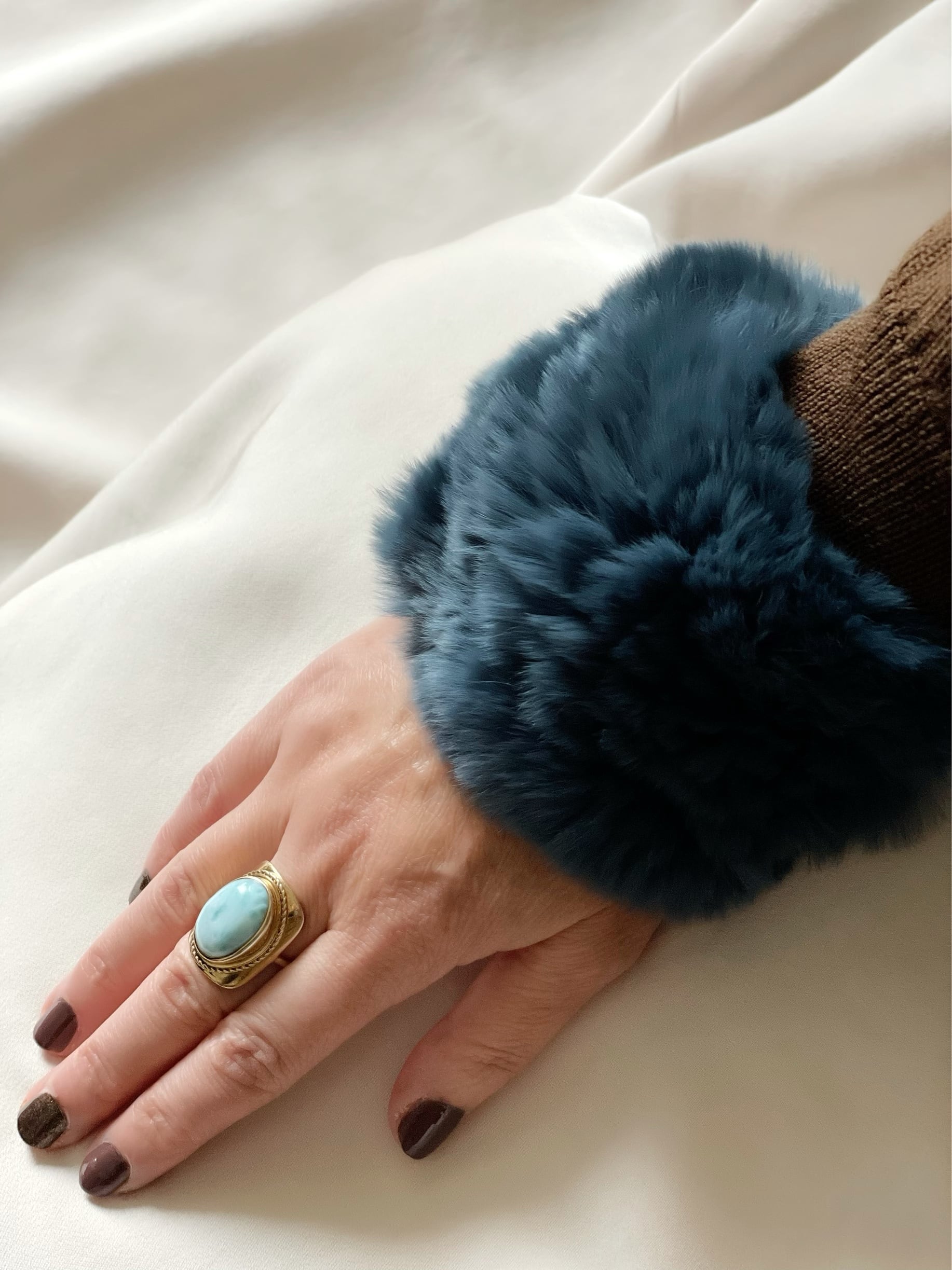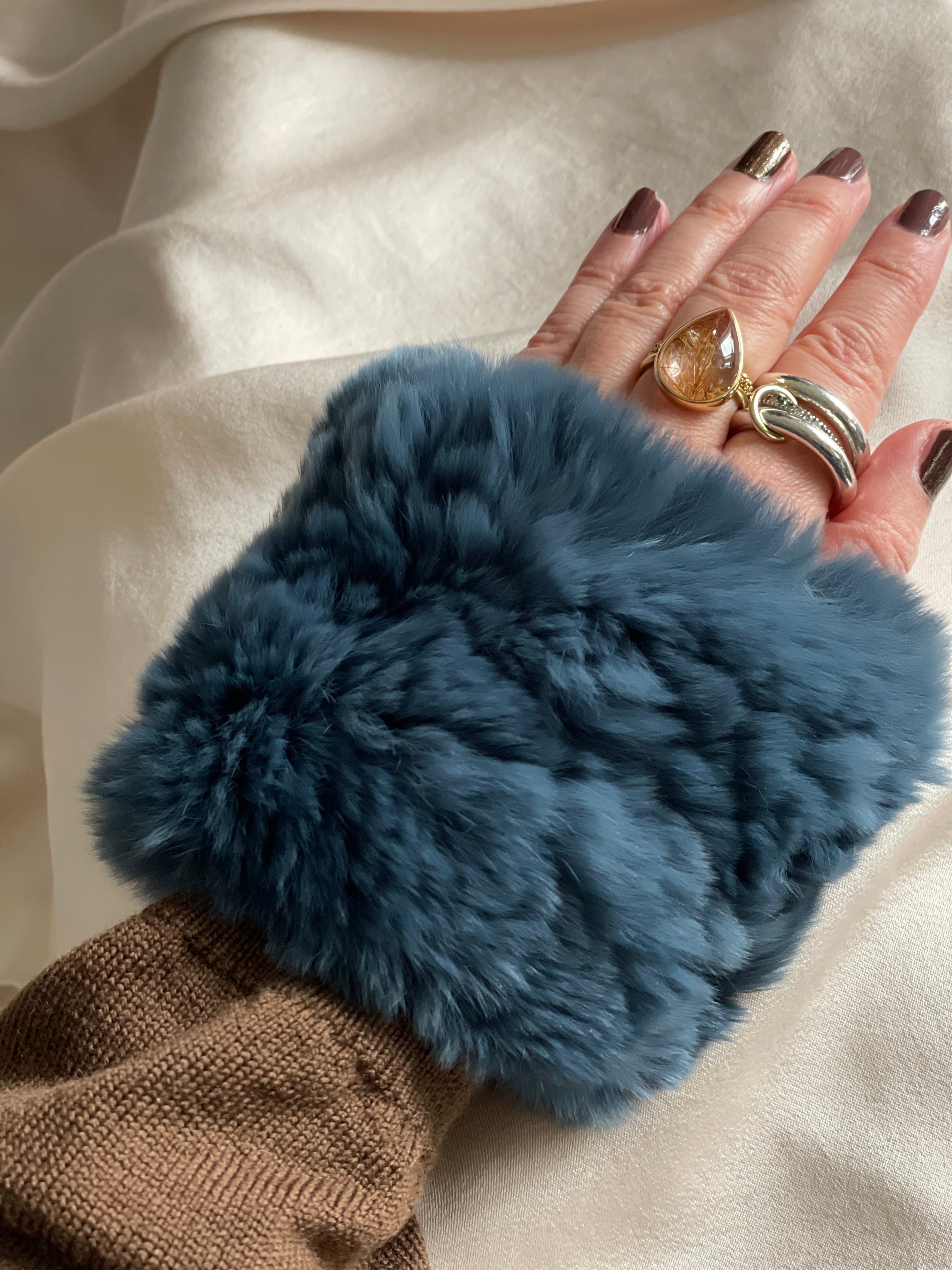 ラビットファーの少しスモーキーなブルーはとても合わせやすく、そして大人っぽく、秋冬の差し色になるカラーです。