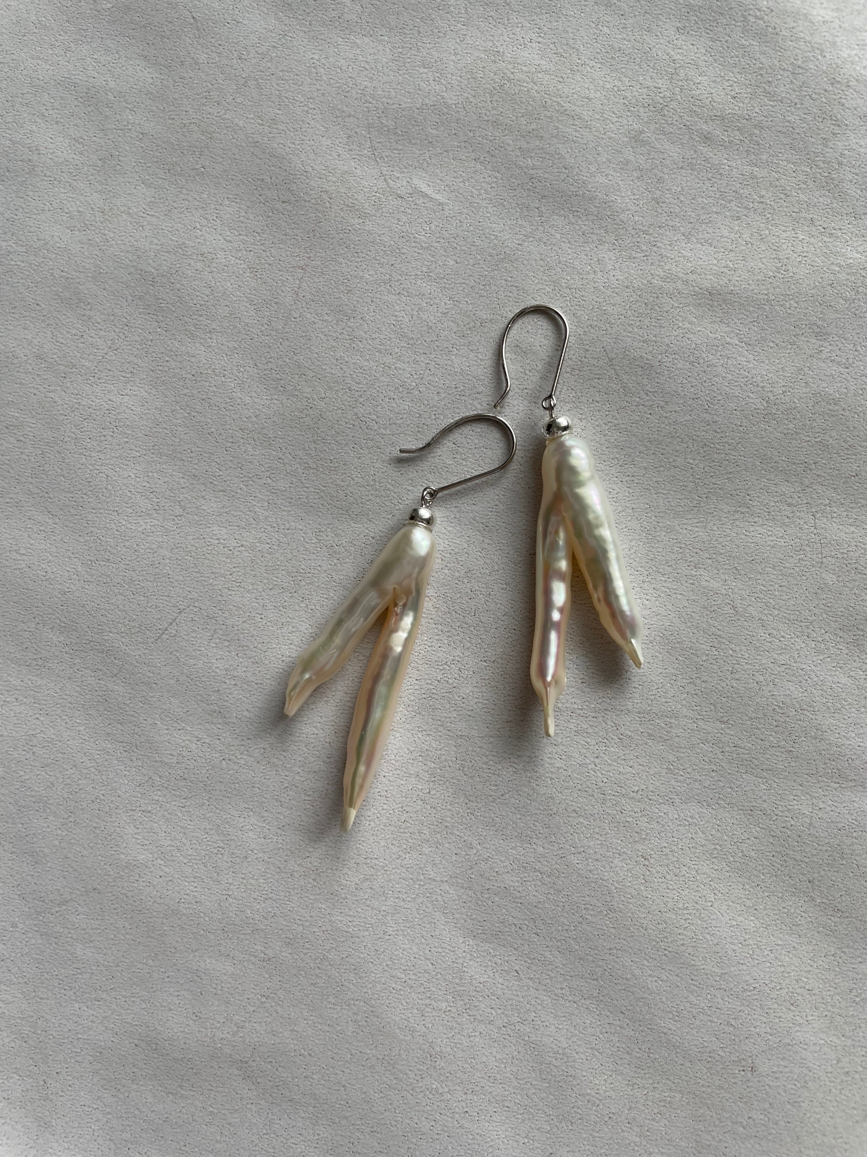 これから夏のスタイルにぴったりの艶々でテリがとても良いバロックスティックパールとsilver925ビーズを付け合わせたピアスです。