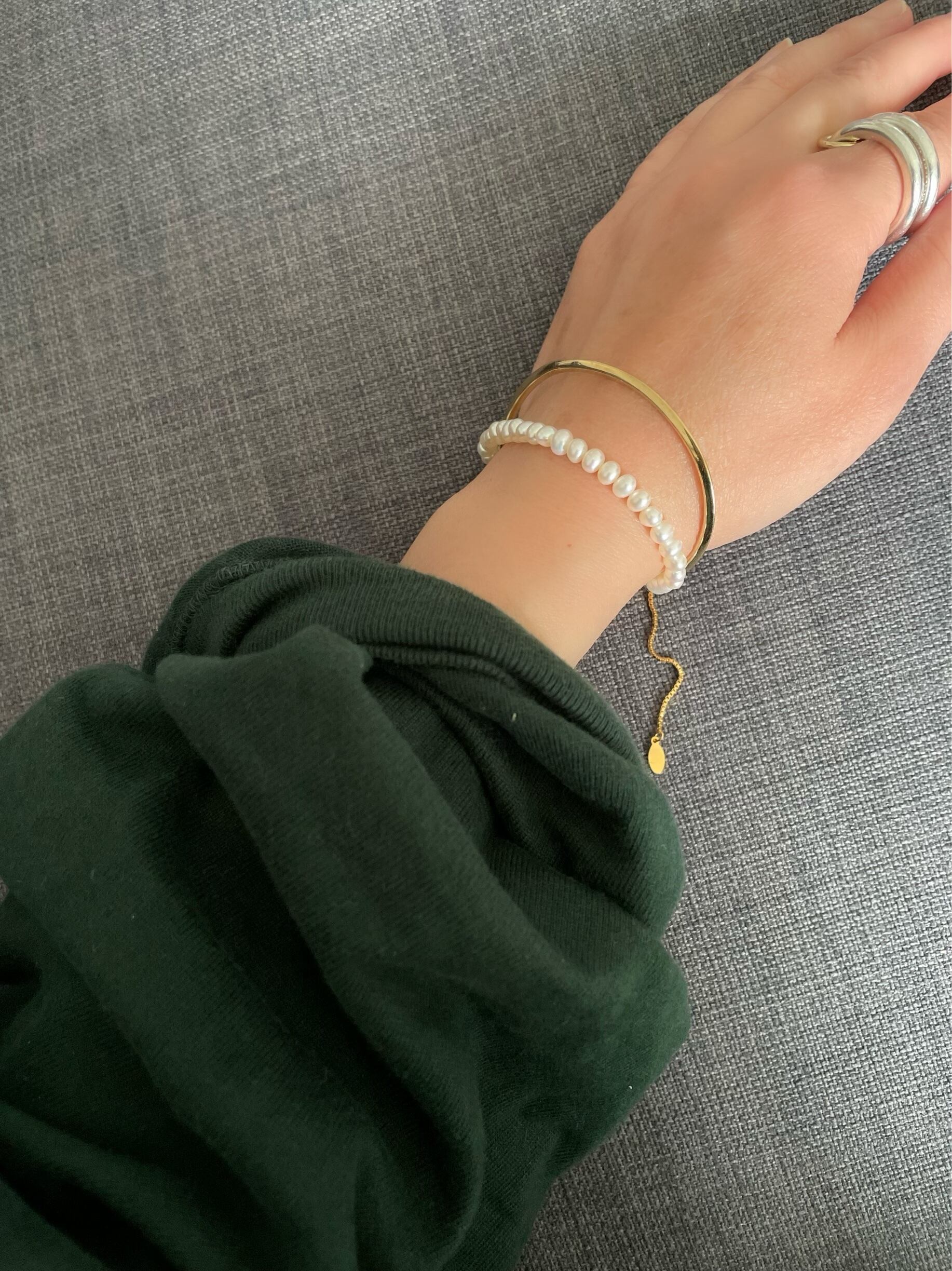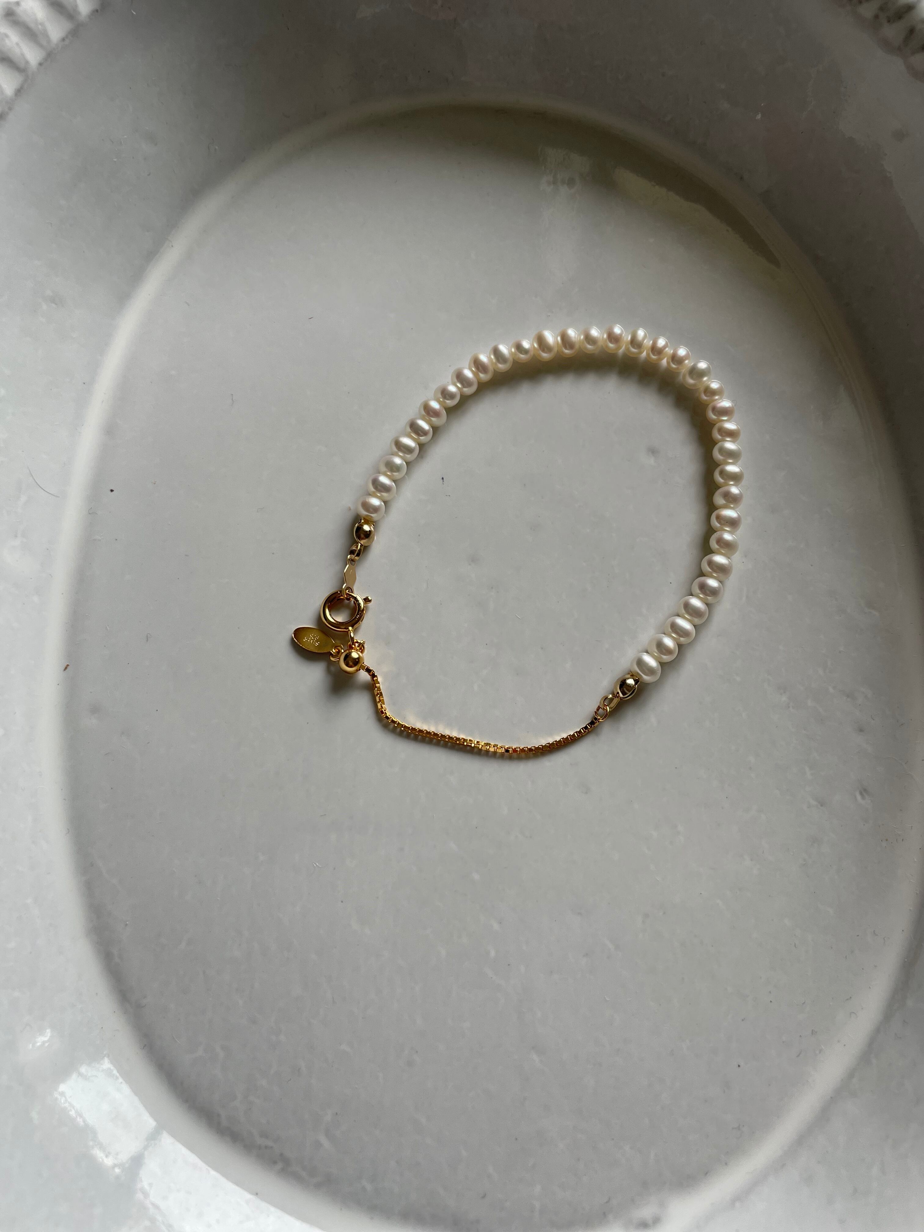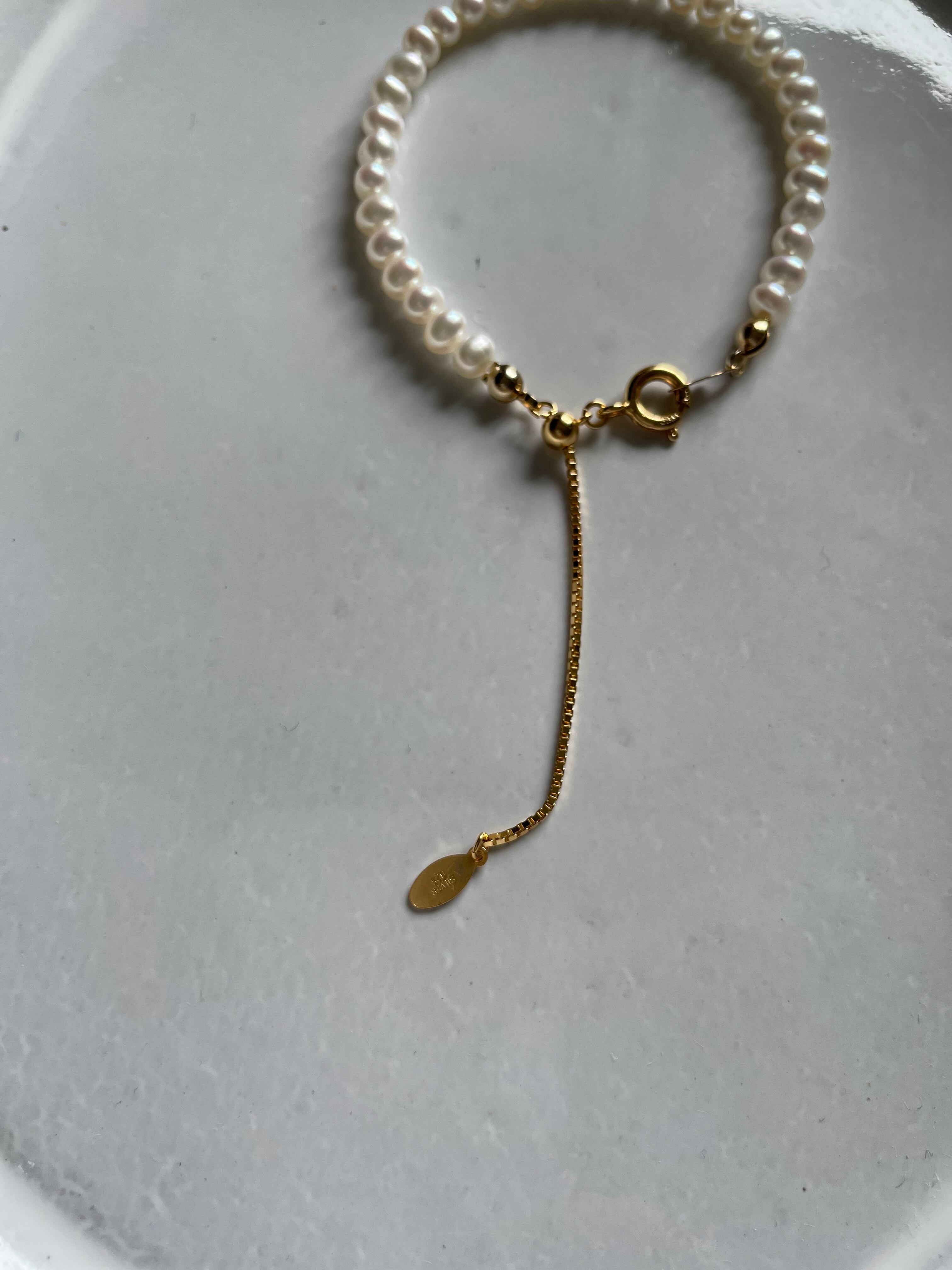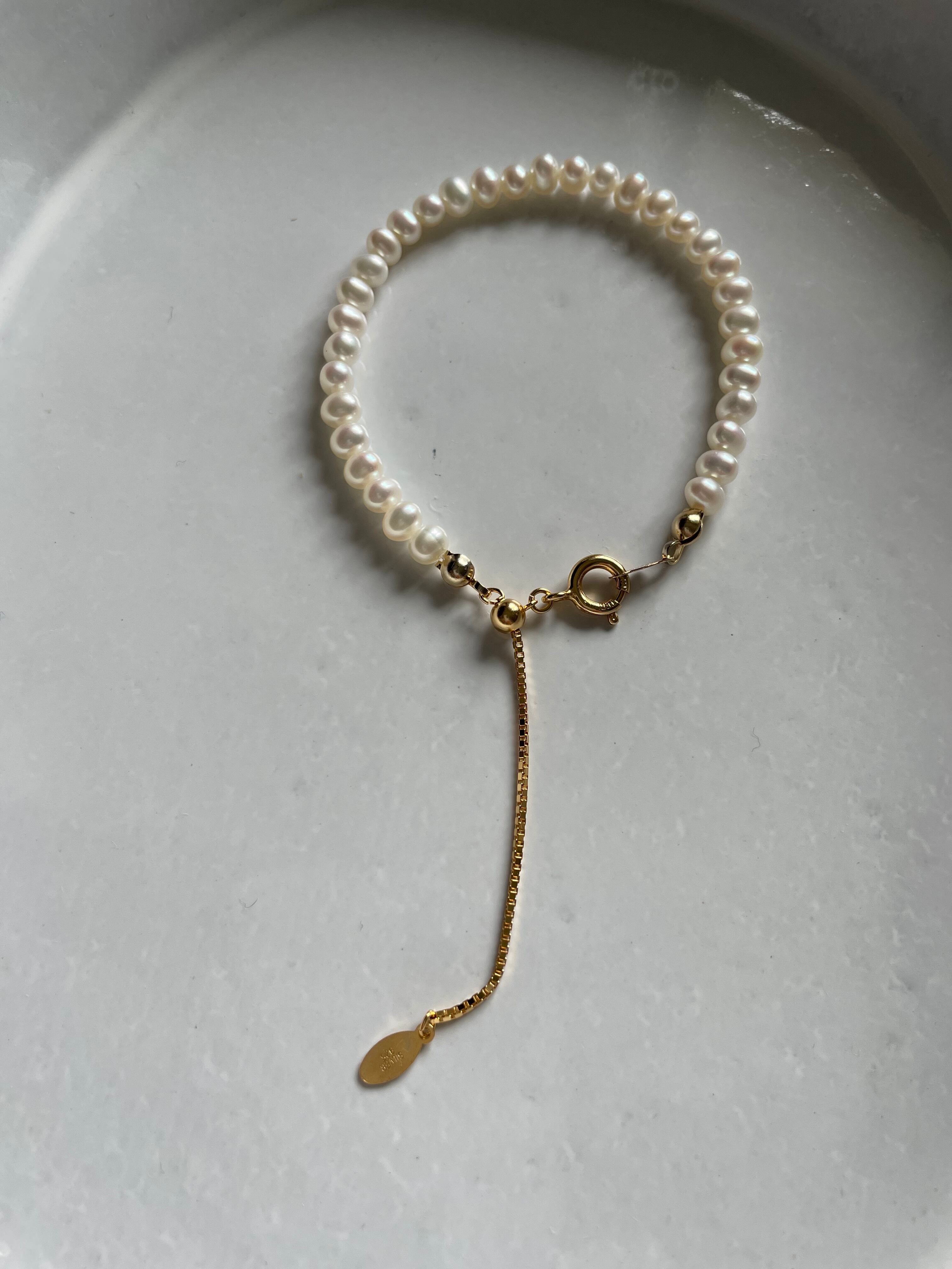 艶々テリテリのポテト型の淡水パールのブレスレットはサイズ感をスライダー式アジャスターで調整頂けるようにしました。