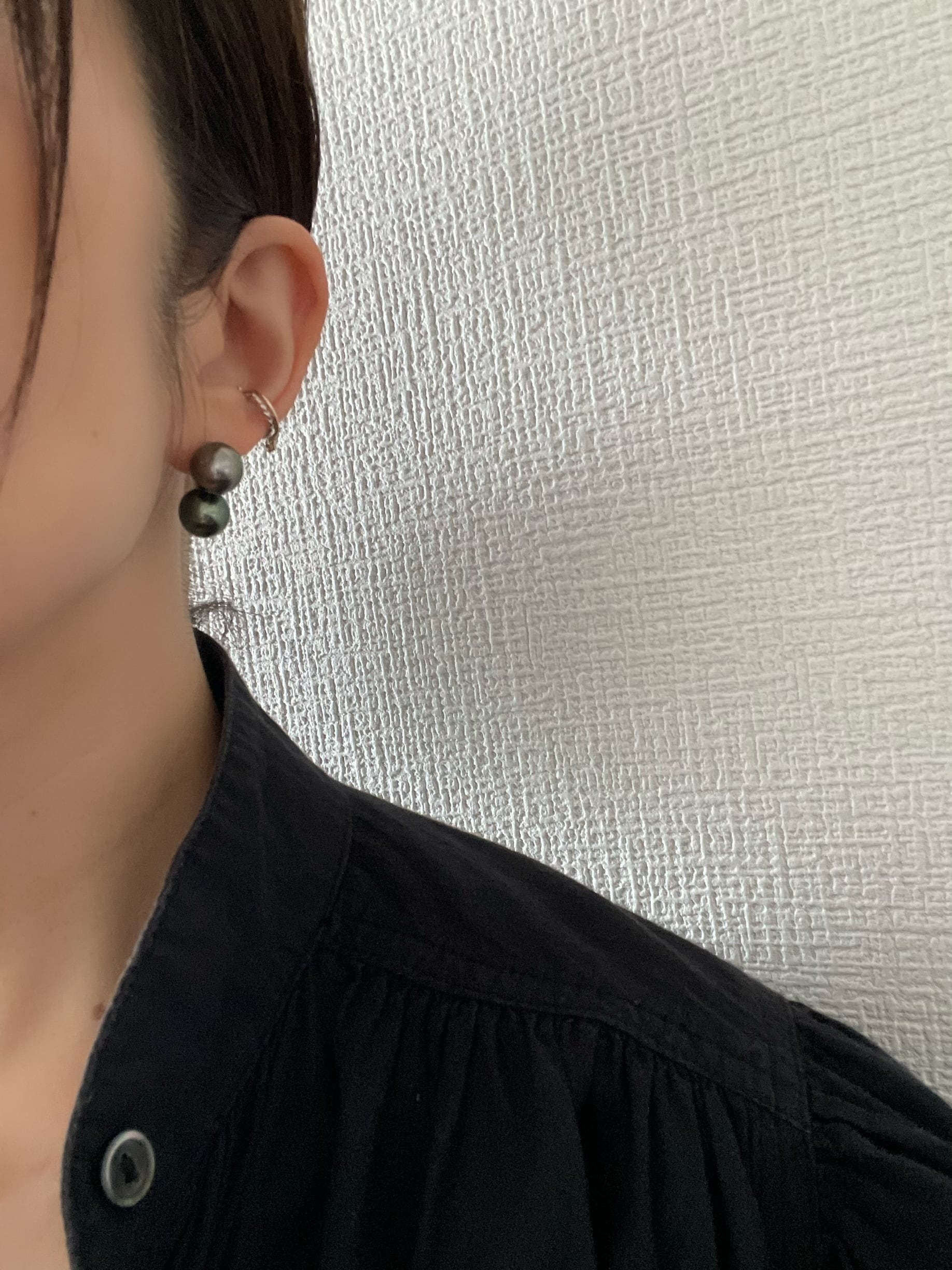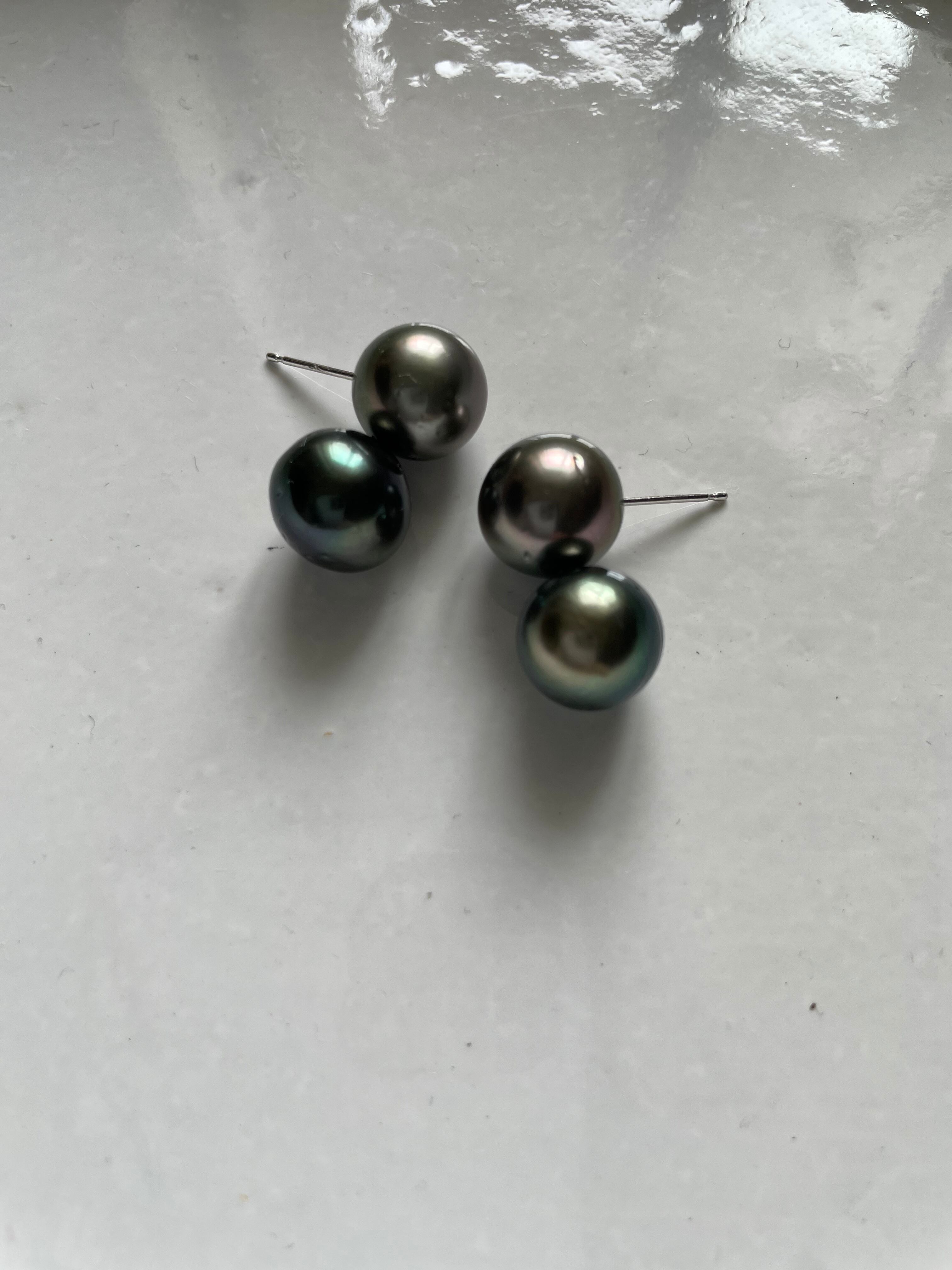黒蝶南洋真珠を贅沢に2つ繋げてお作りしたツインピアスです。