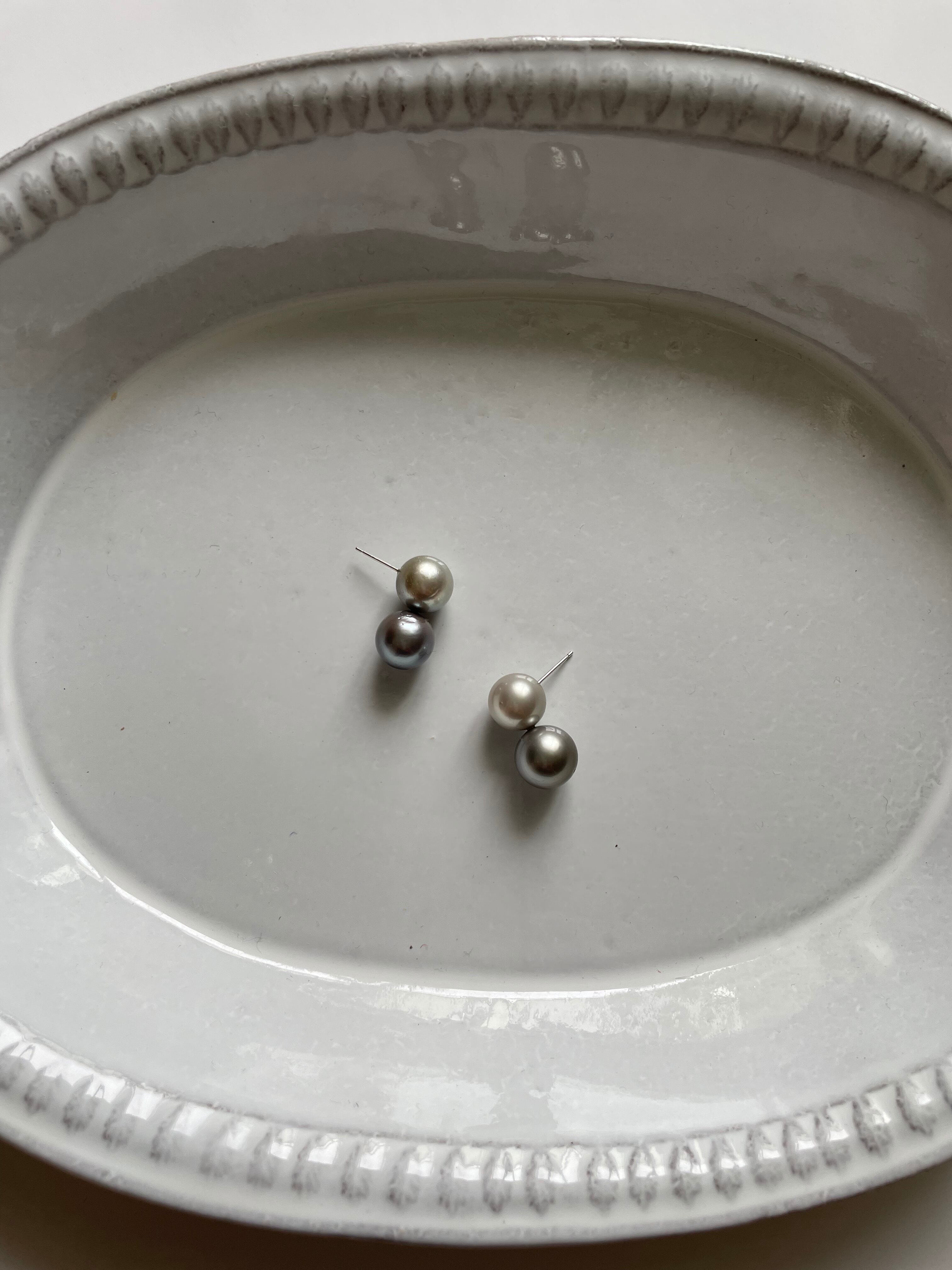 黒蝶南洋真珠を贅沢に2つ繋げてお作りしたツインピアスです。