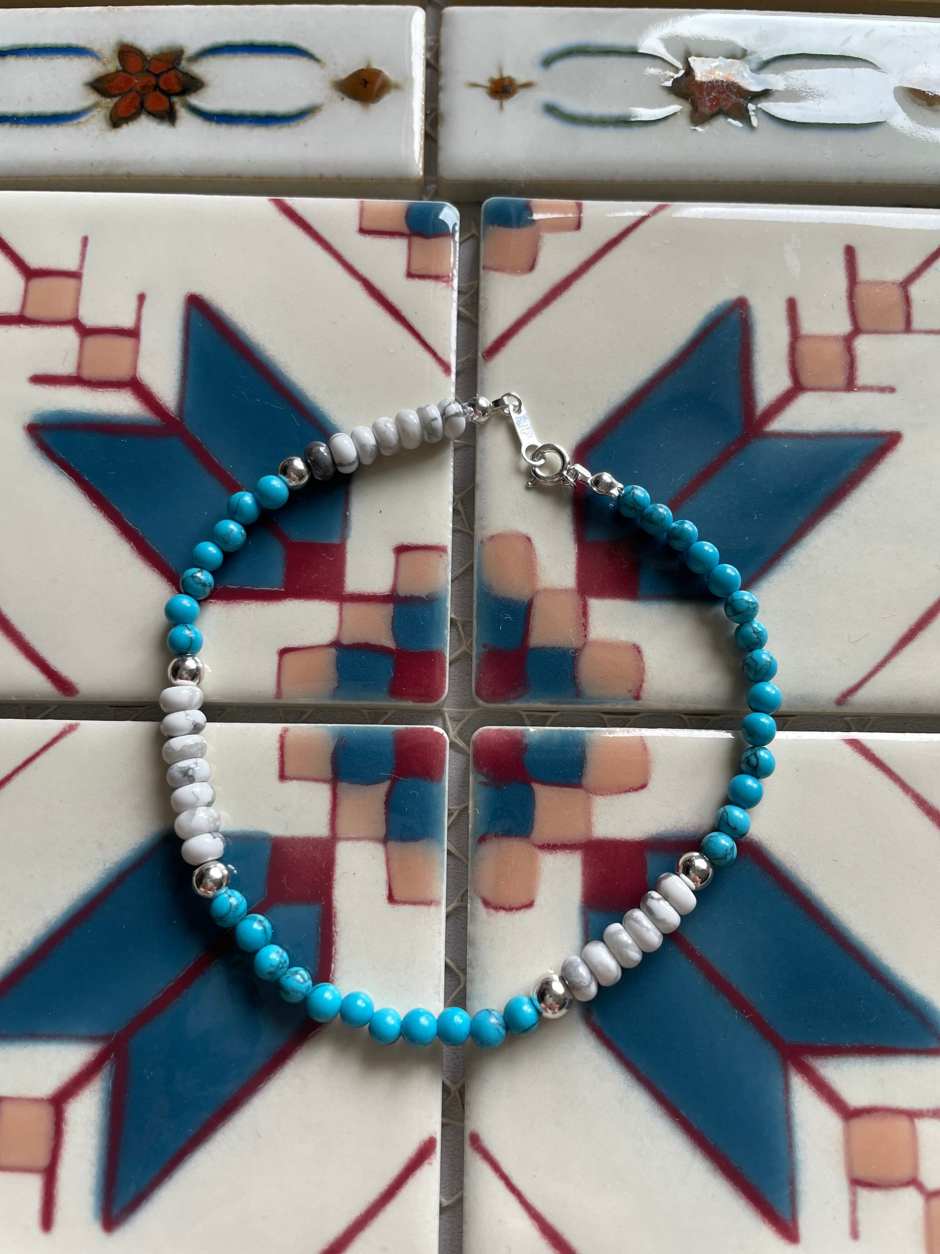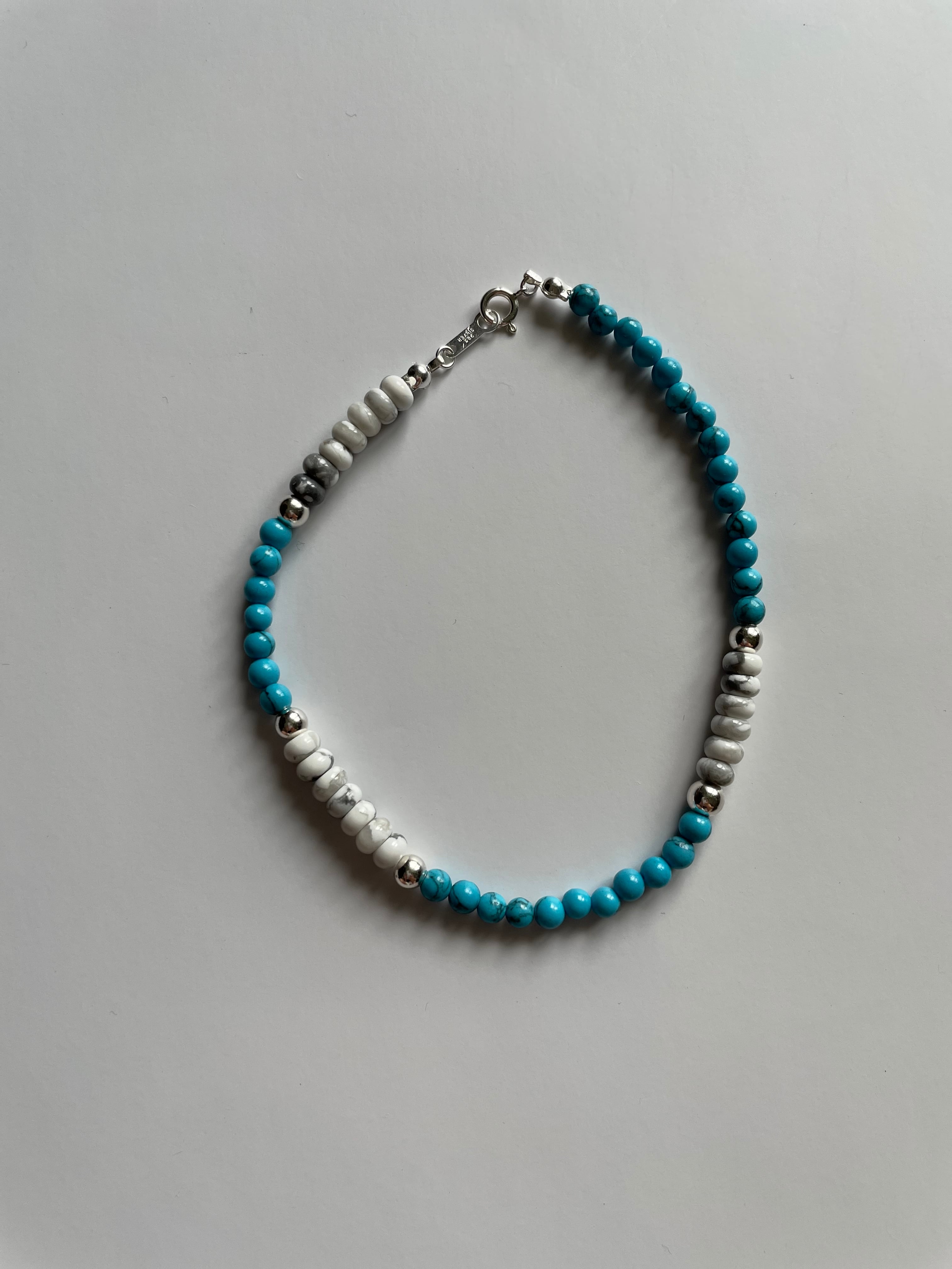 夏らしくターコイズとハウライト、silverのアンクレットです。