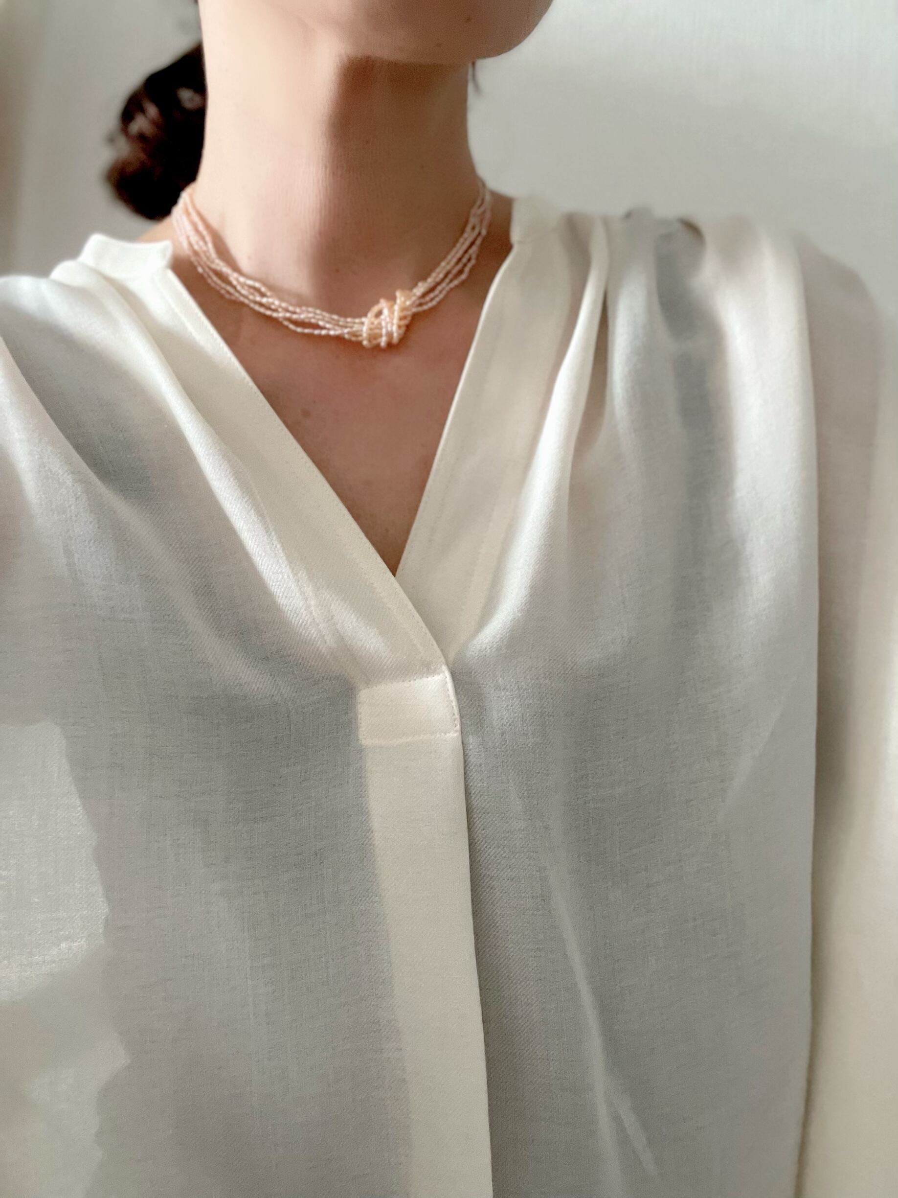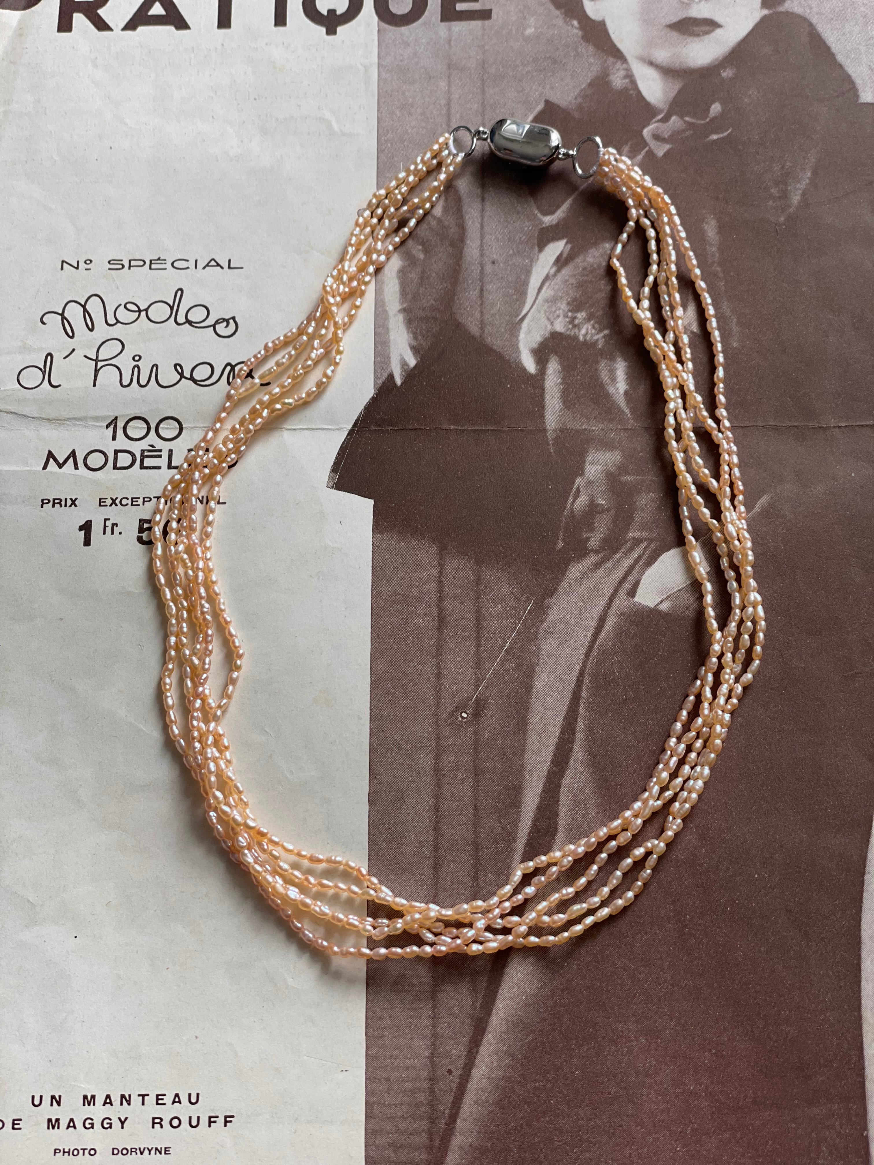 natural colorの2.5㎜のベビー淡水パールを5連にしたネックレスです。