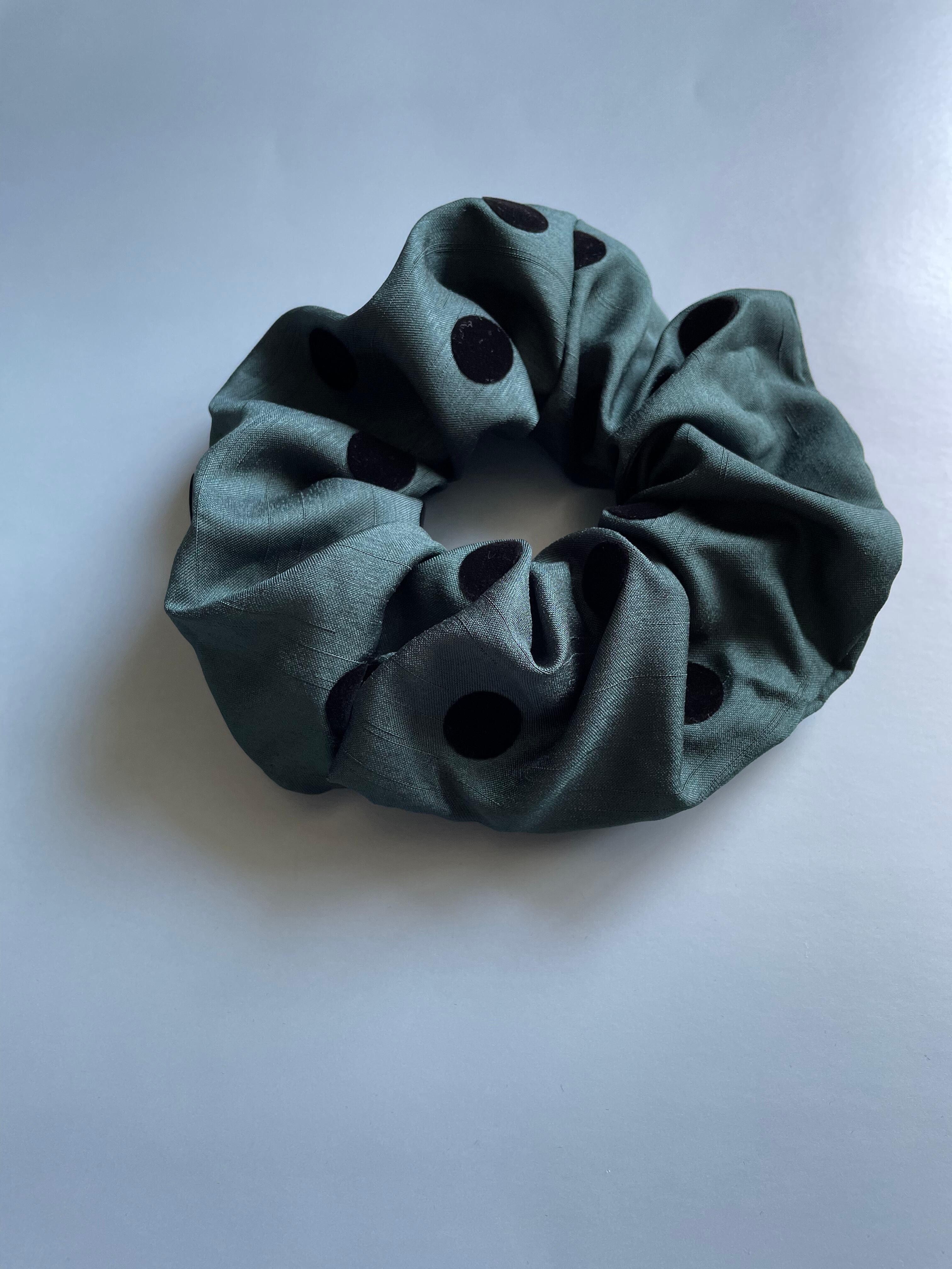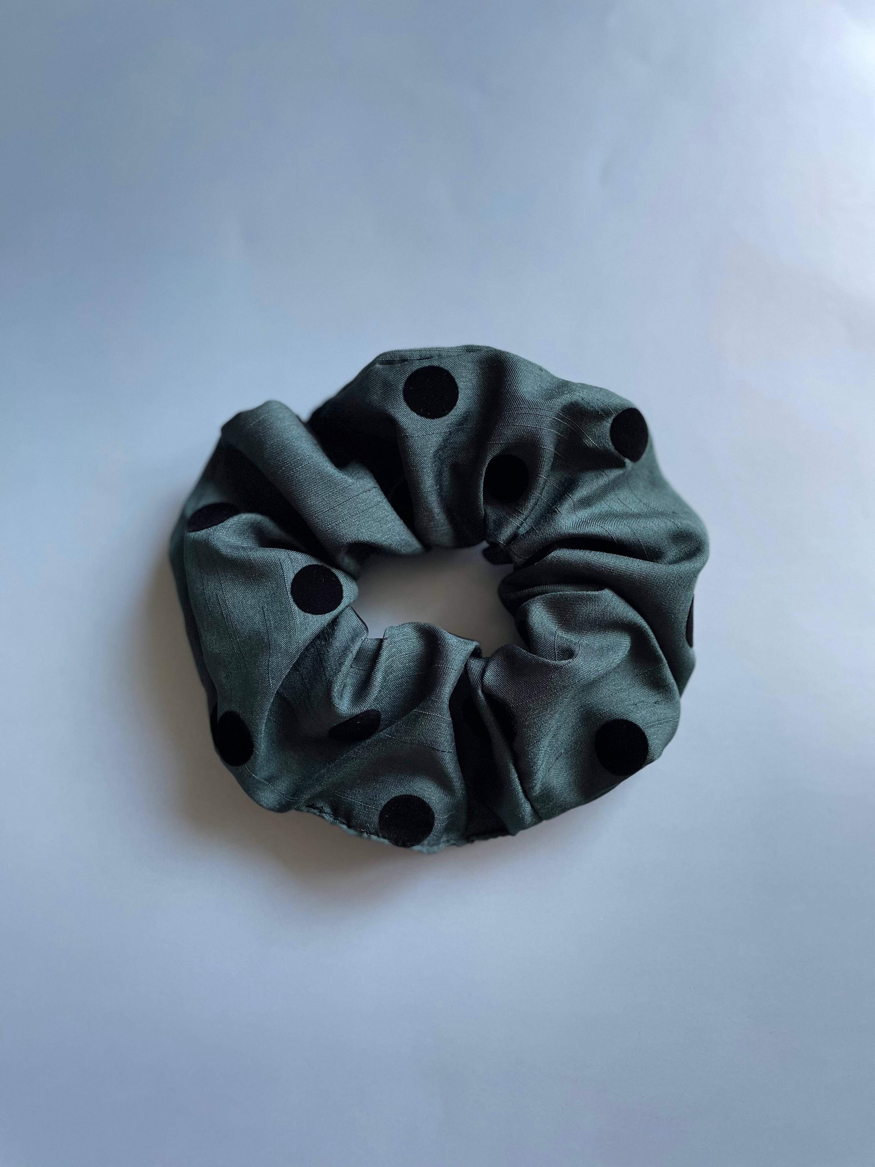 シャンタン生地が上品でさりげなく存在感ある質感でドットも黒なのでモードっぽくお付け頂けます。
