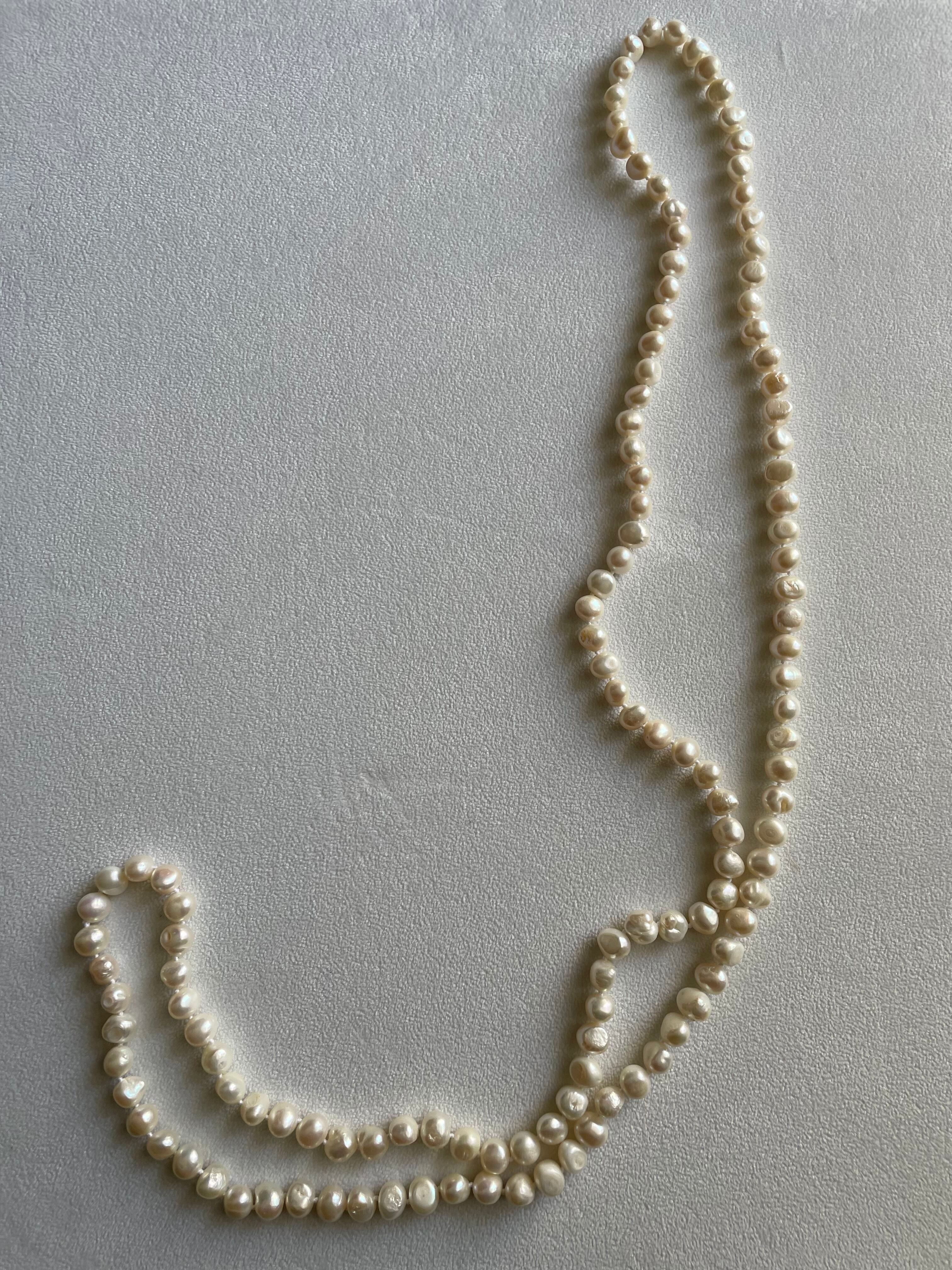 オールノットで組み上げた淡水バロックパールロングネックレスです。