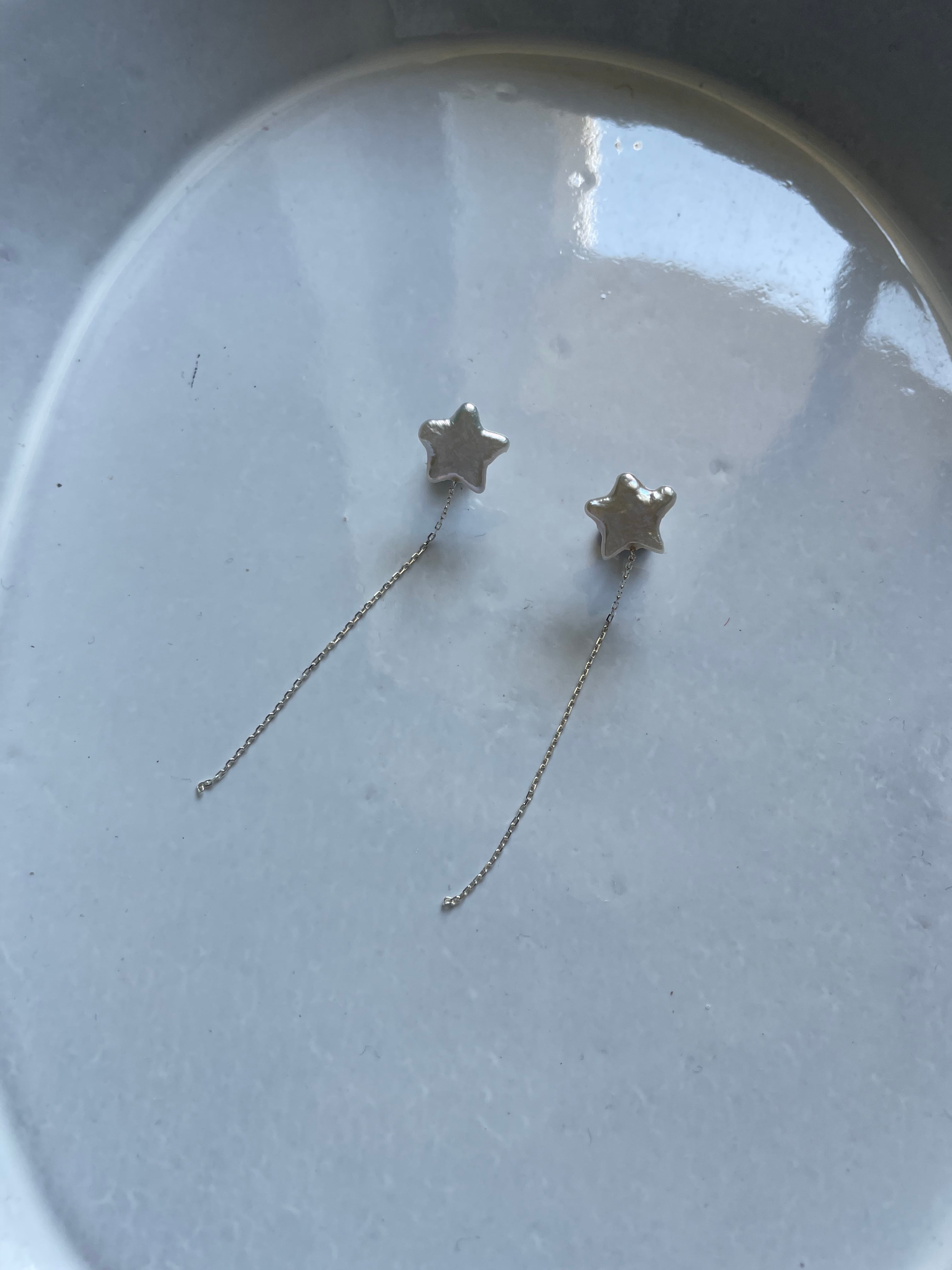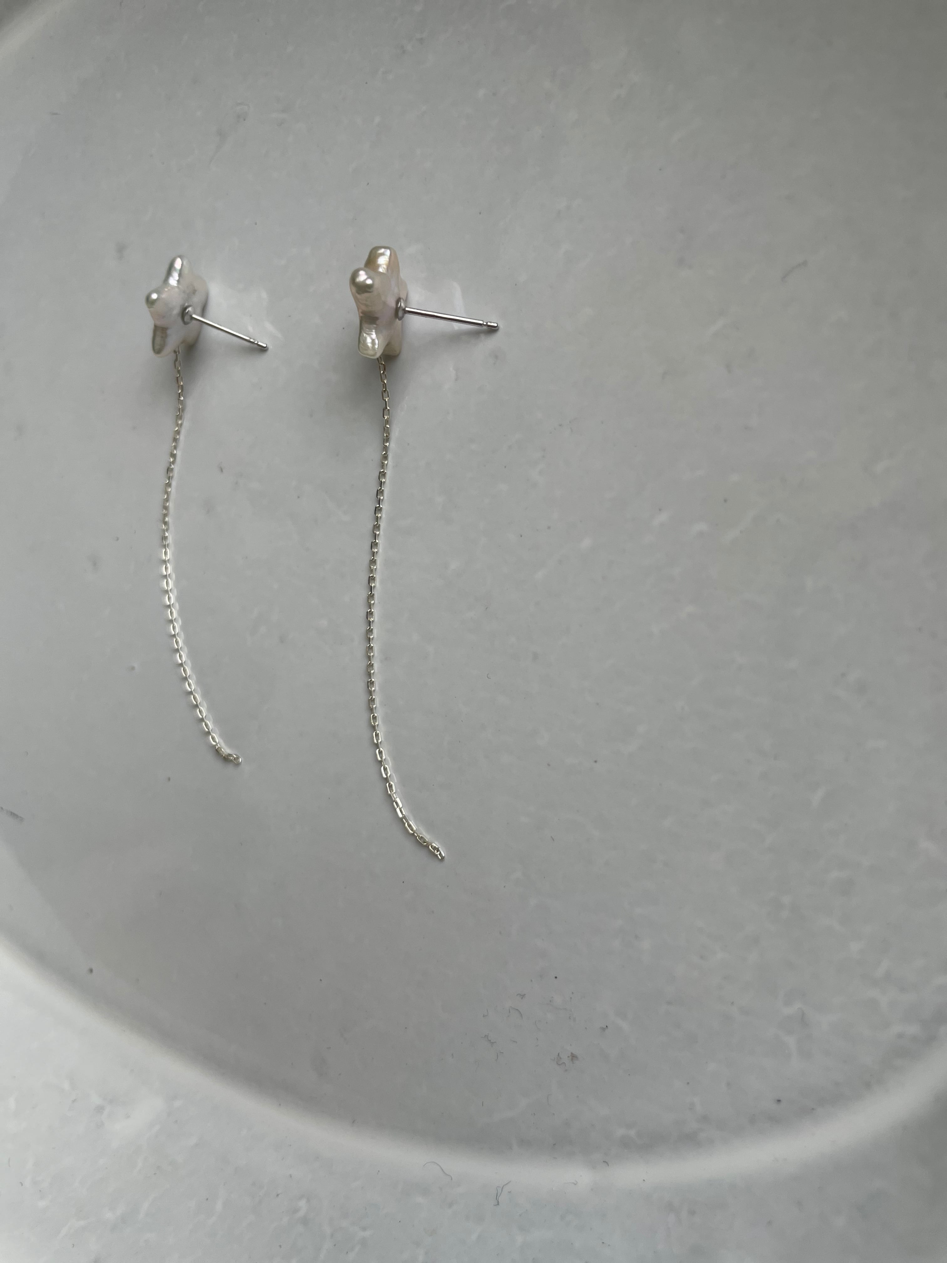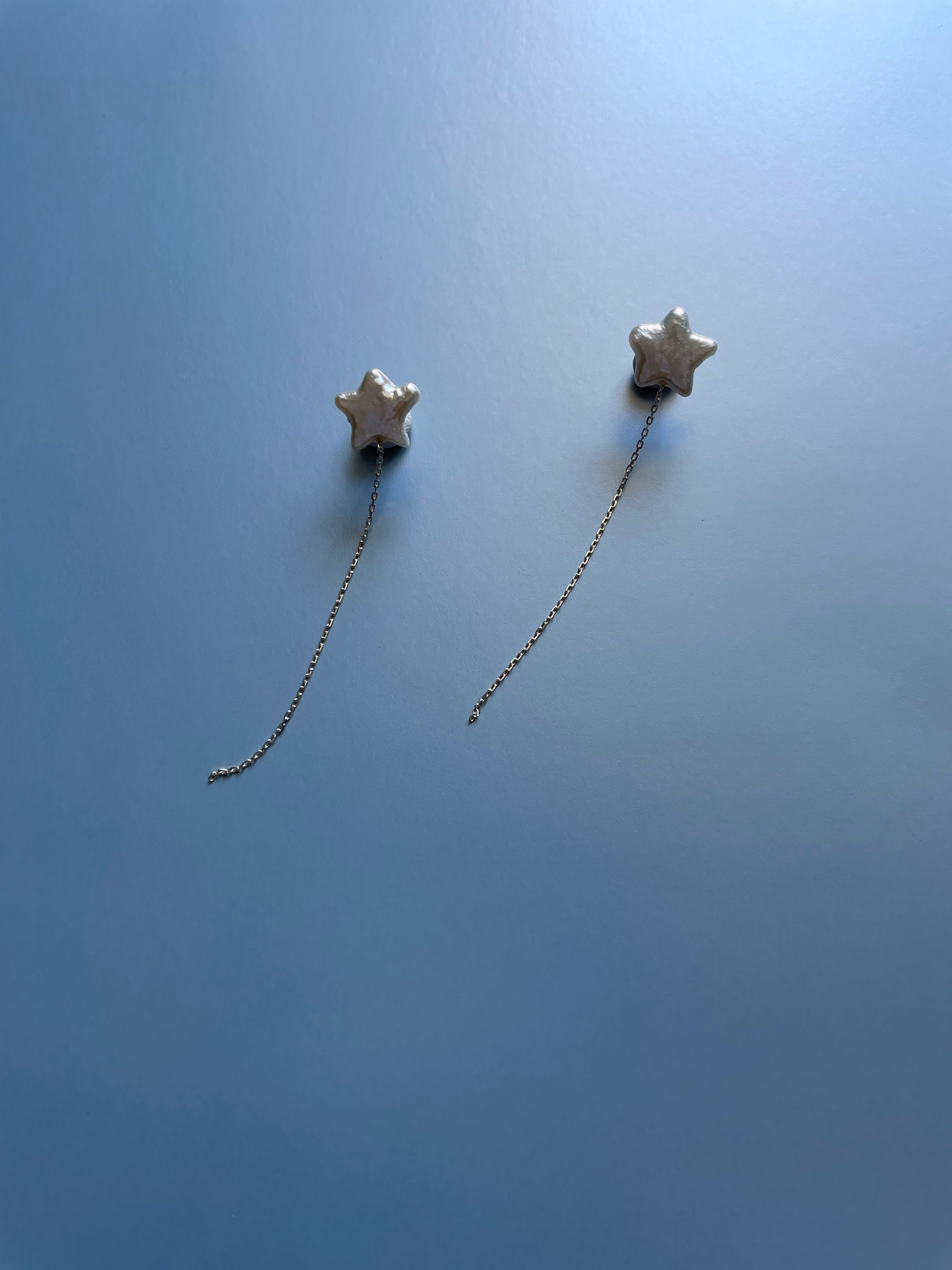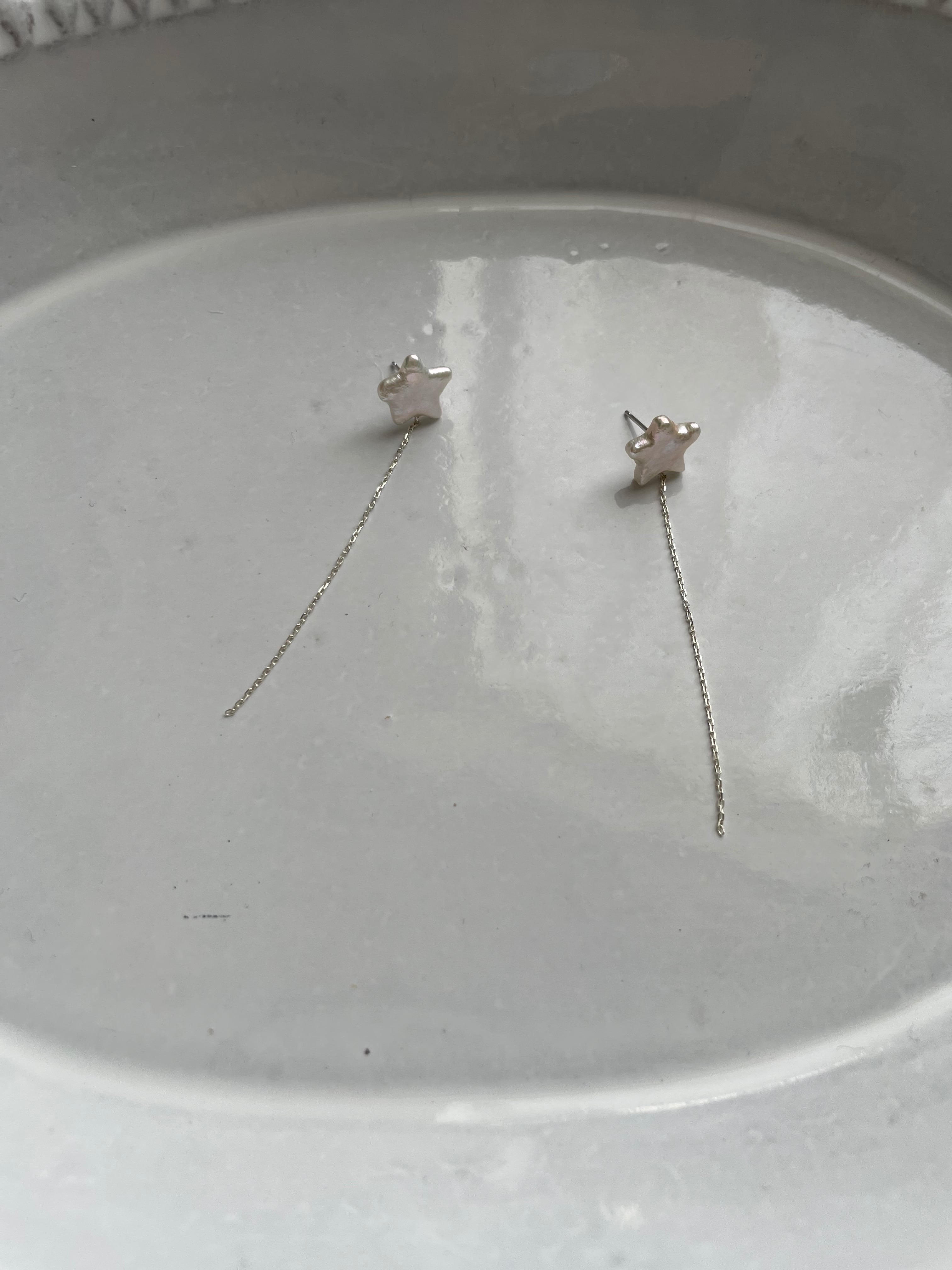 とても希少でもうこの先入手困難な綺麗な形の貴重な星型の淡水パールに繊細なsilverチェーンがそっと揺れるピアスです。
