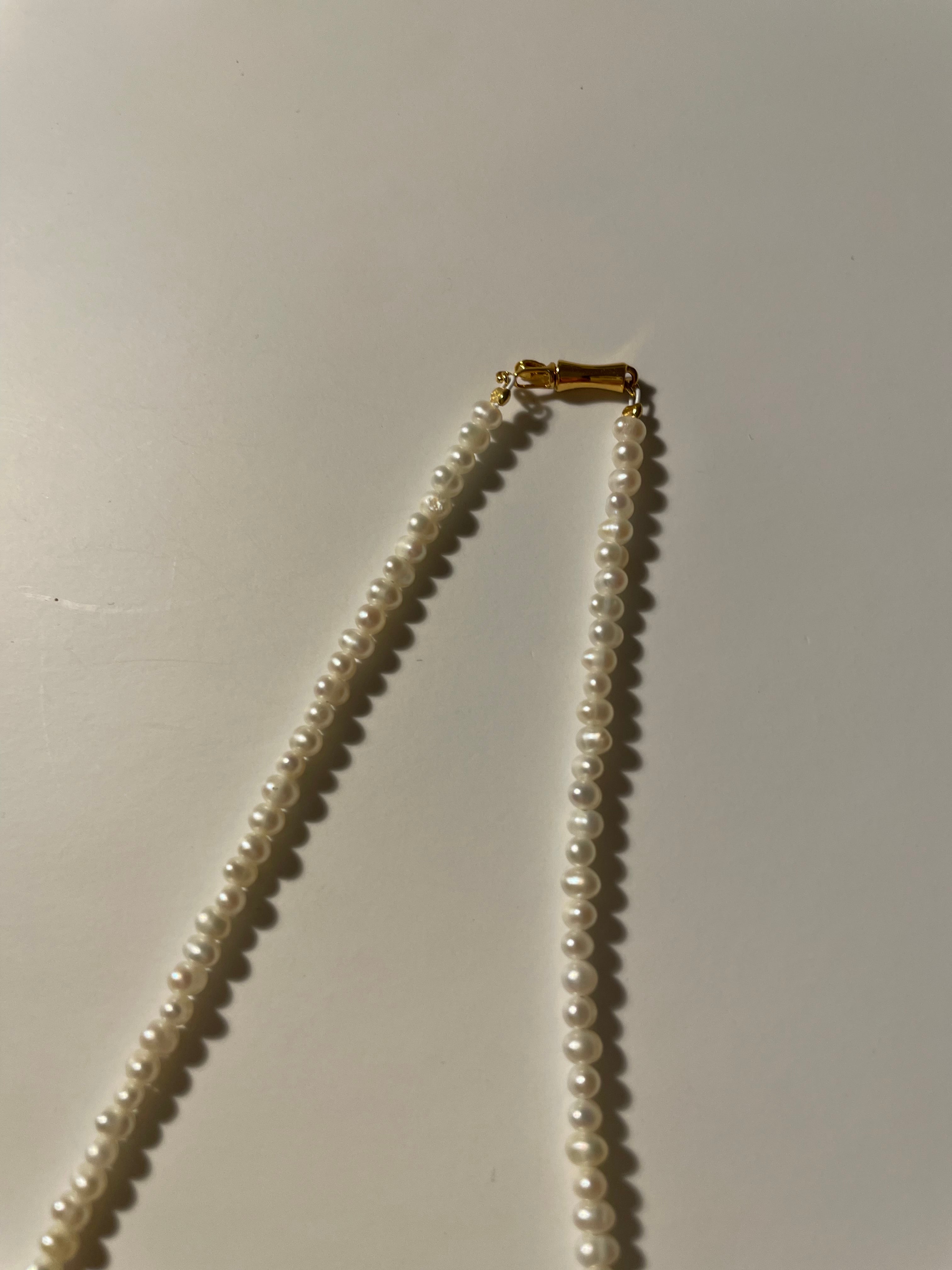 約3㎜の淡水ベビーパールは小粒でも艶とテリがとても良くシンプルで合わせやすく、スタイリッシュなプッシュ型クリップ式の留め具で装着も簡単にできます。