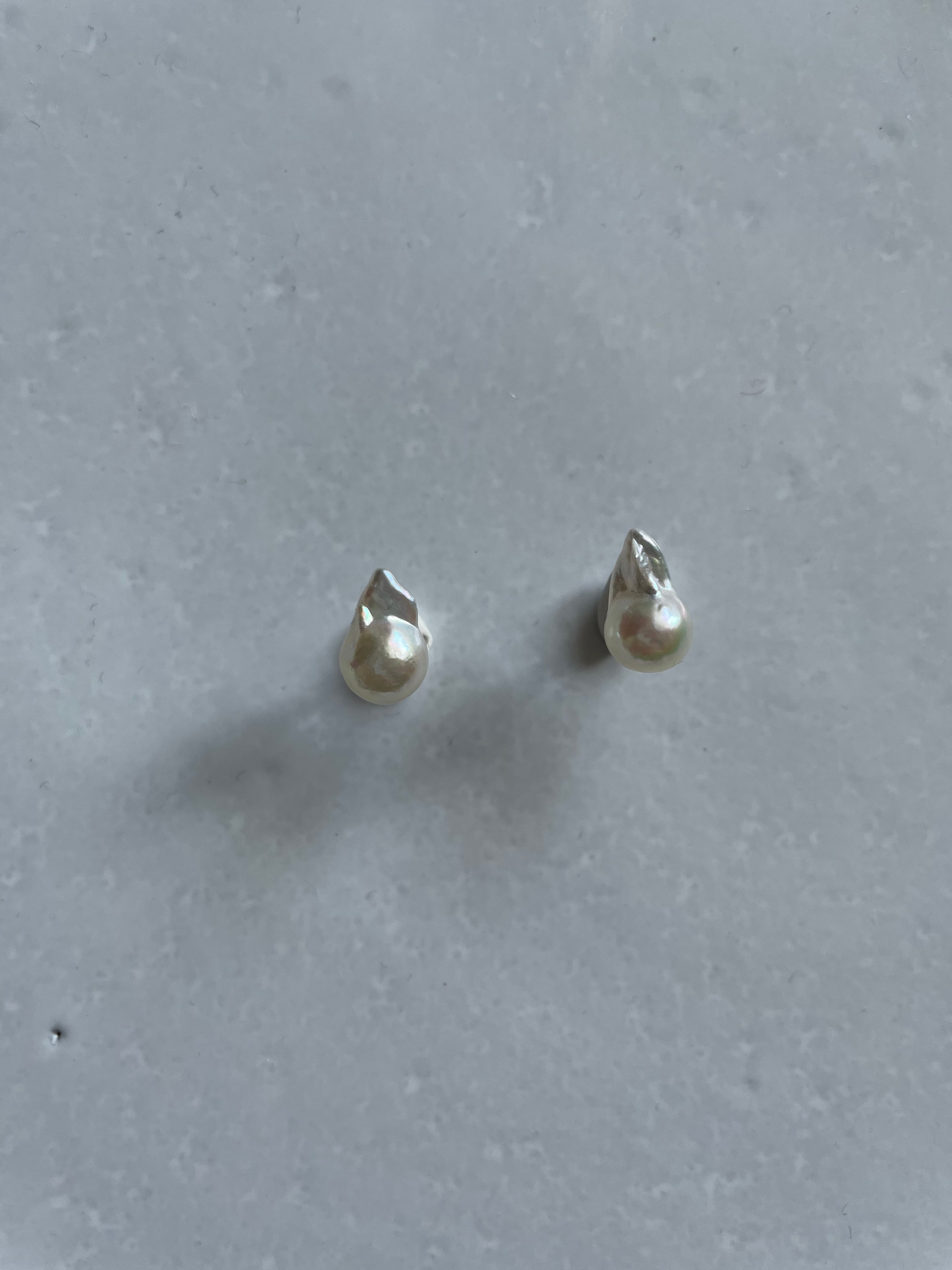 あこやパールの金魚のようなうさぎのような形の珍しいバロックのパールをスタッドpierceにしました。