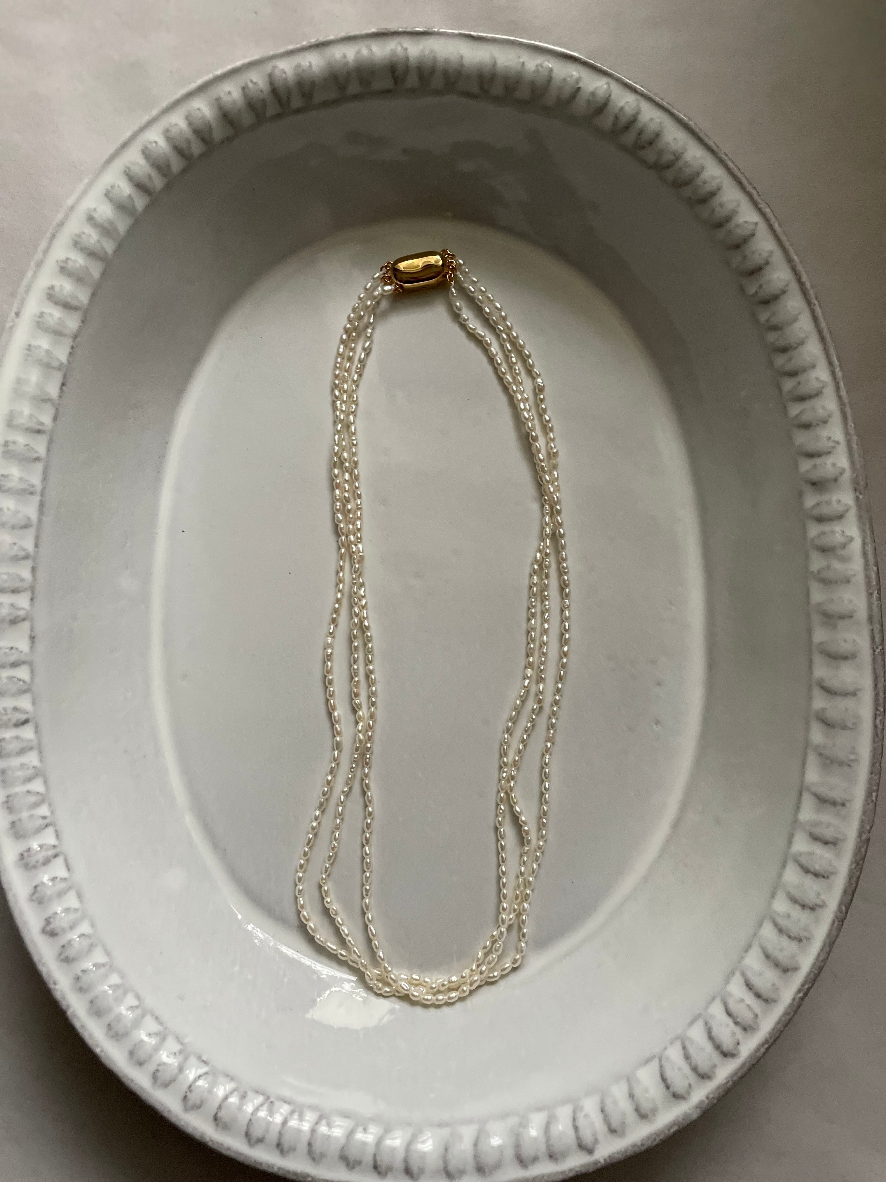を3連に繋ぎ、42㎝の長さの3連ネックレスにしました。