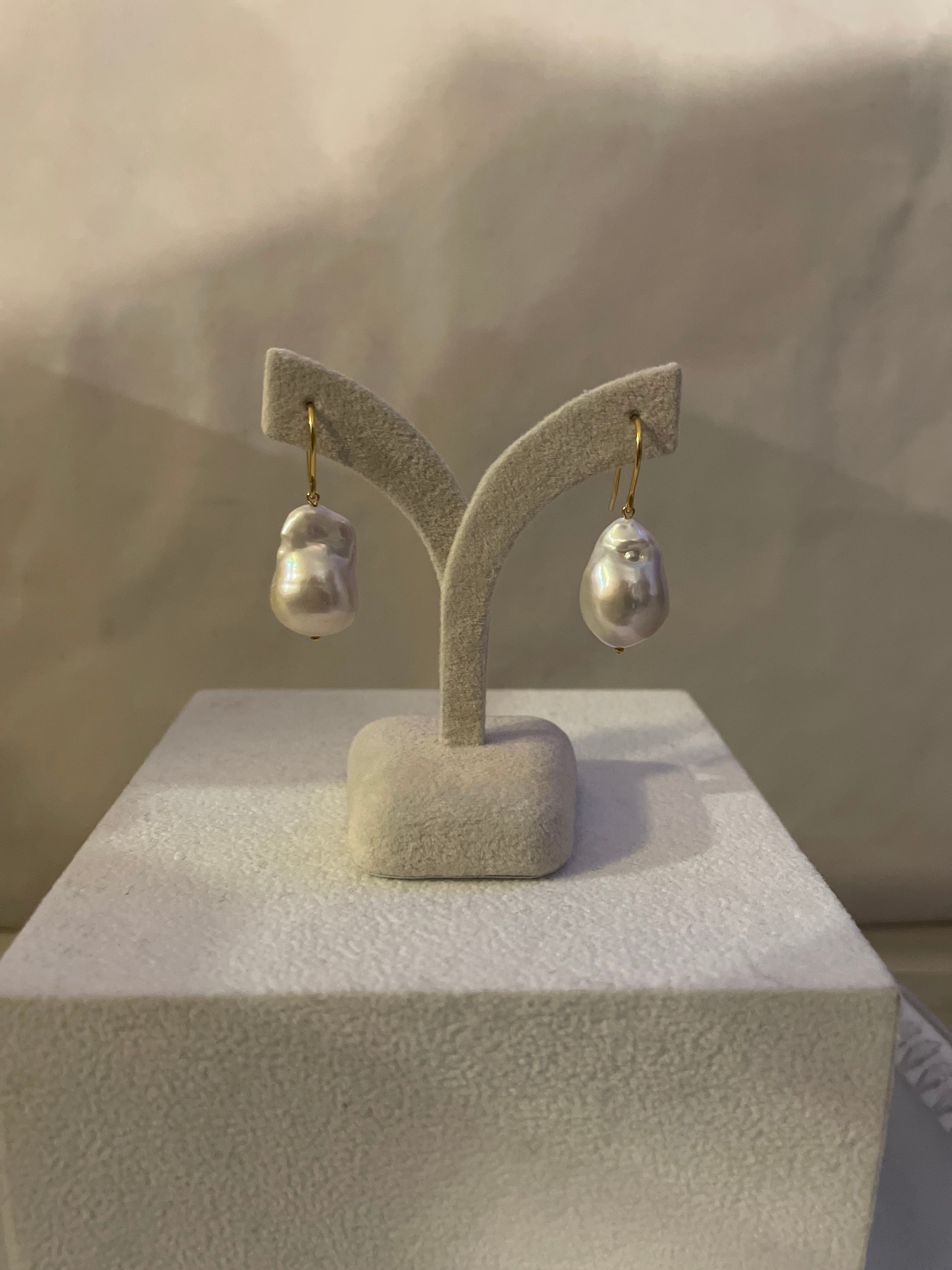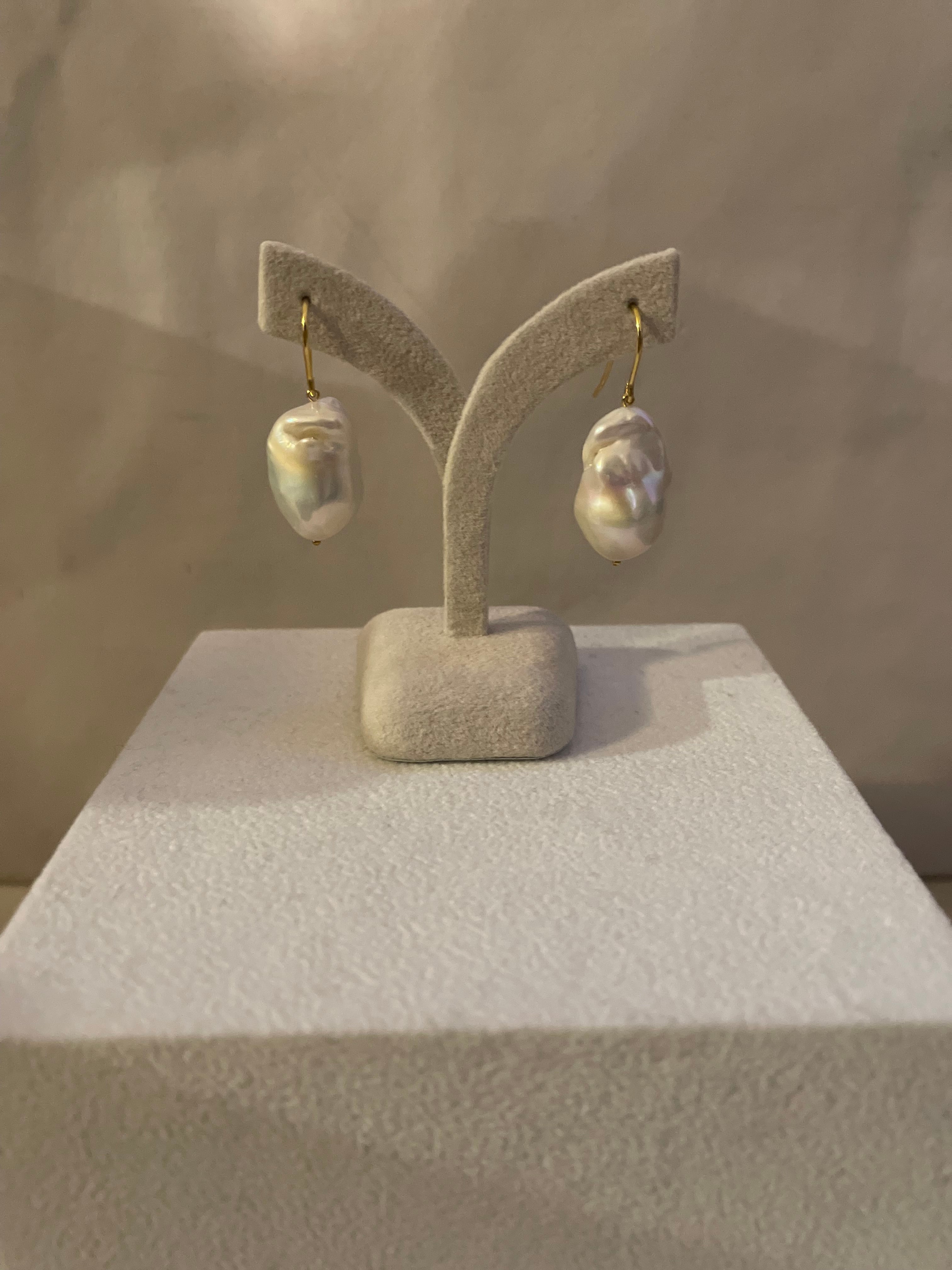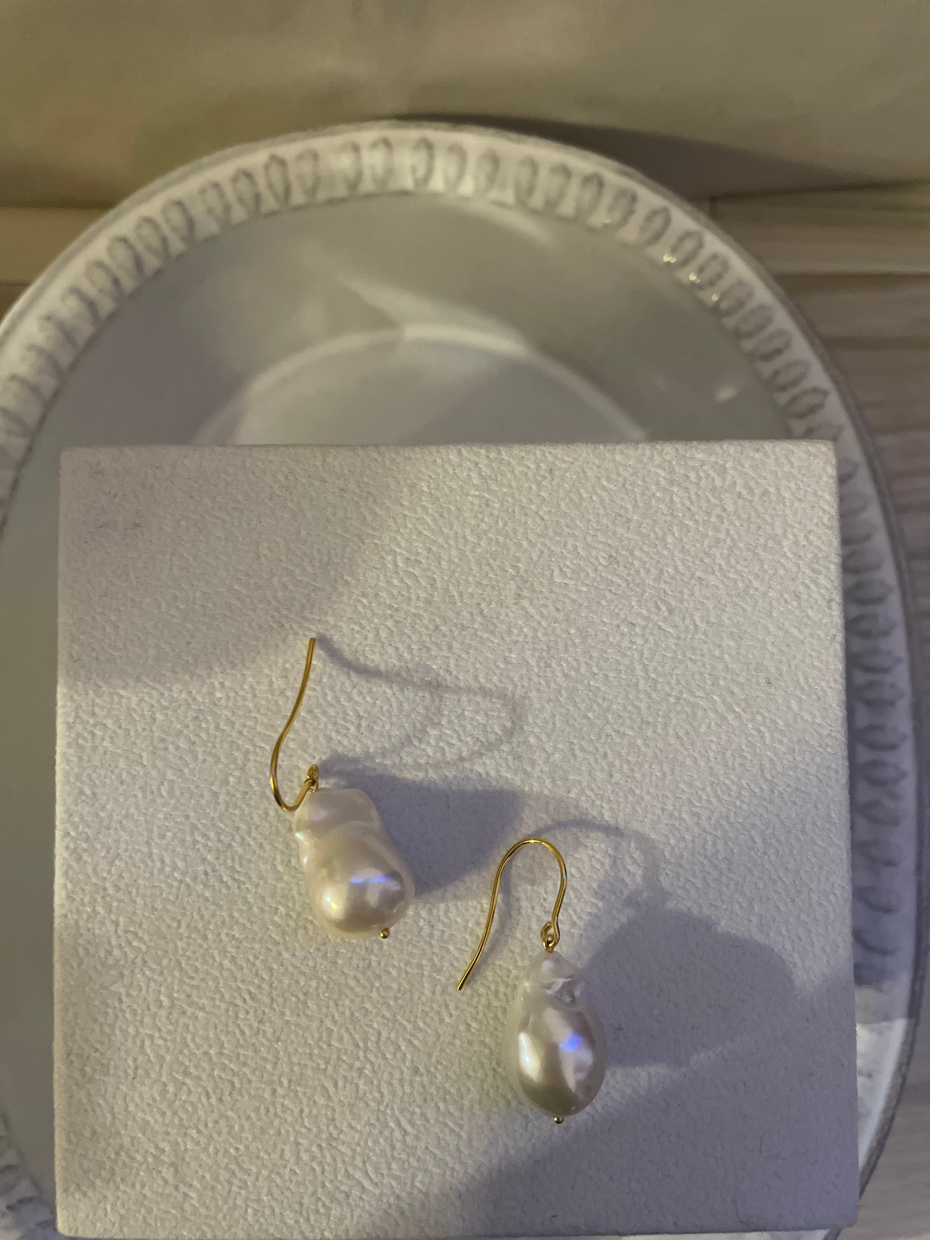 大粒の淡水オイスターバロックパールを揺れるピアスにしました。