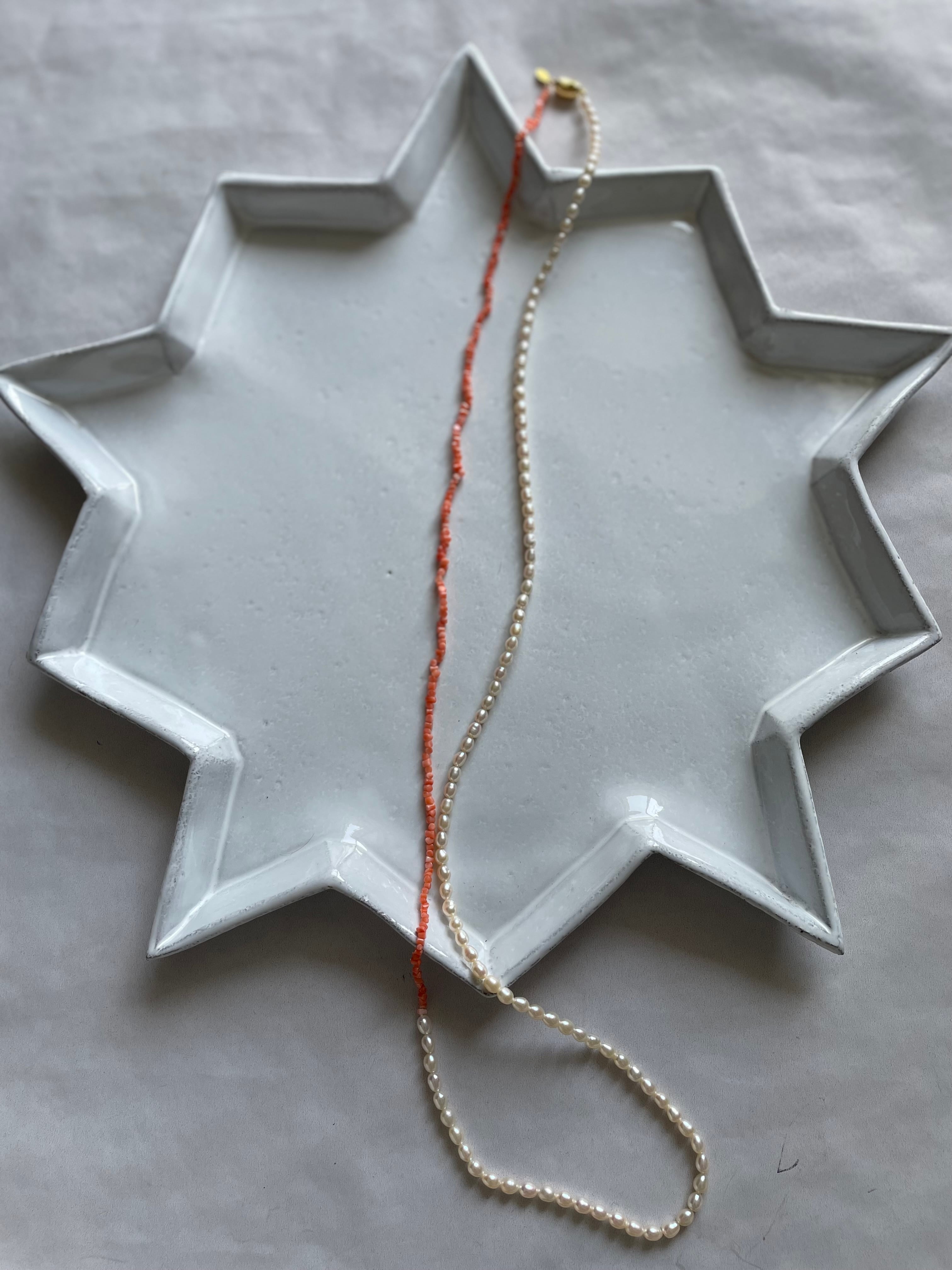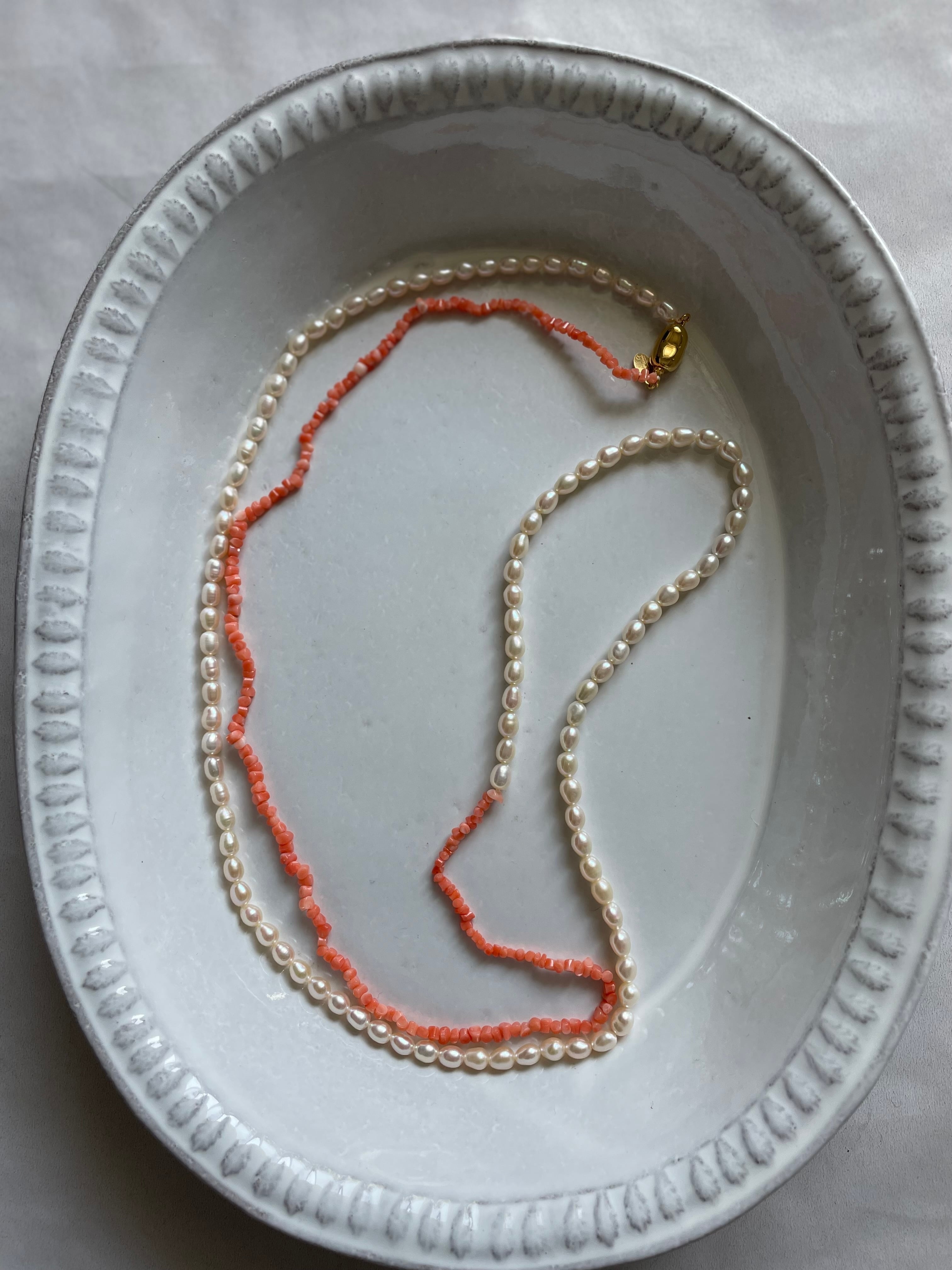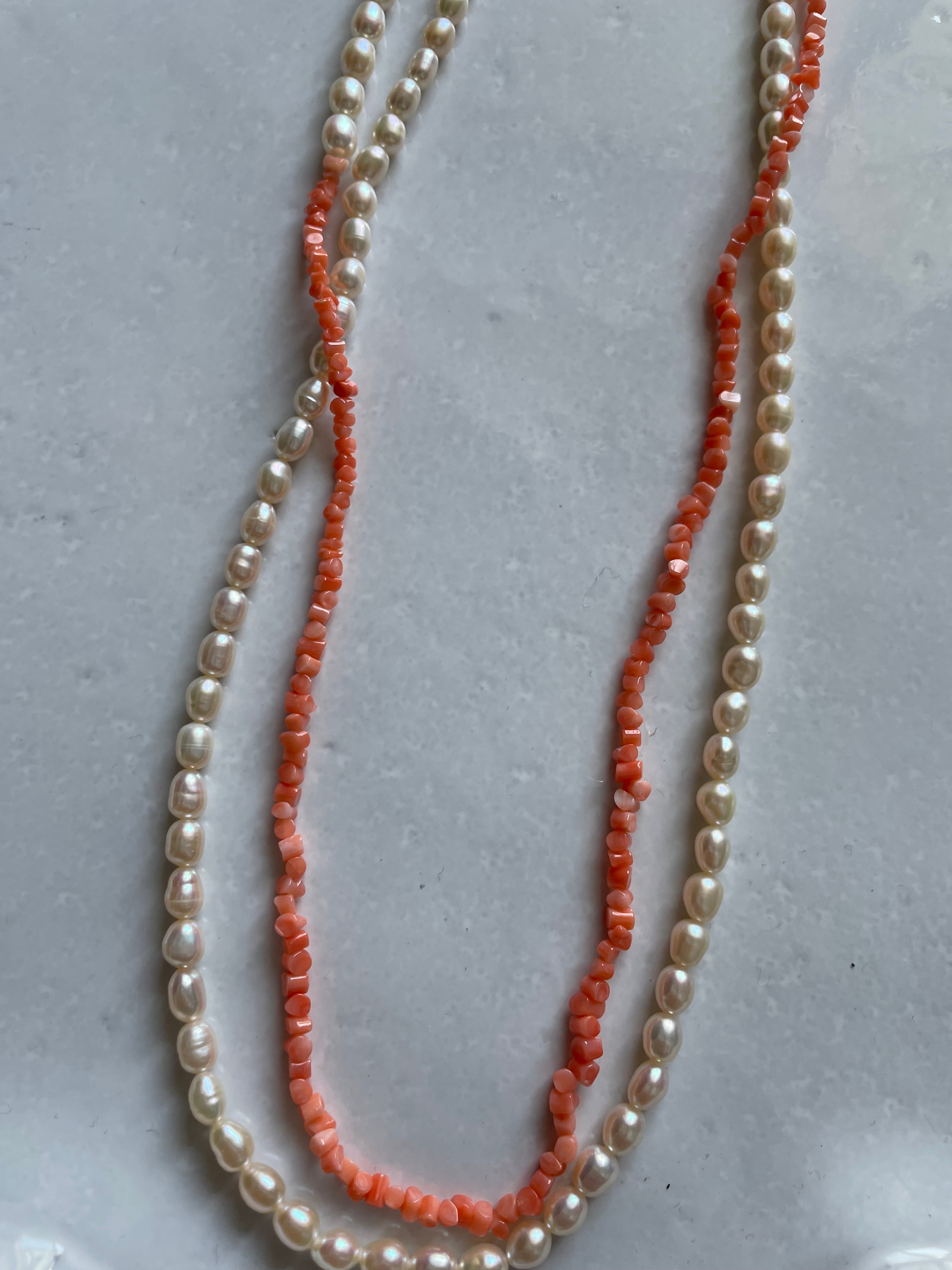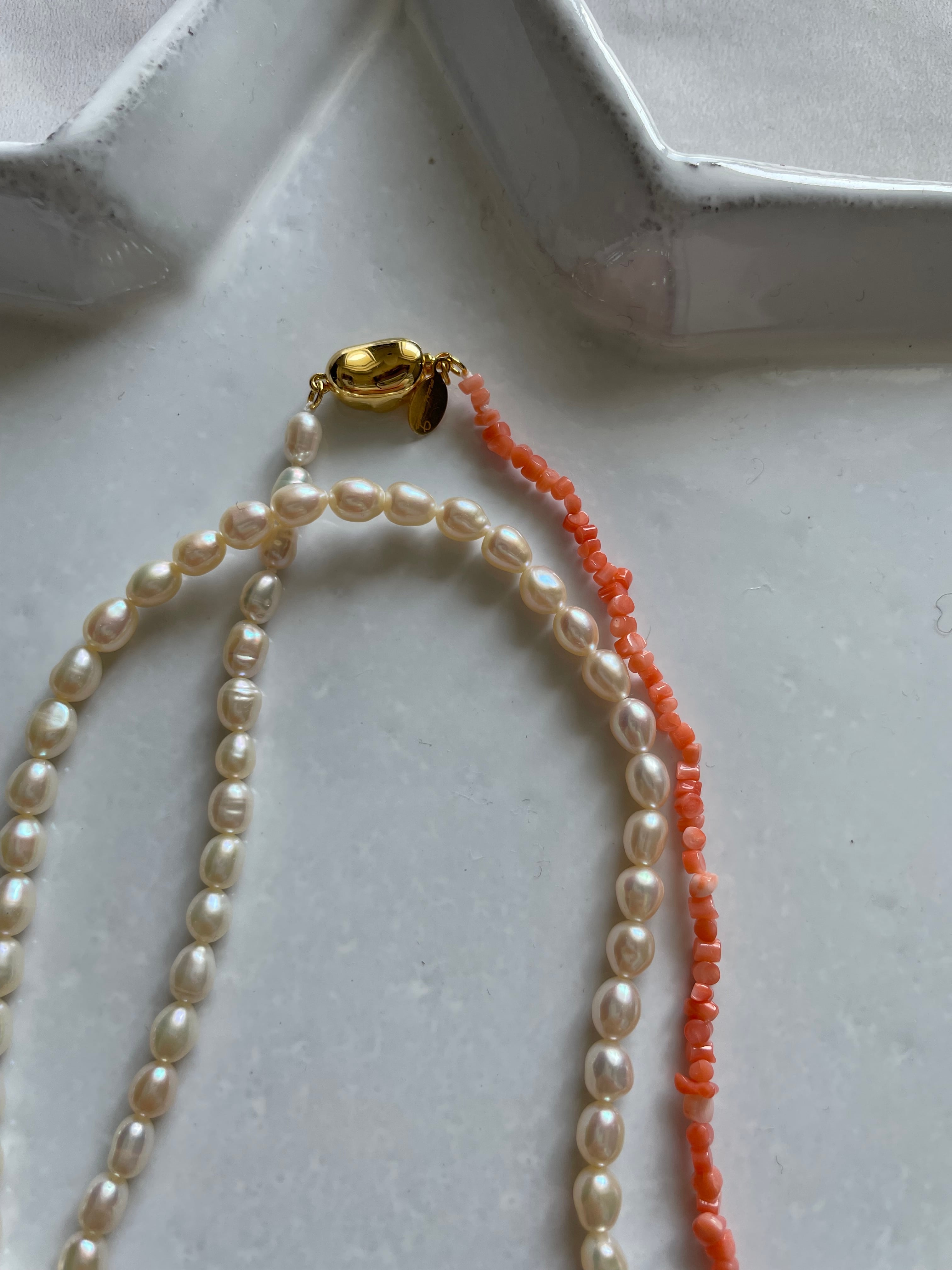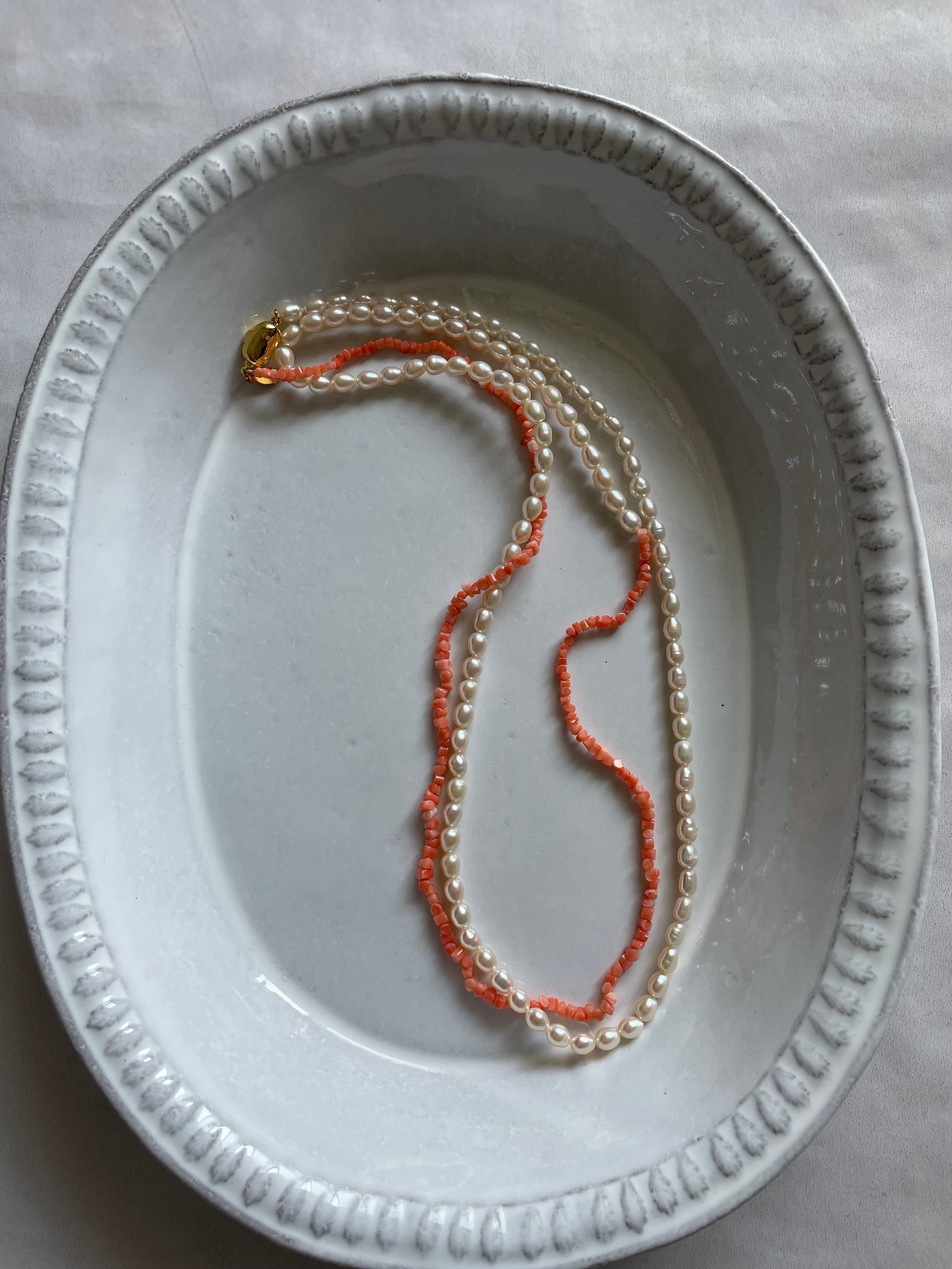 なかなか取れないと言われている希少でなんとも淡くて可愛いピンクの珊瑚とpearlがとても相性よく、