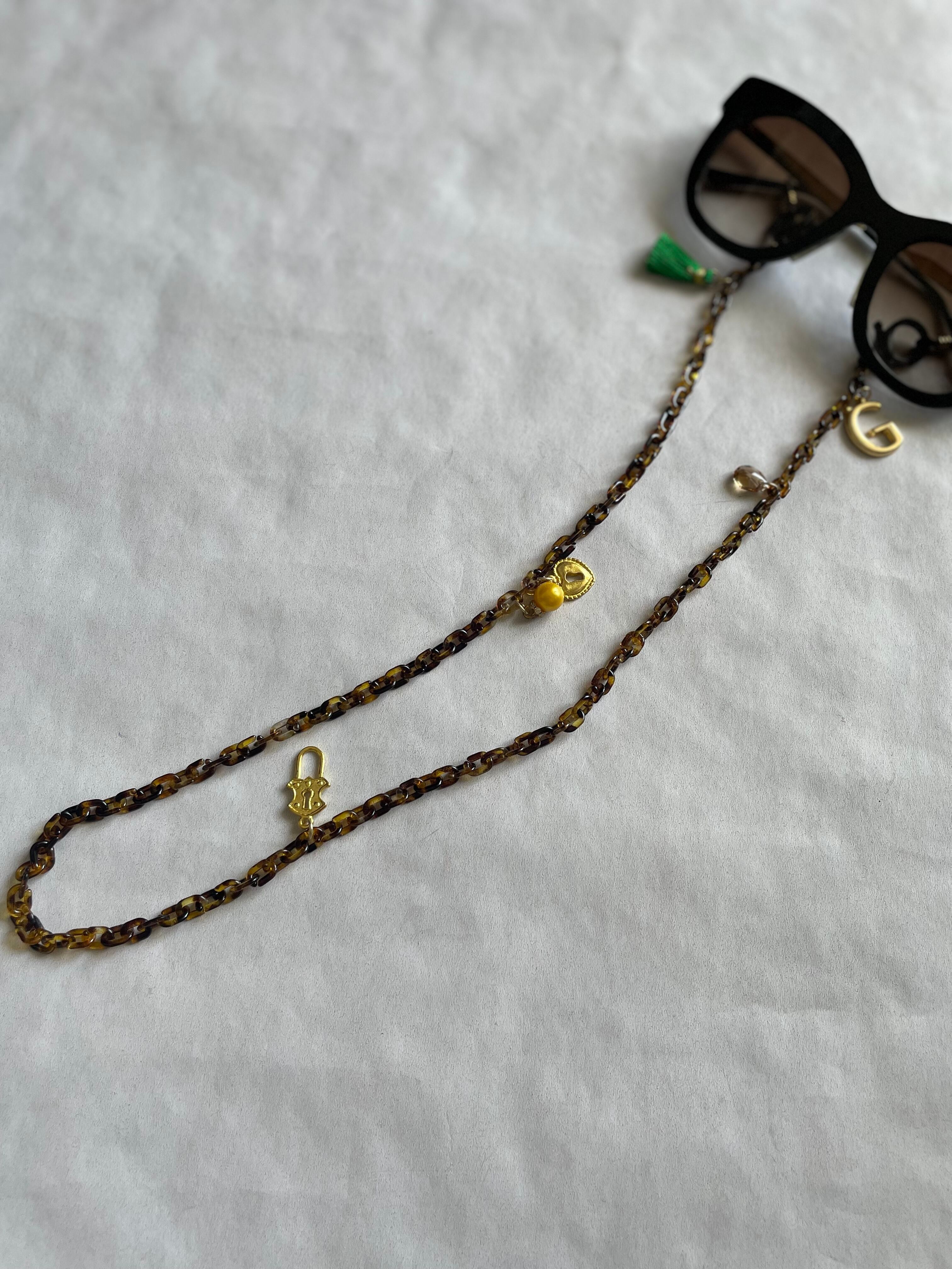 とても軽いアクリルチェーンにタッセルやチャームを付けて、大人の遊び心あるメガネチェーンです。