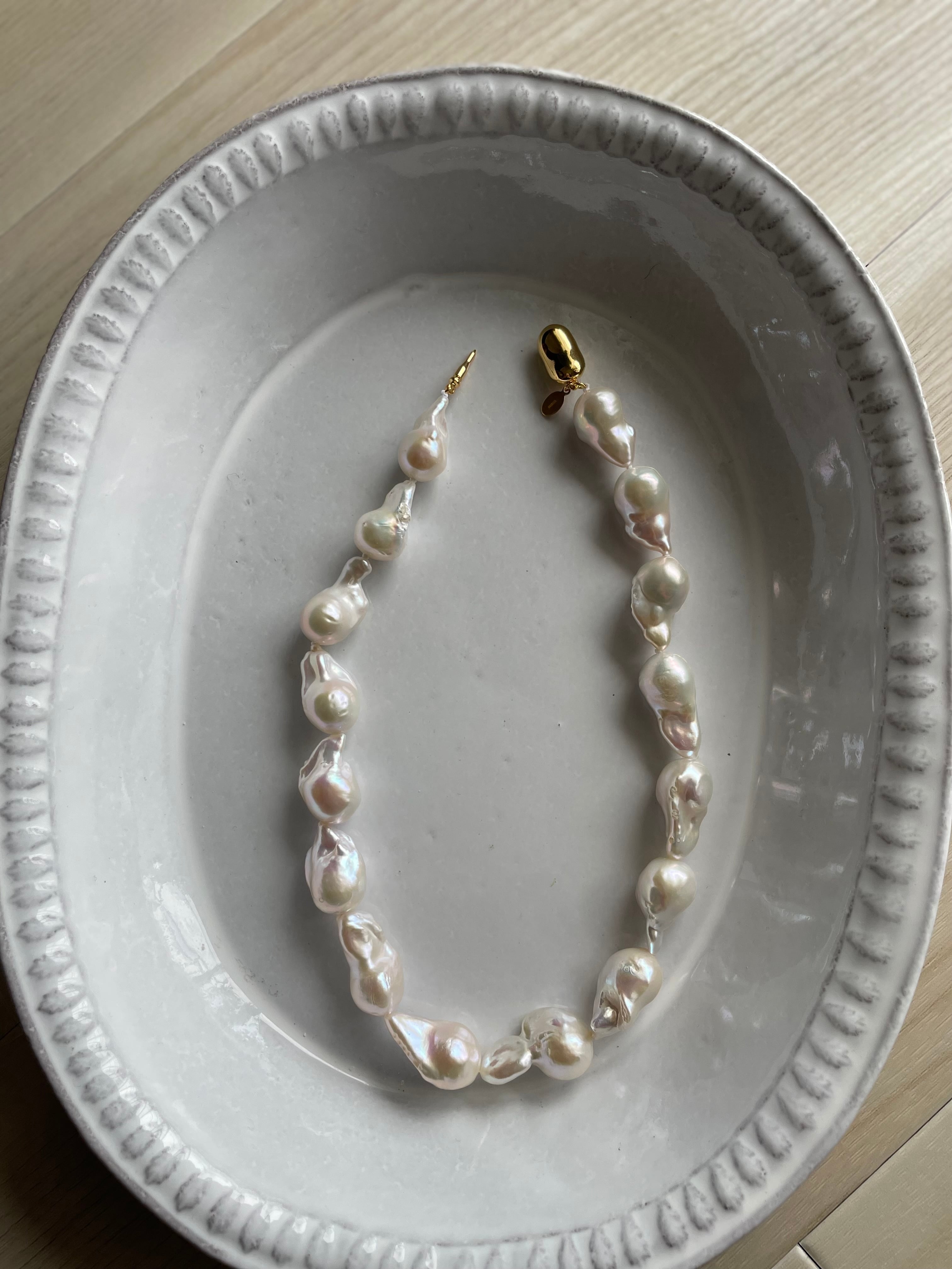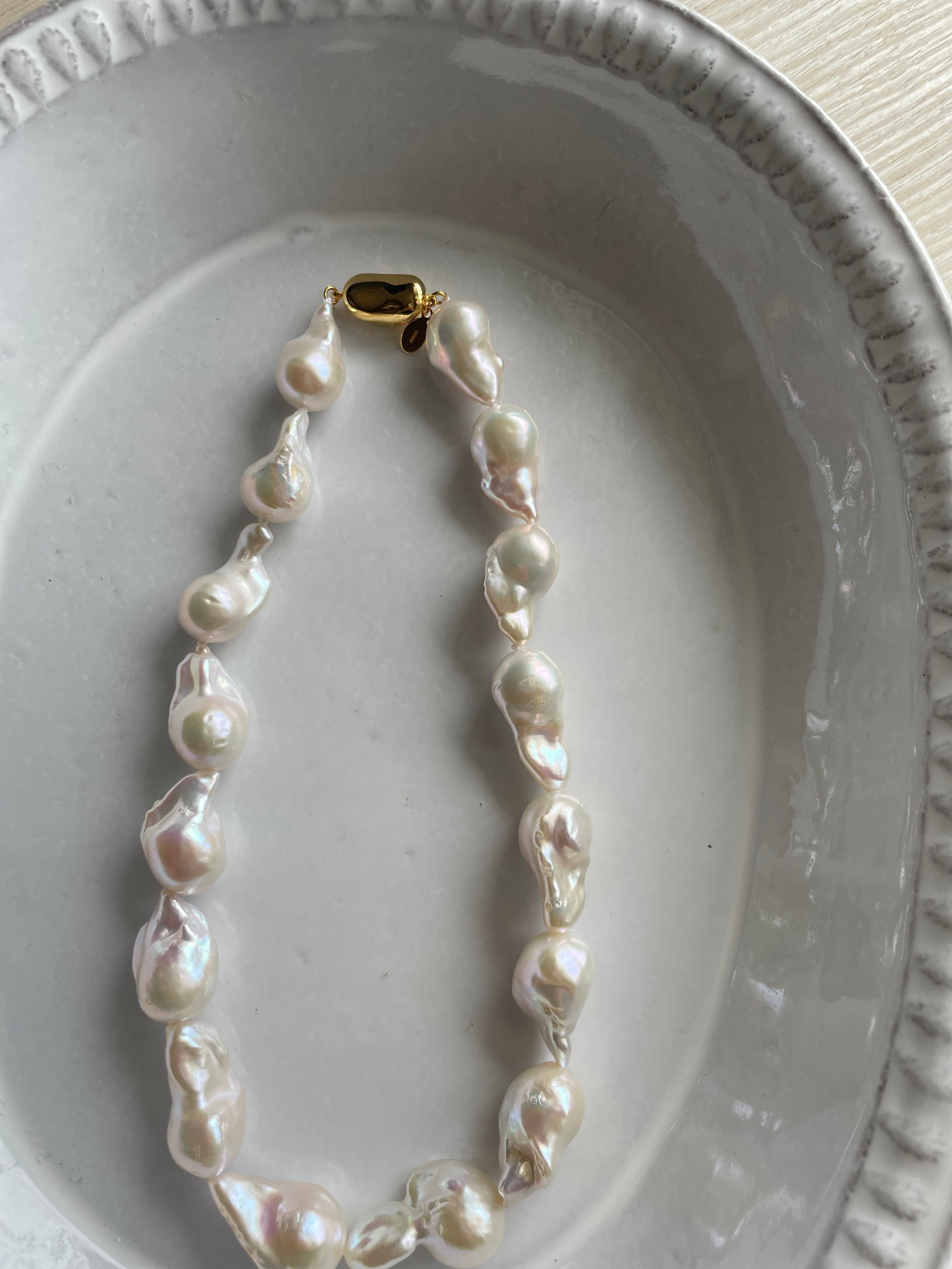 とても美しい大きさもとても程よいオイスター型の艶々のバロックパールのネックレスが久々に入荷しました!