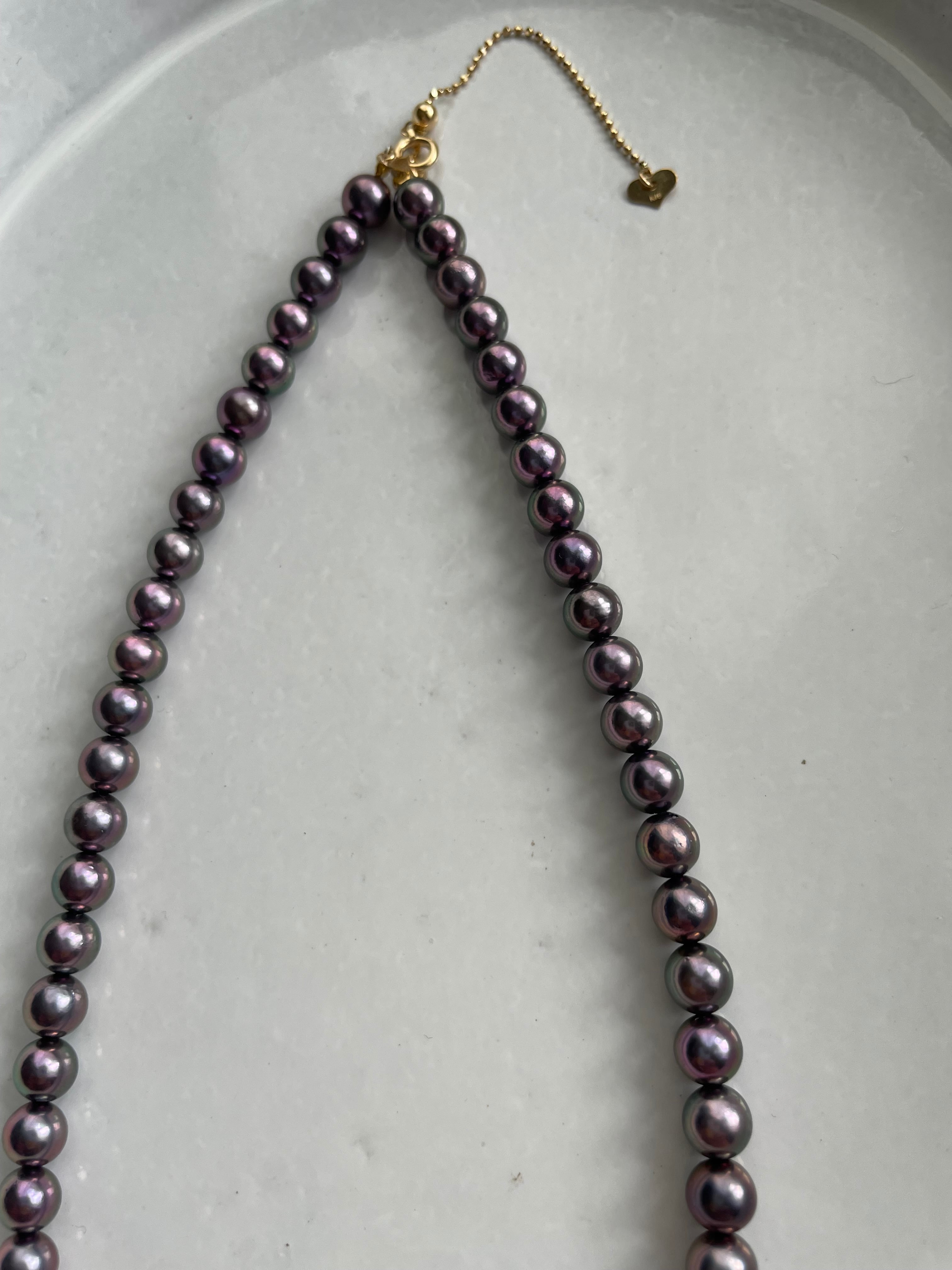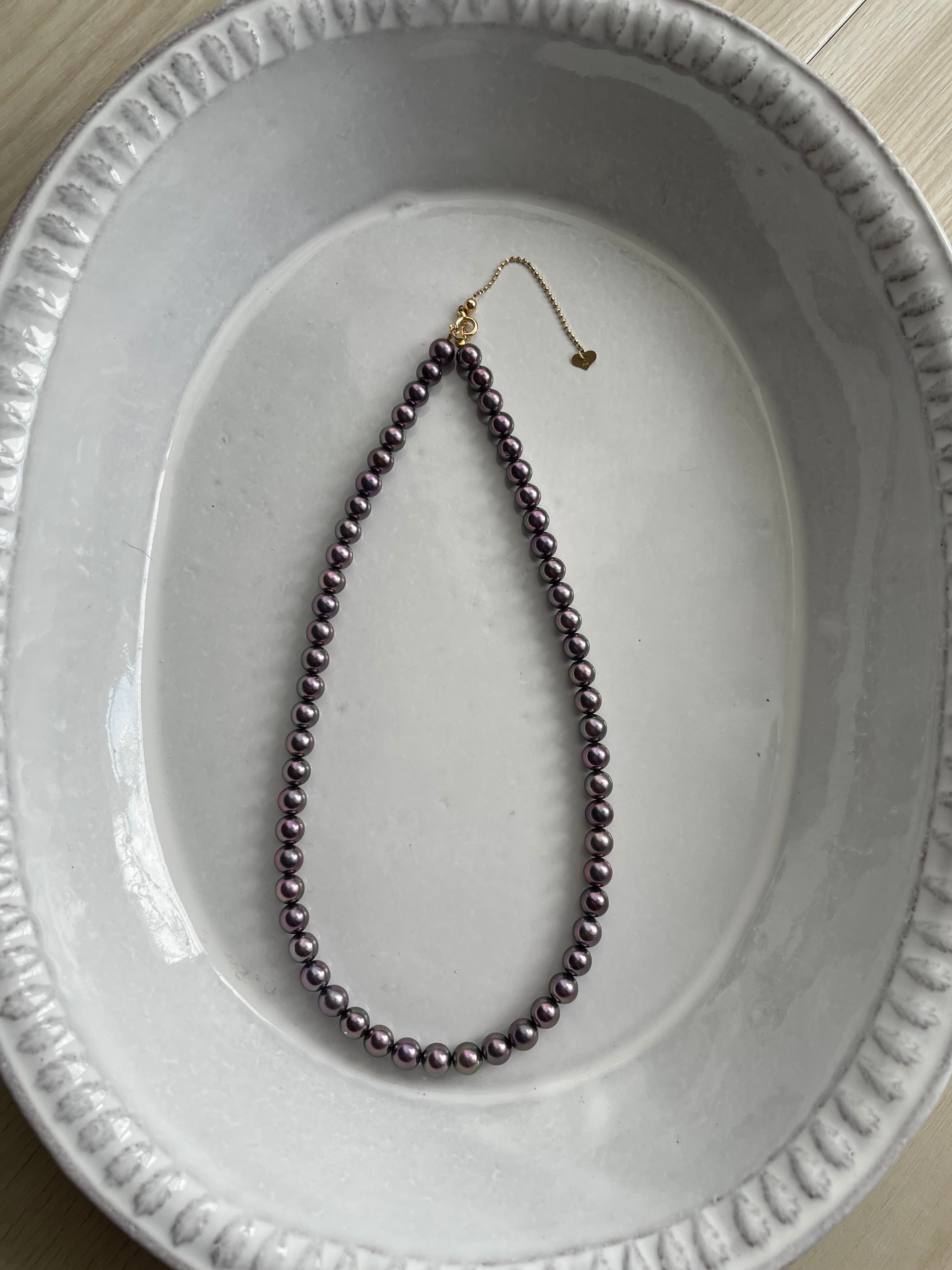 マルチに輝くパープルの美しいcolorの入手困難なアコヤパールをシンプルなネックレスにしました。