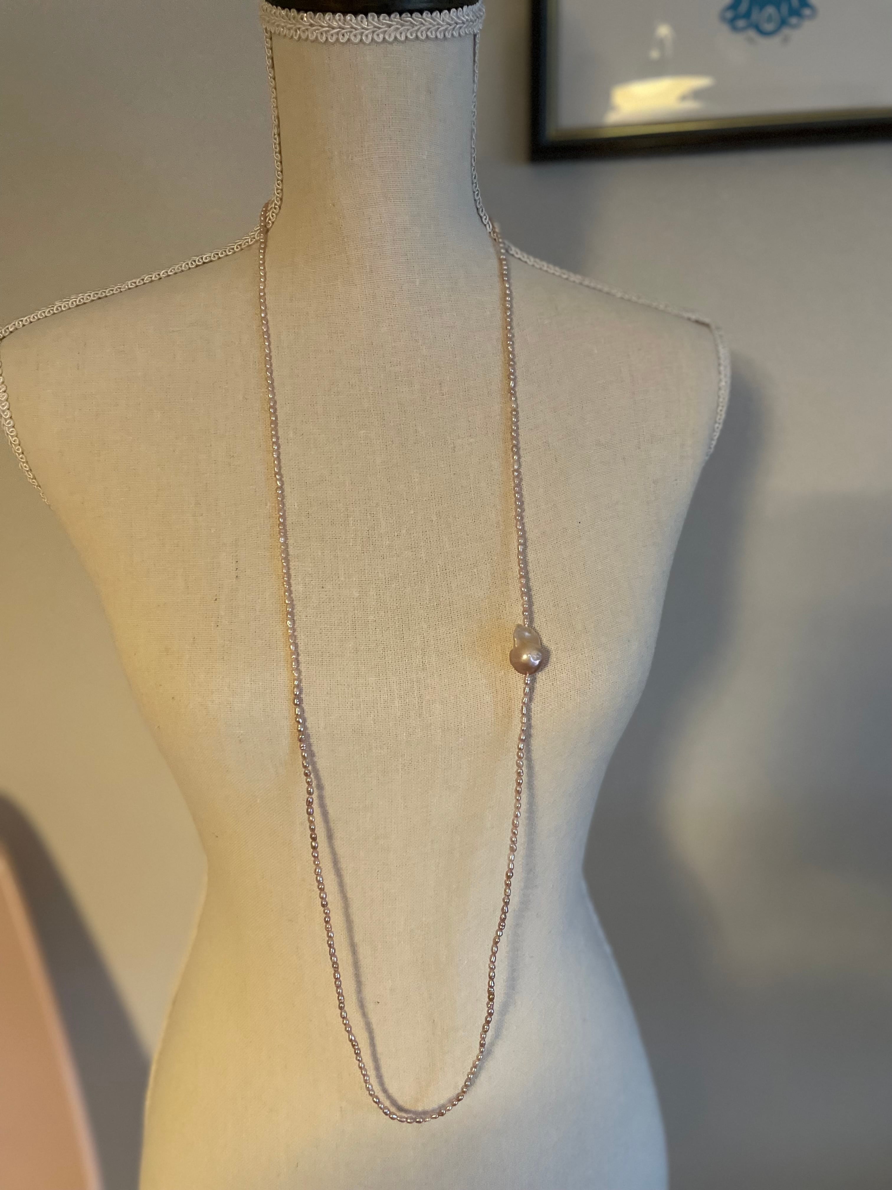 天然の美しいpinkcolorのオイスターバロックパールをおつけしたロングパールネックレスです。