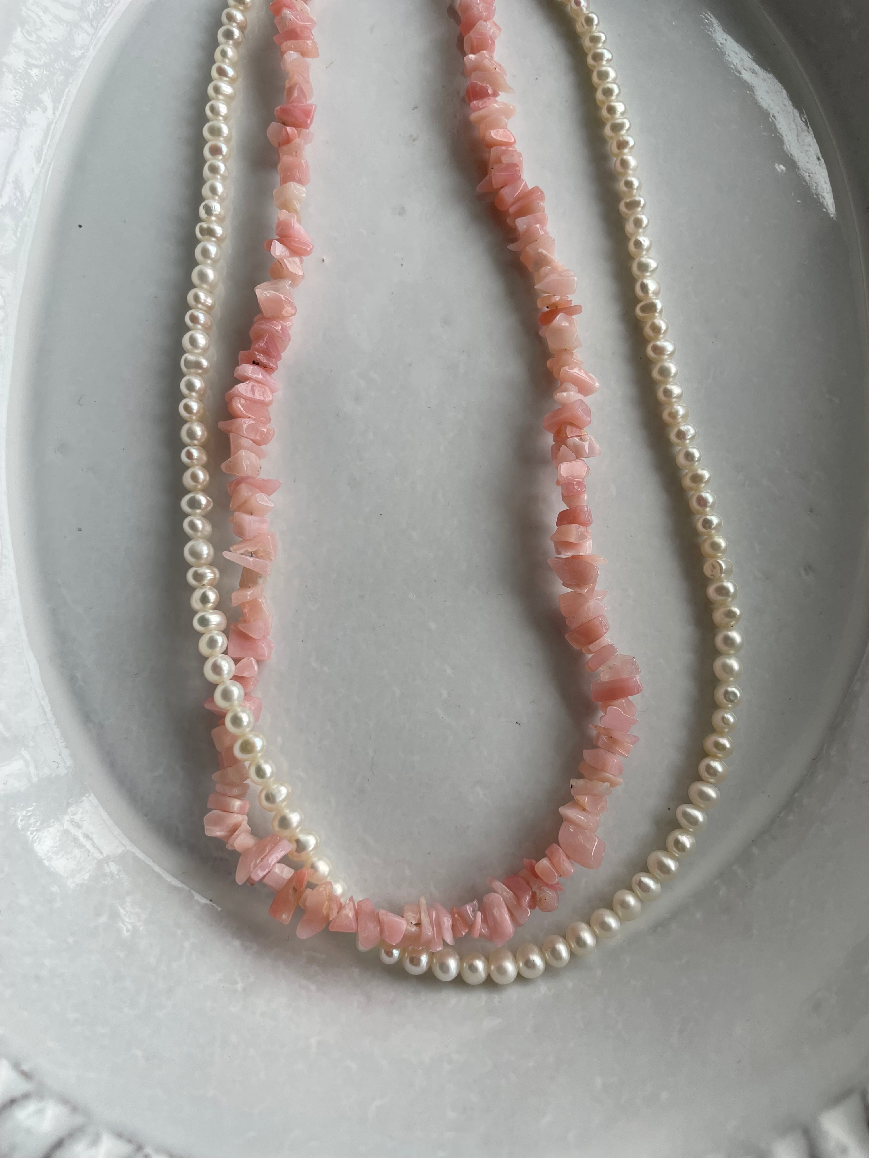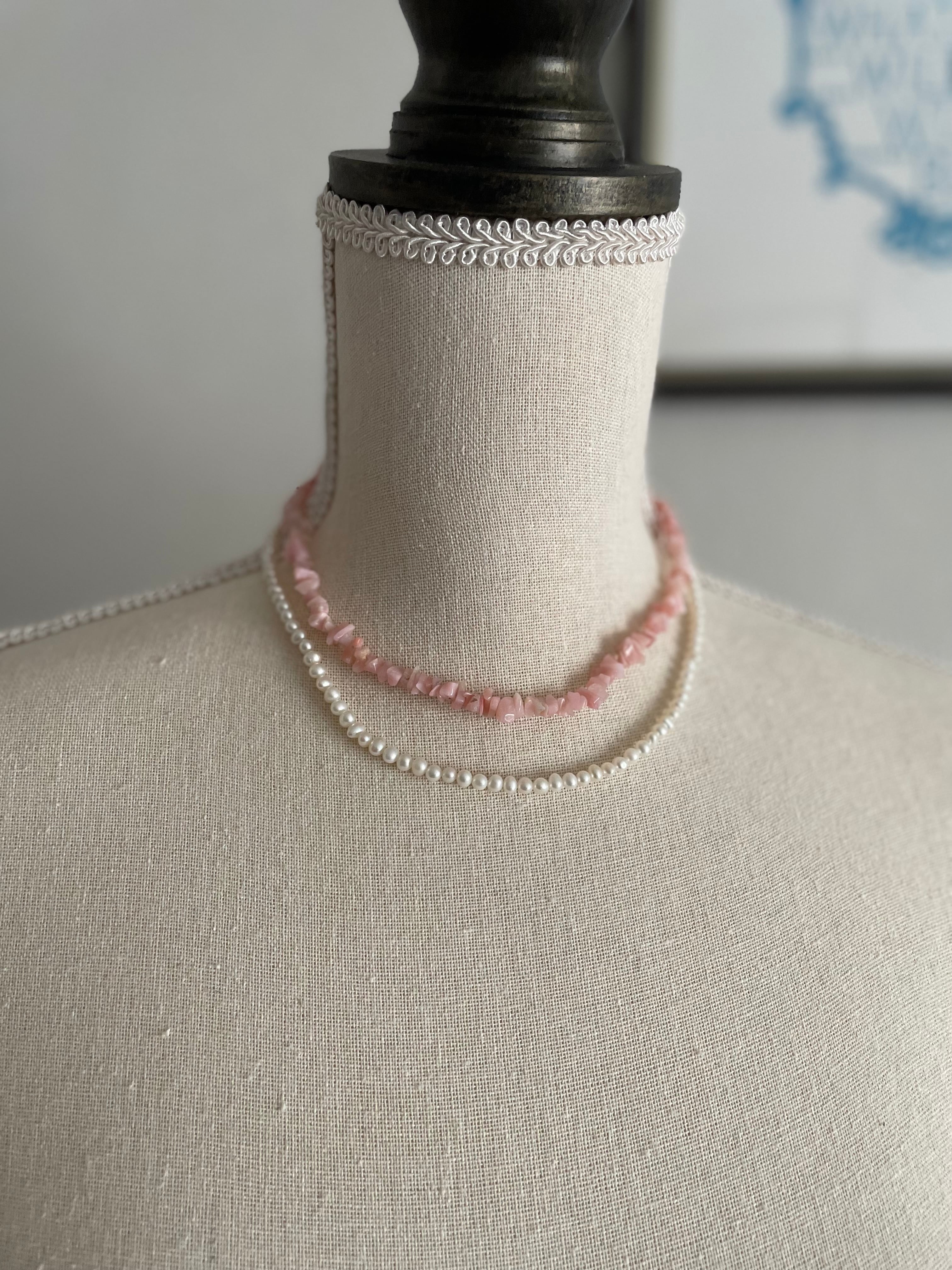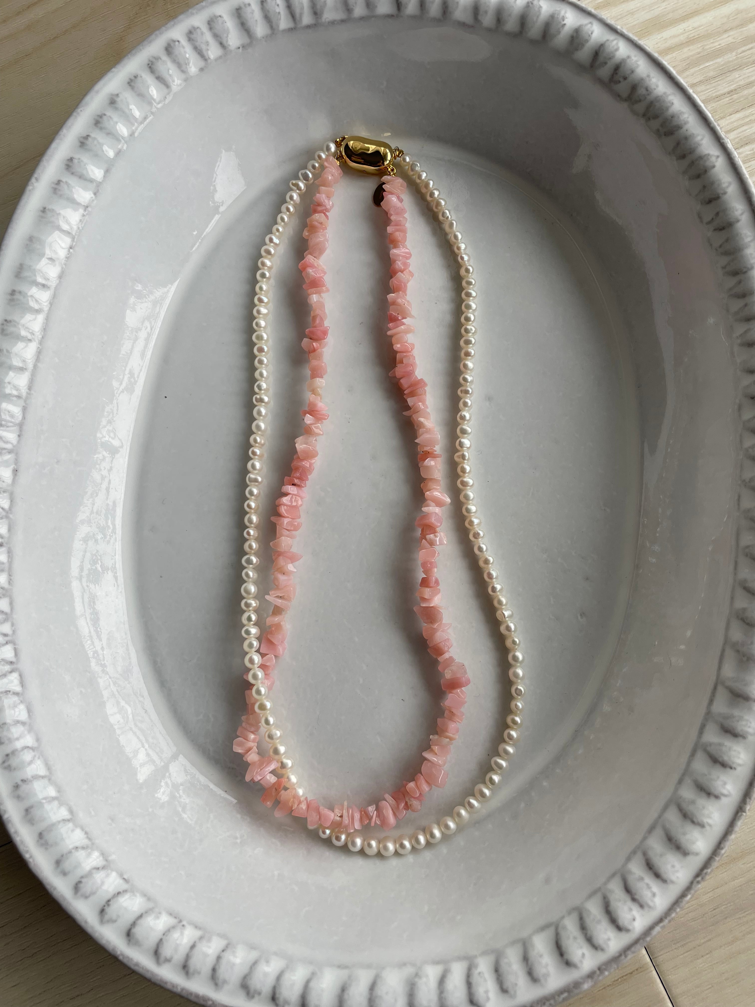 今回はとても珍しいpinkオパールで可憐なbabyパールとの色合わせで優しい雰囲気でお作りした2連のnecklaceです。