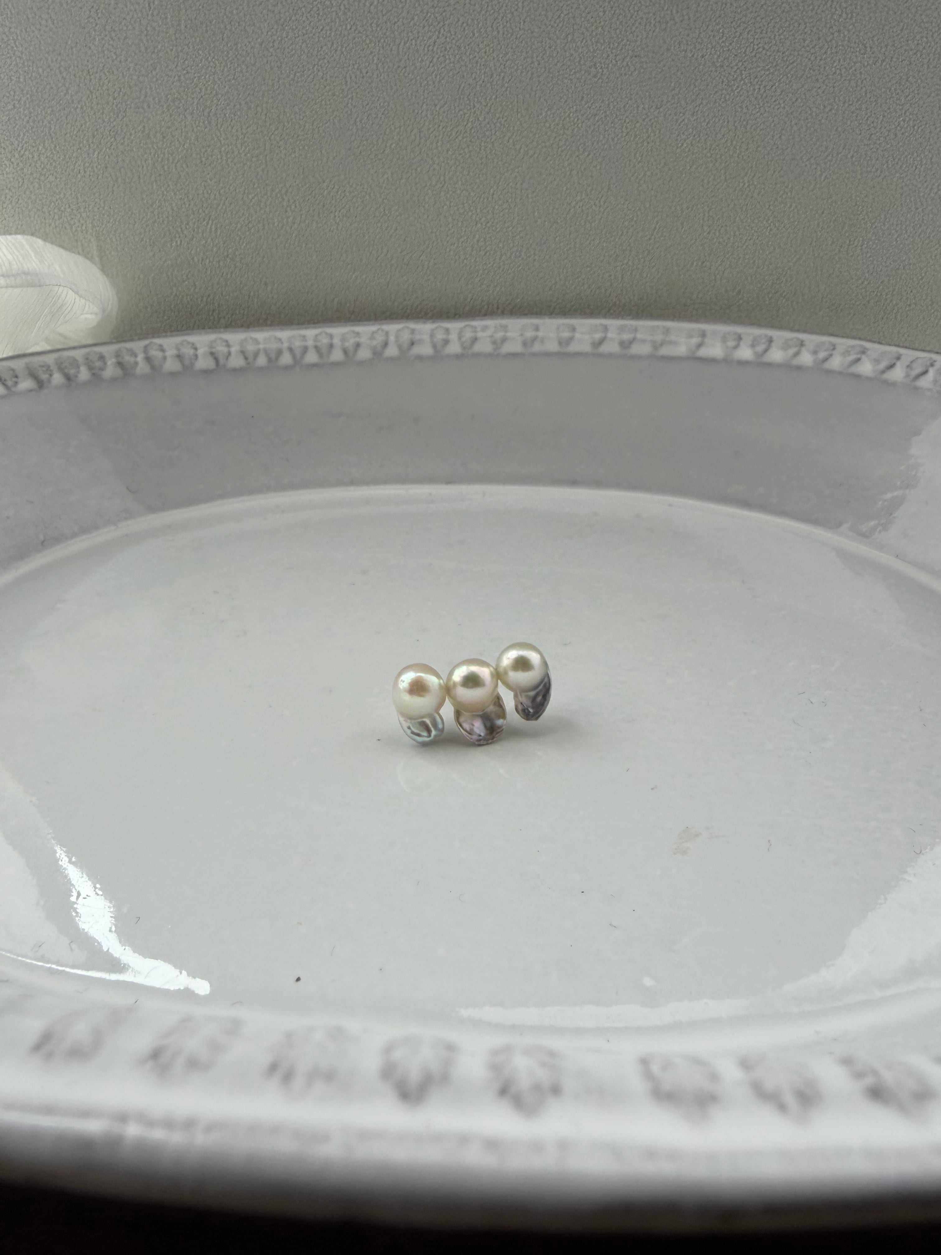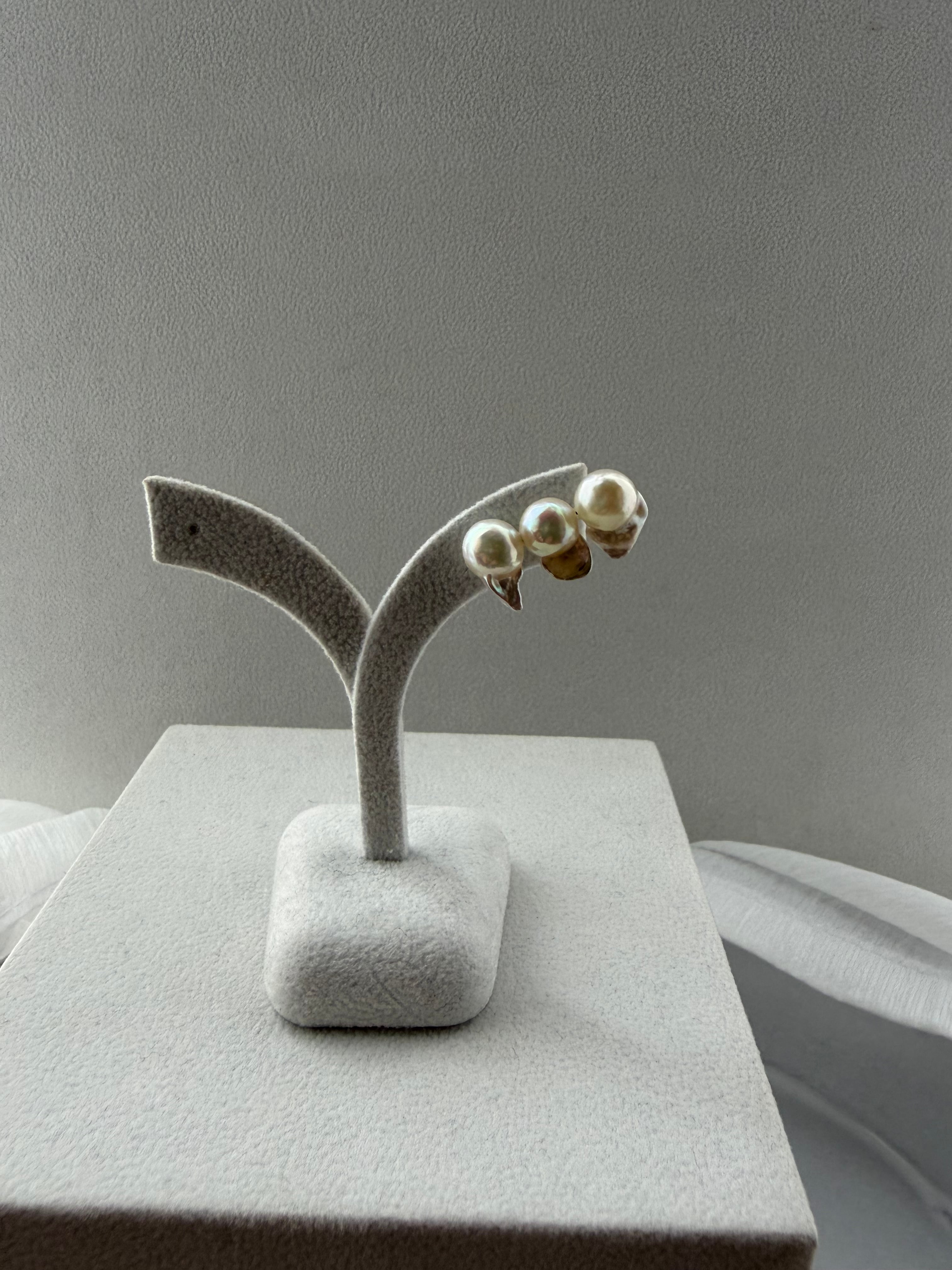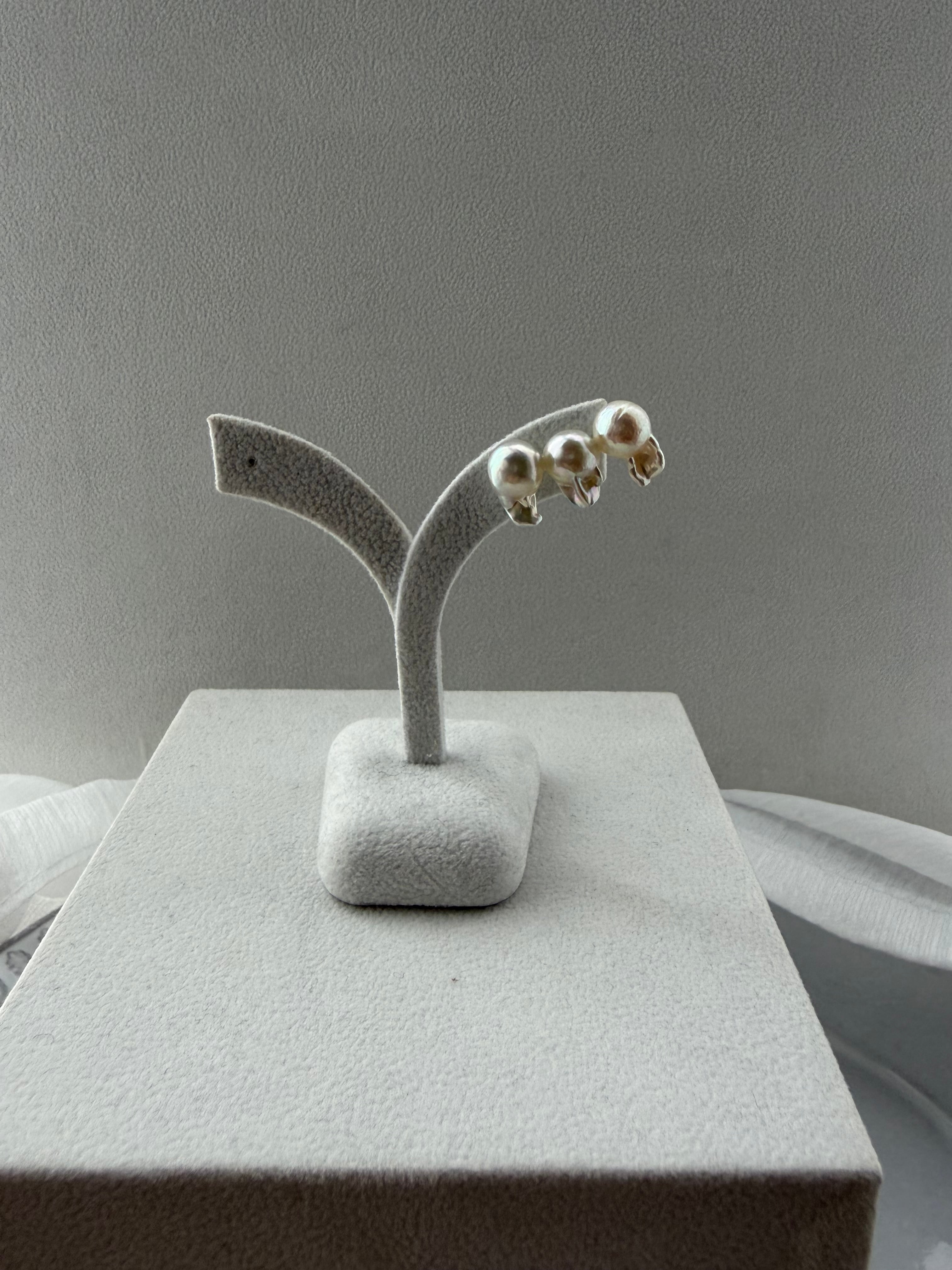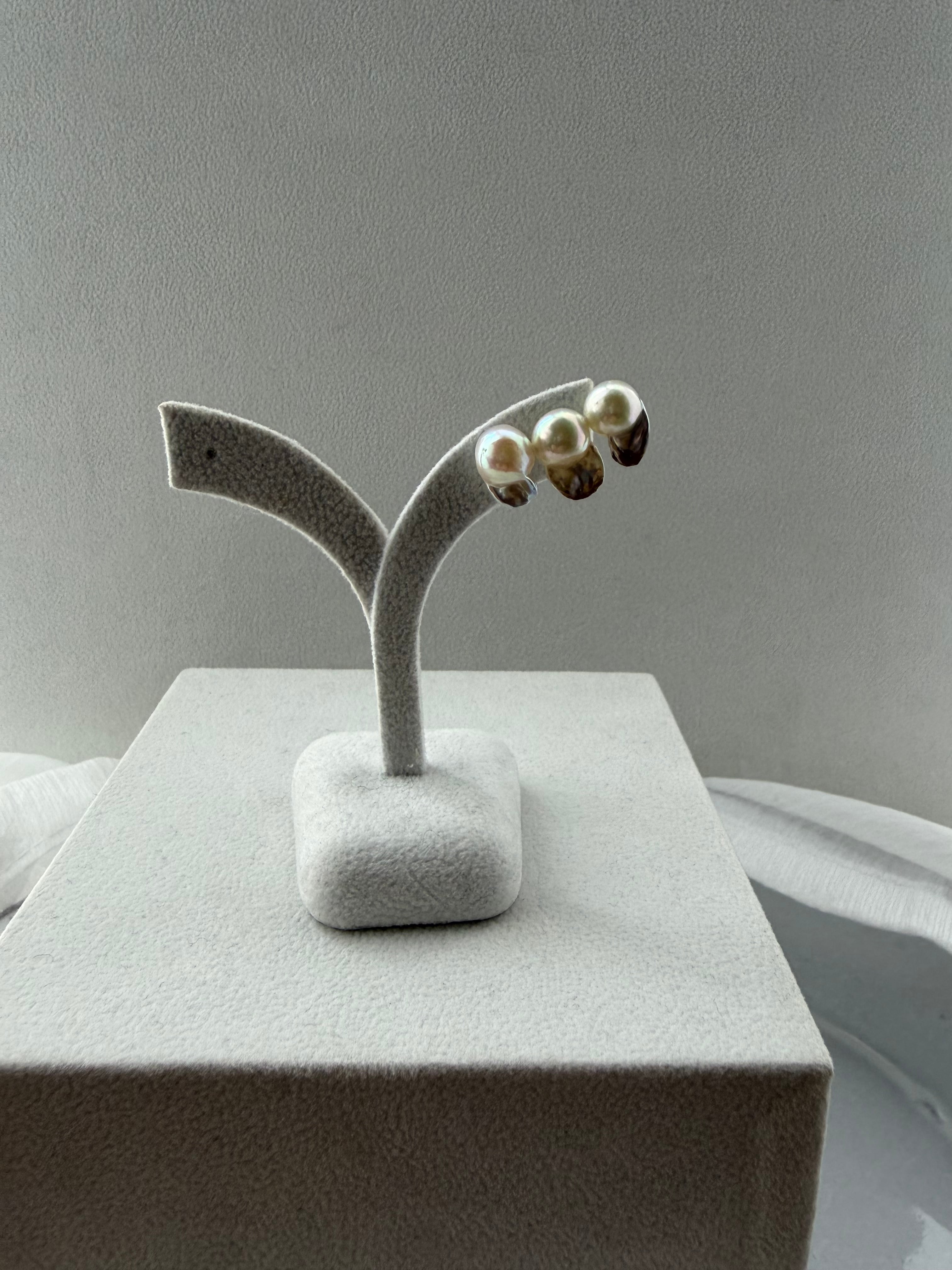 希少なアコヤ真珠のバロックパールを3つ連ねた、シングル(片耳)ピアスです。