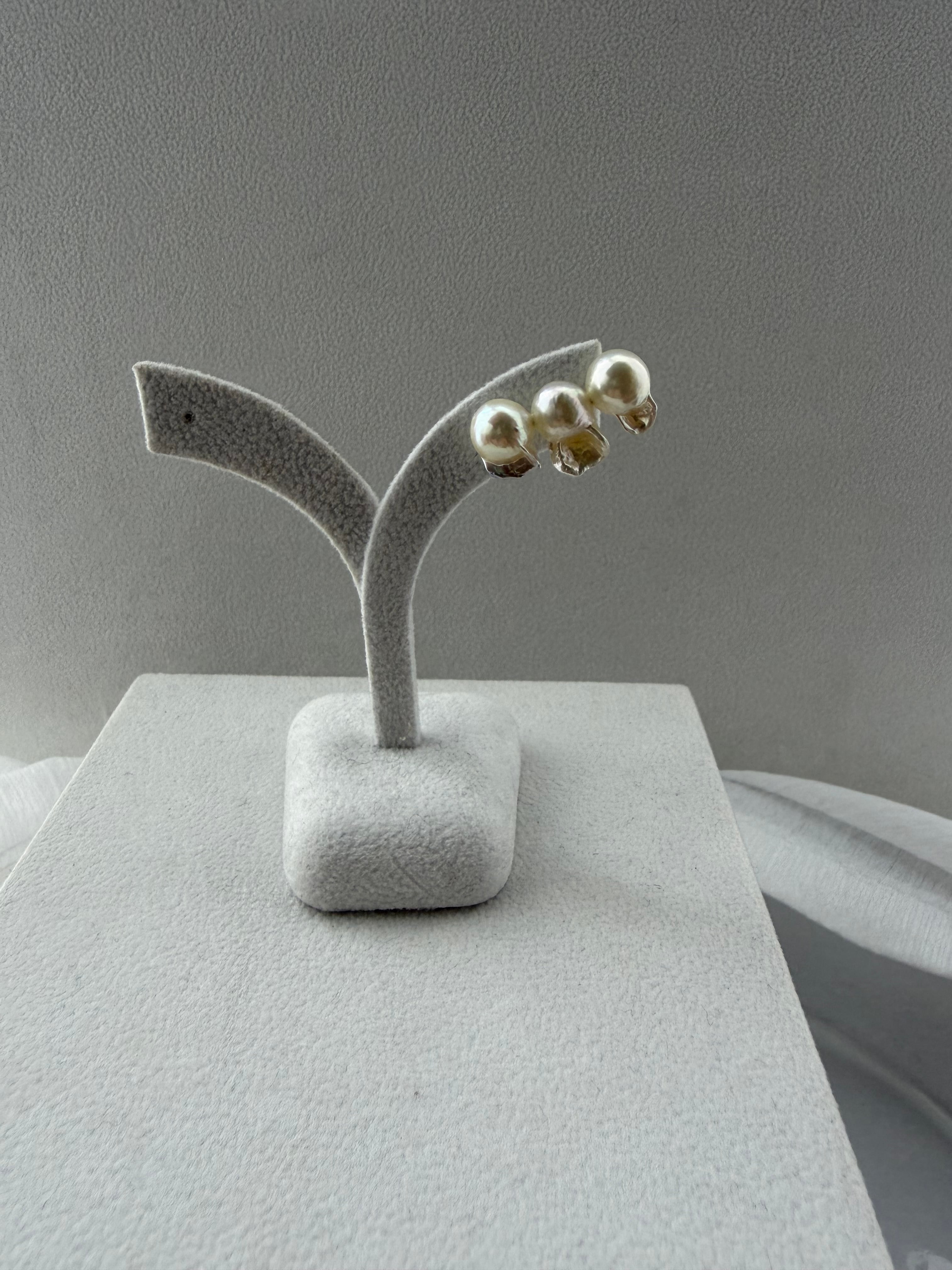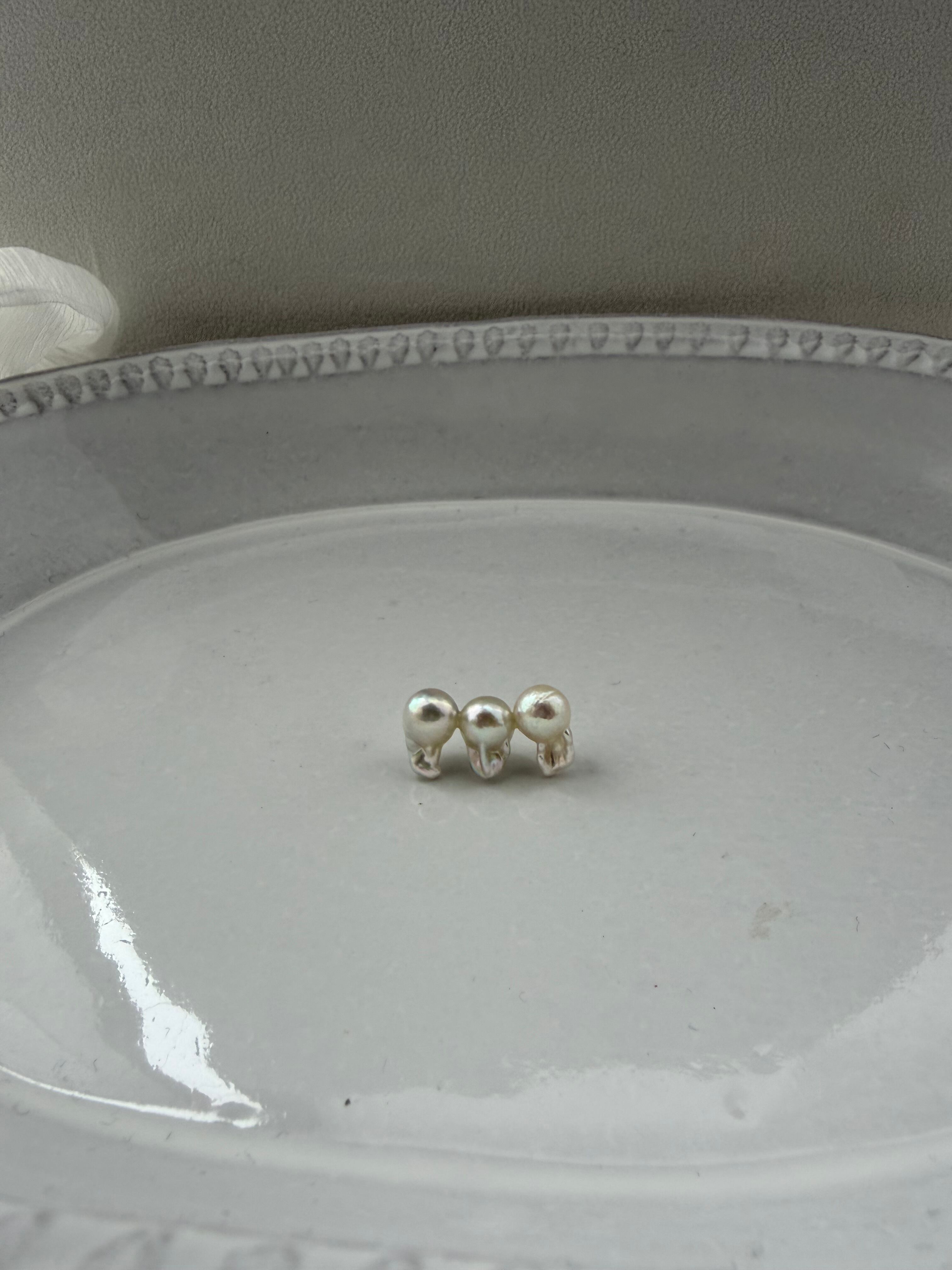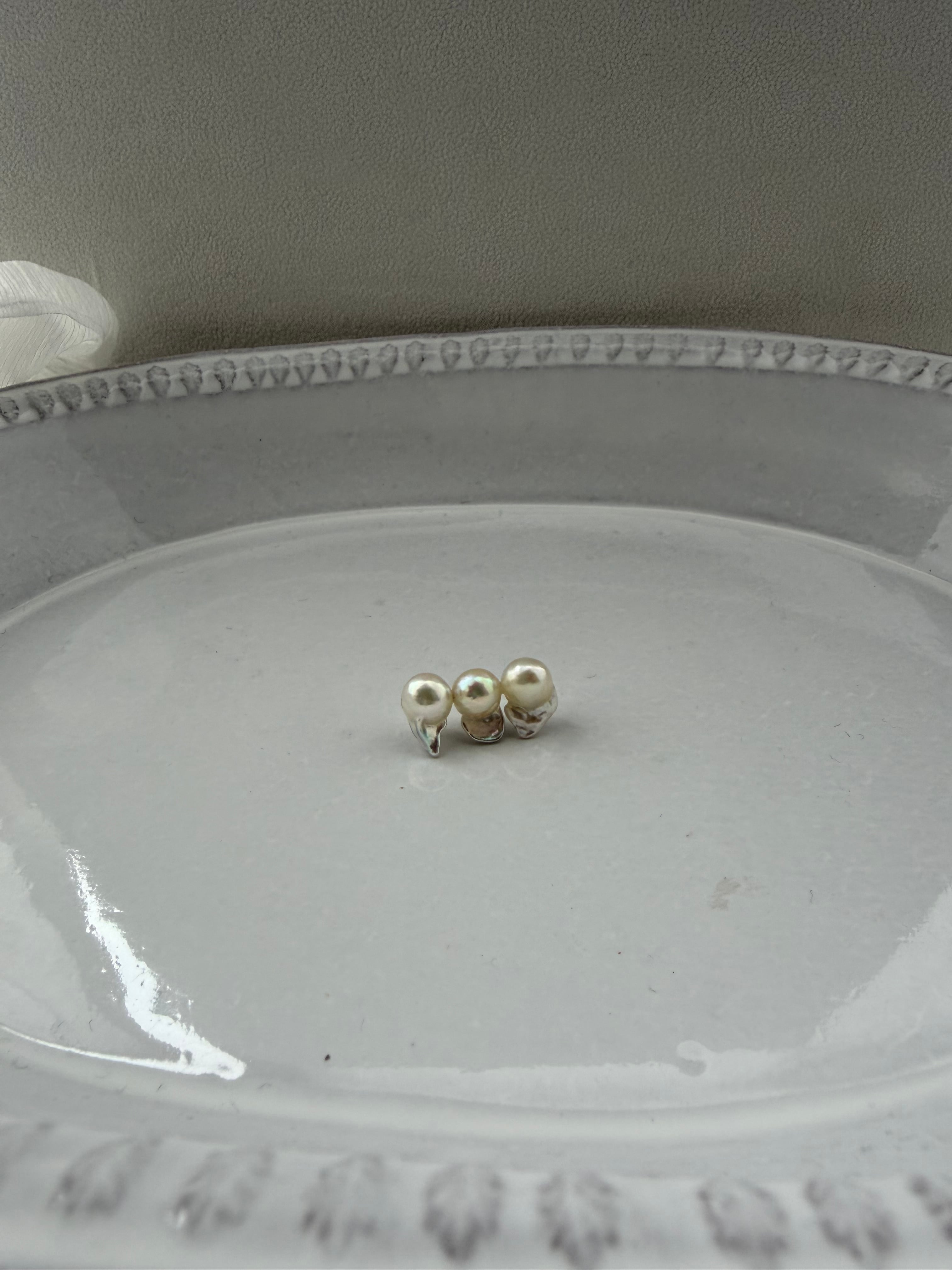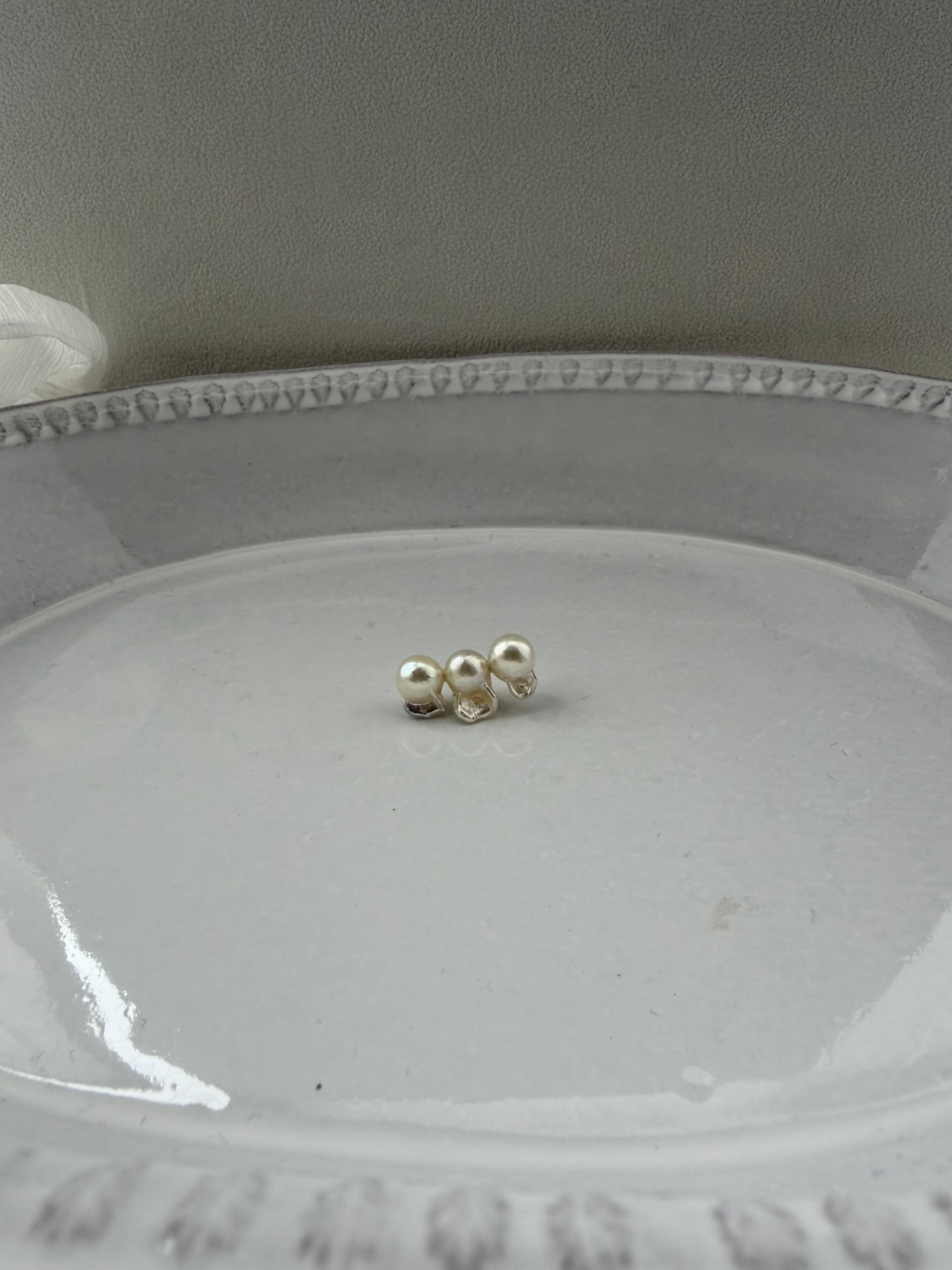 希少なアコヤ真珠のバロックパールを3つ連ねた、シングル(片耳)ピアスです。