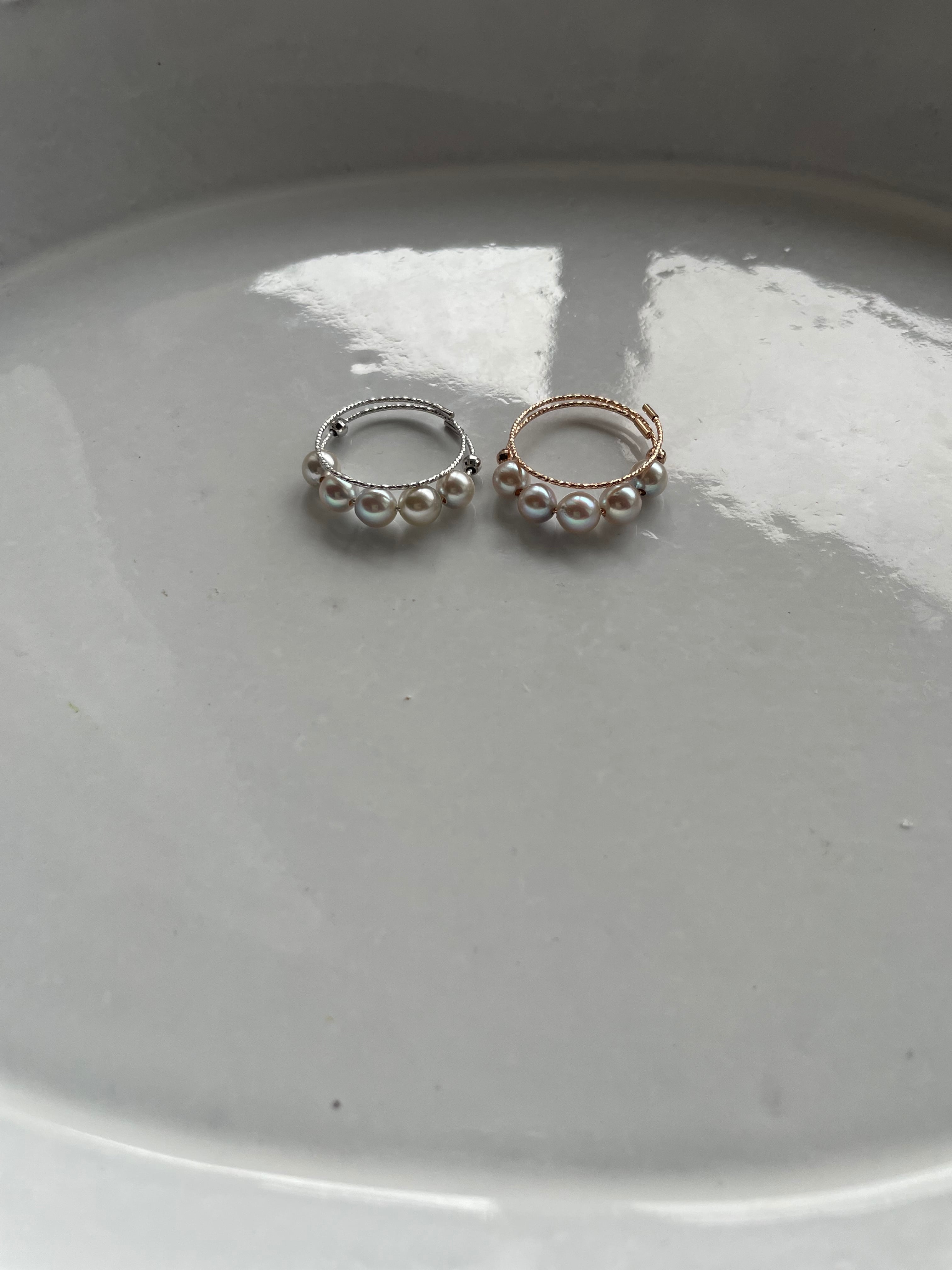 美しいbabysizeのアコヤパールを5個繋げたフリーサイズのリングです。
