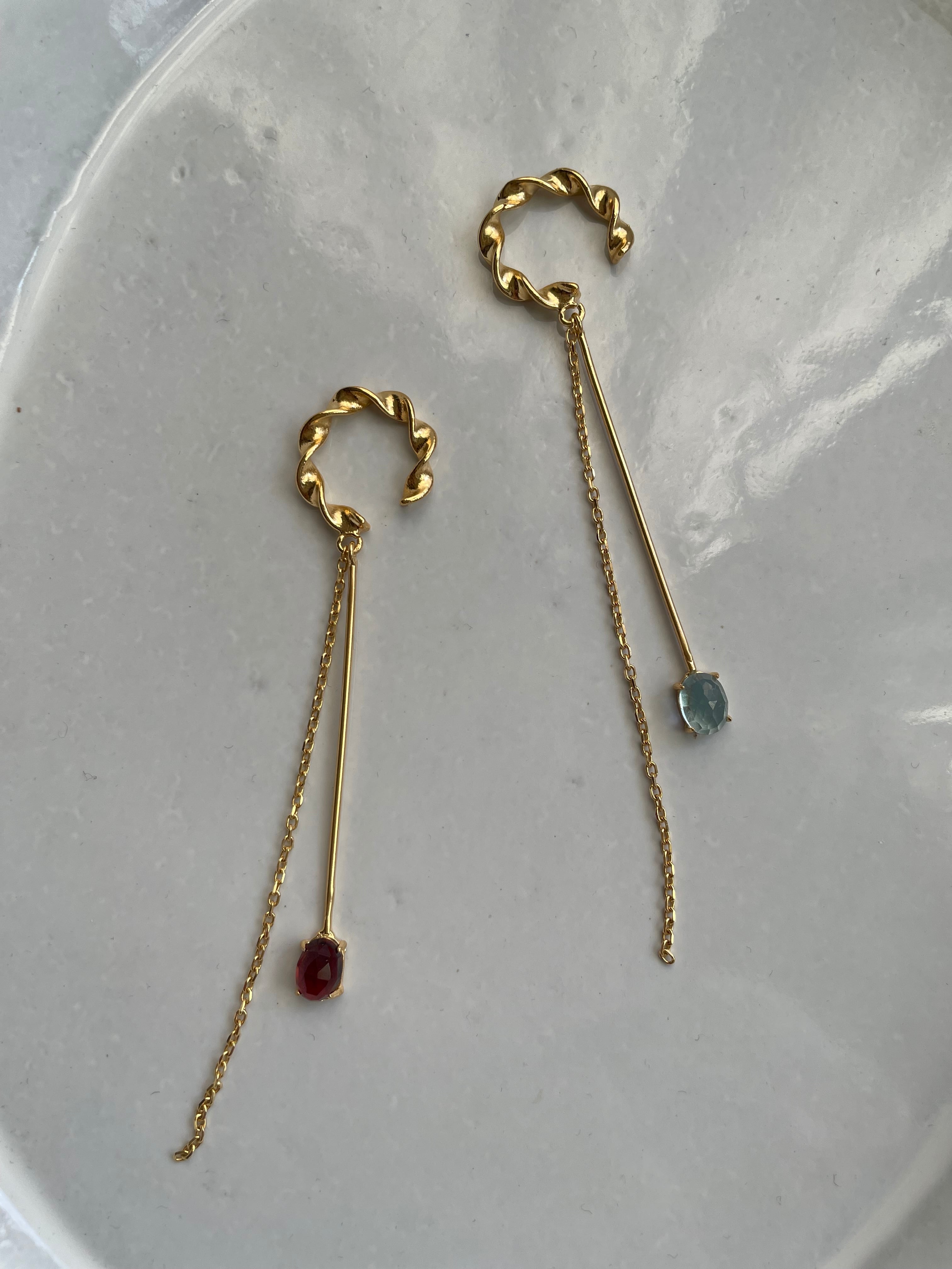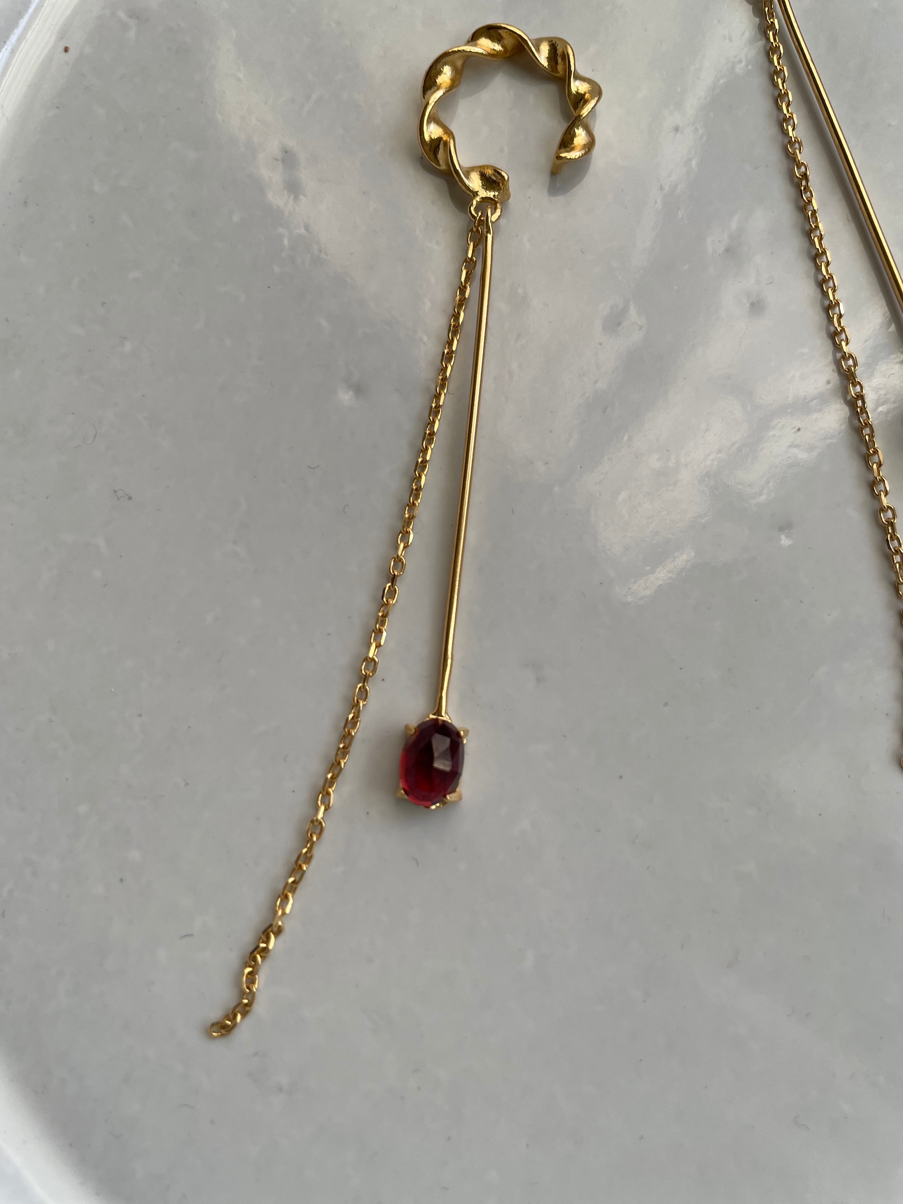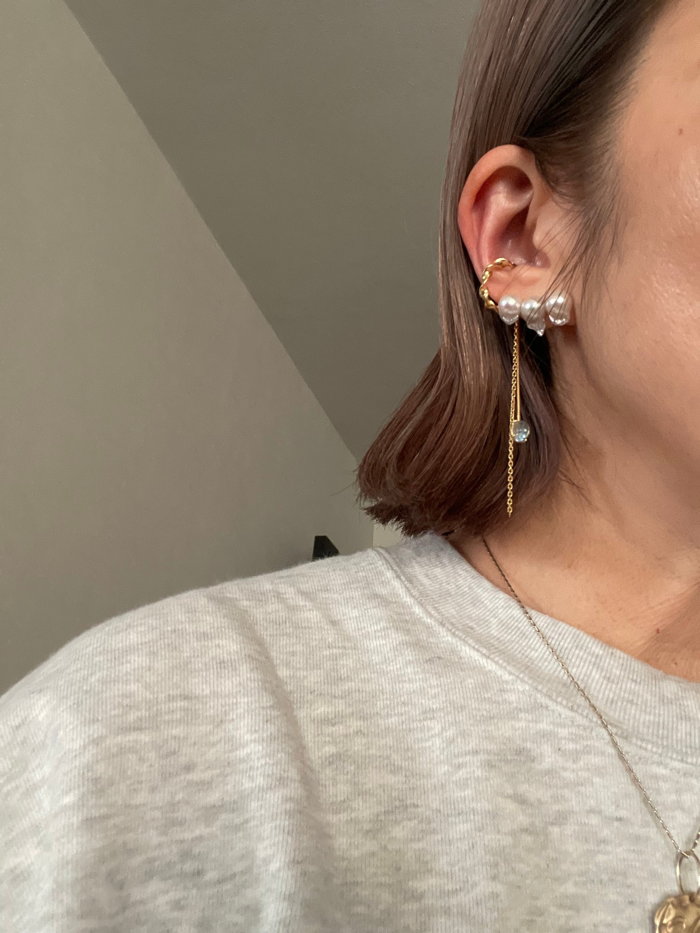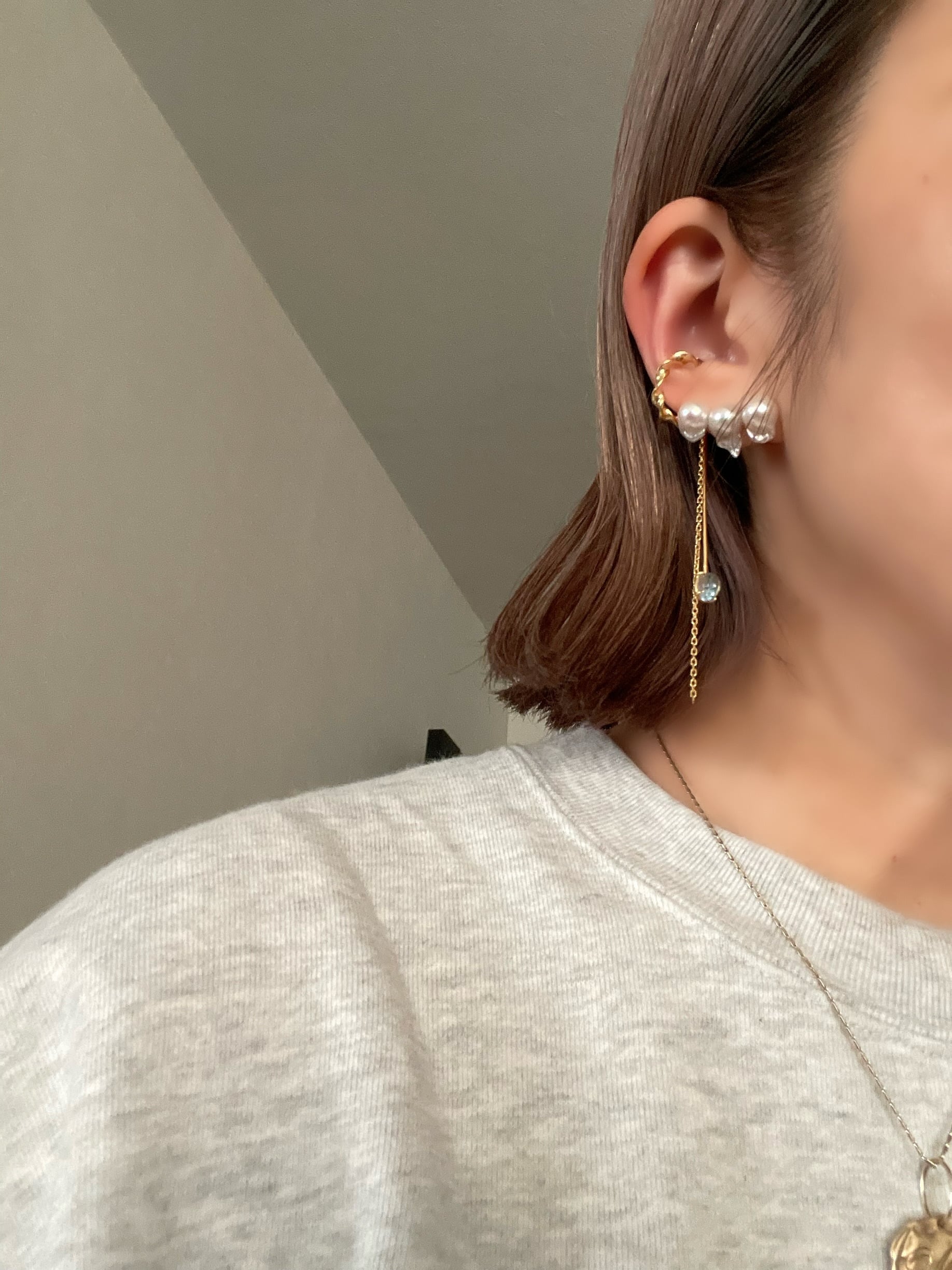 右耳専用のチェーンとバーにストーン付きのとても印象的なイヤーカフです。